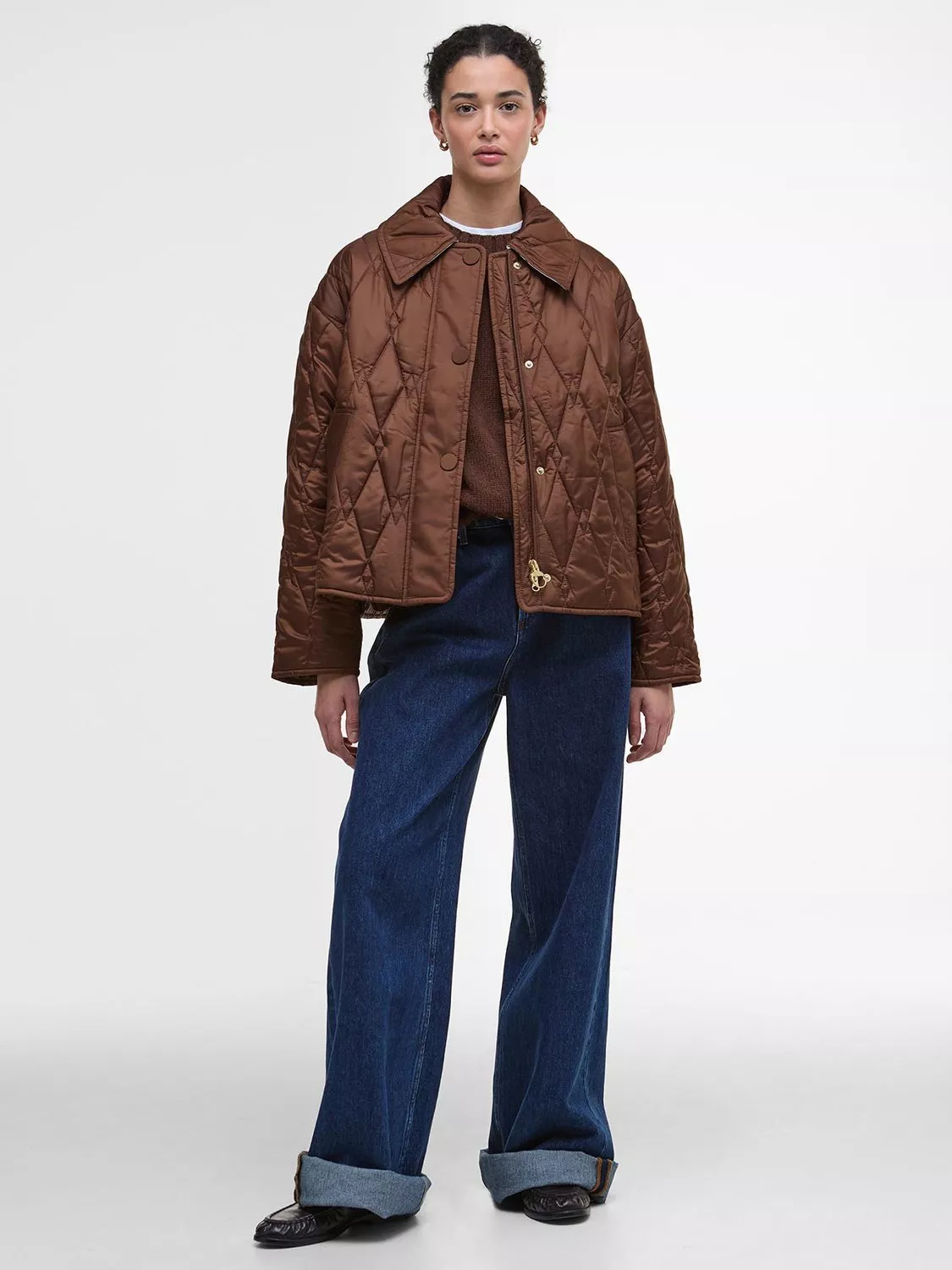 Giving classic quilted jackets a contemporary new look, the Barbour Bernadette Quilted Jacket features a unique quilting design paired with large fabric-covered stud fastenings. A large two-piece collar and tartan back buggy lining give it a modern yet distinctly Barbour feel while making it an ideal jacket for everyday or special outings.