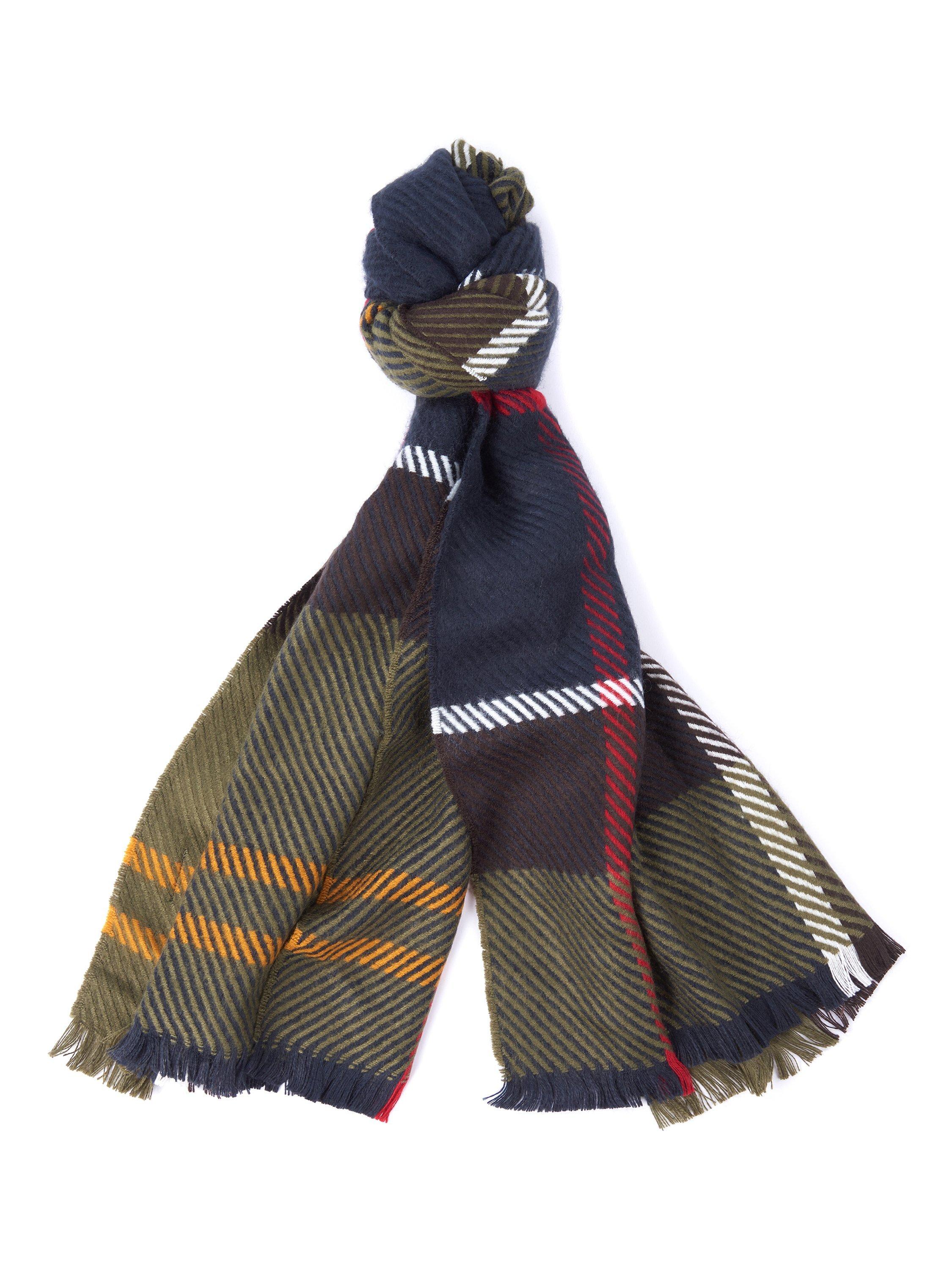 Woven from a soft fabric in a twill pattern with a large-scale tartan design, the beautiful Blair scarf from Barbour adds the perfect finishing touch to any outfit. Complete with a fringed hem for a pared back finish, bundle under coats and over jumpers when the temps begin to bite.
