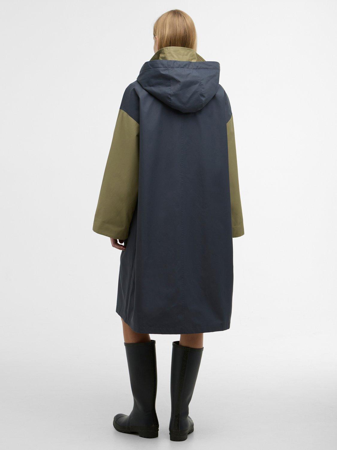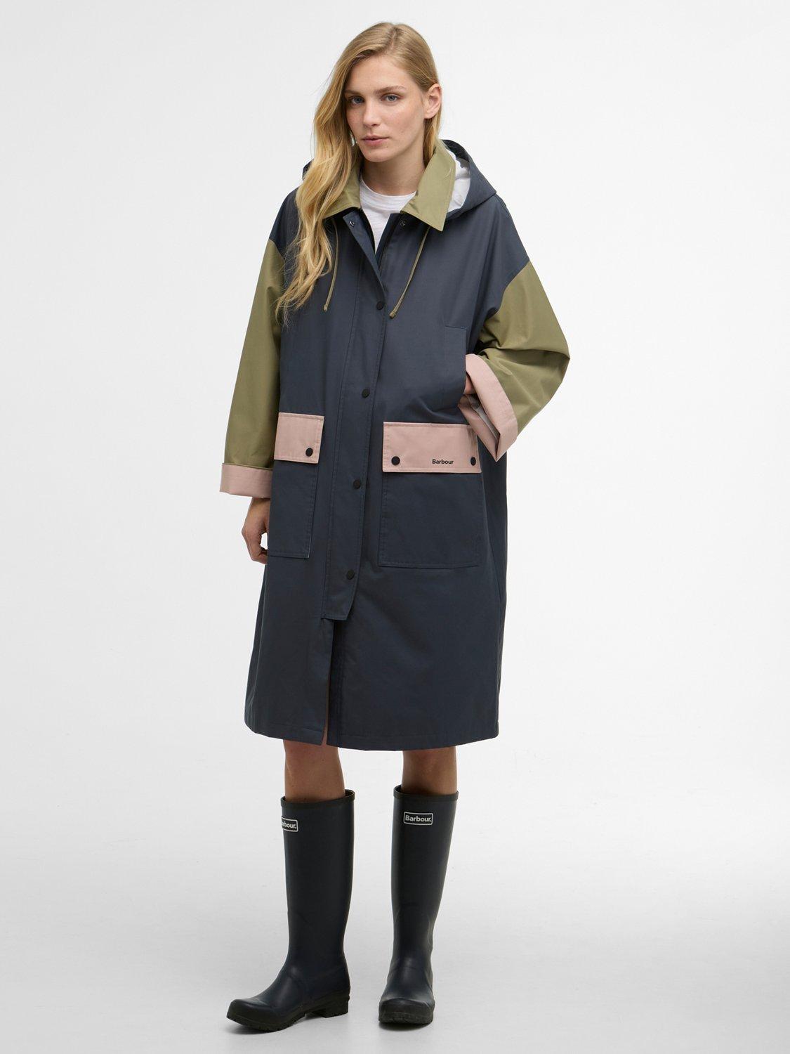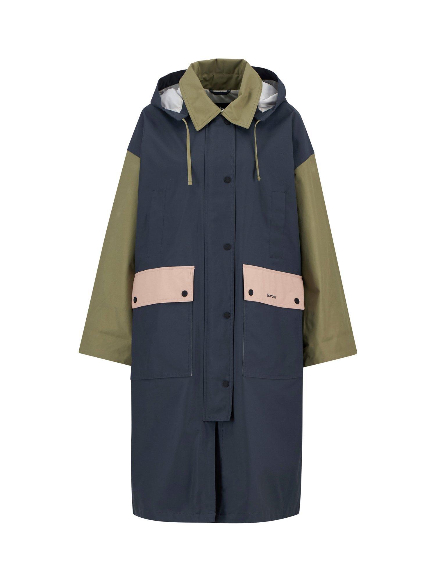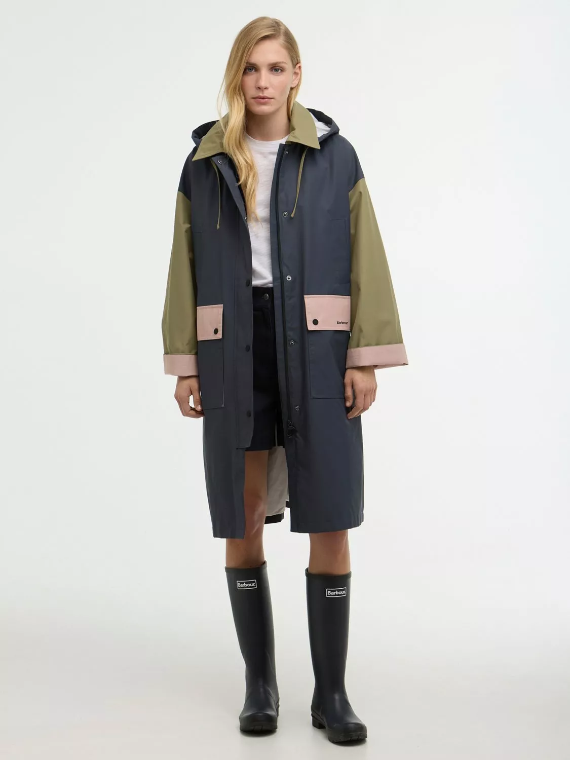 The Barbour Blearigg Showerproof Jacket is a longline design inspired by the classic Barbour Border style. Featuring an oversized fit, it includes a detachable hood for versatility, welt handwarmer pockets, and lower patch pockets for practicality. A bold colour-blocked design adds a modern twist to this timeless showerproof jacket.