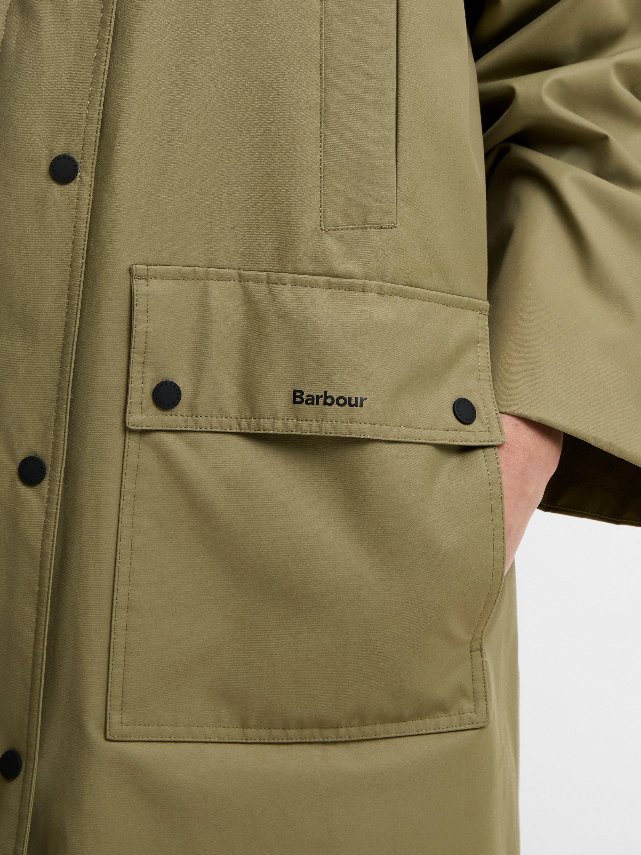 The Barbour Blearigg Showerproof Jacket is a longline design inspired by the classic Barbour Border style. Featuring an oversized fit, it includes a detachable hood for versatility, welt handwarmer pockets, and lower patch pockets for practicality.