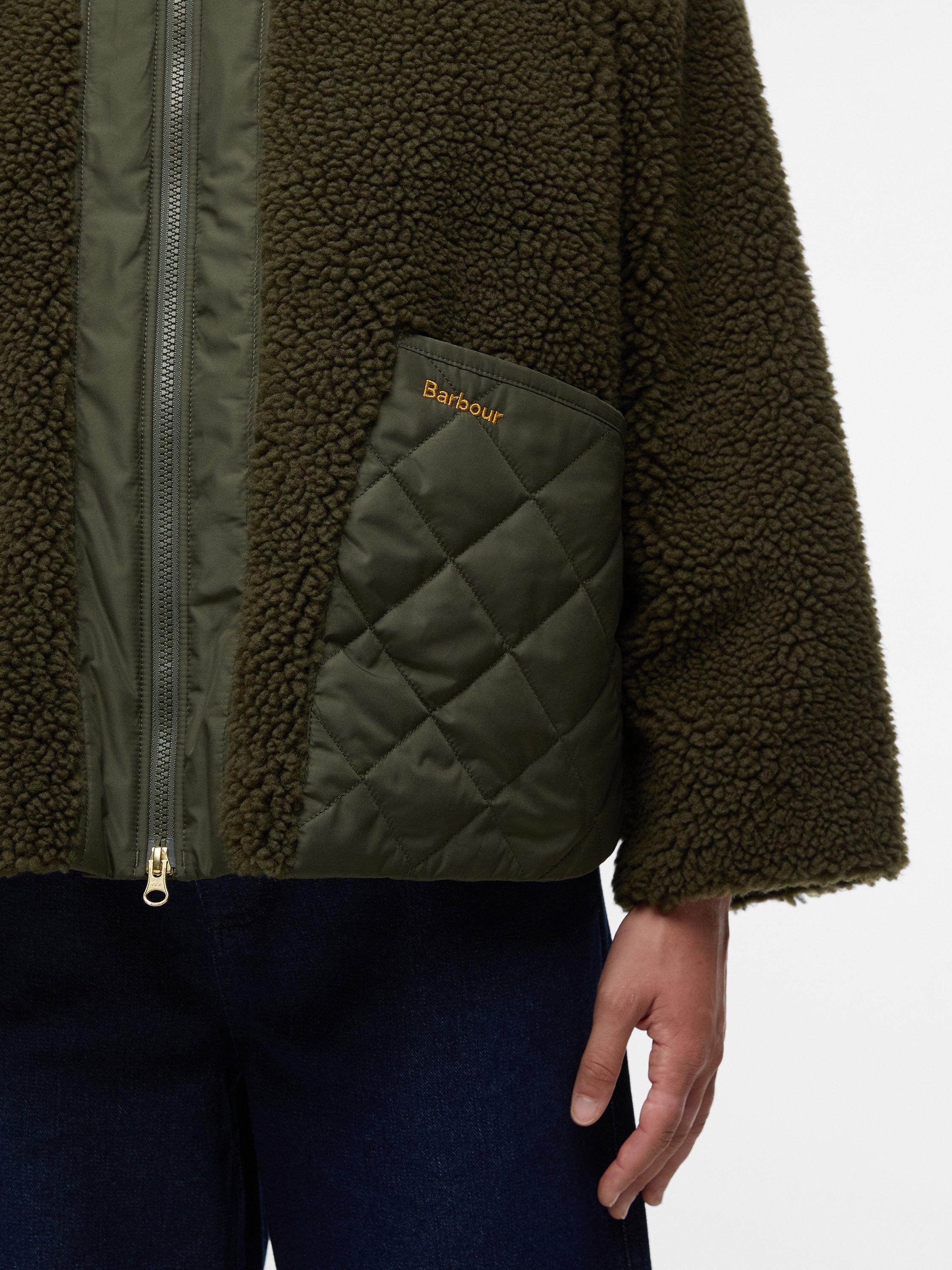 Embrace unparalleled comfort with the Barbour Brawby Fleece Jacket. Crafted from plush teddy fleece and matte quilt fabric, this statement piece features a deep funnel collar for warmth, contrast front panels, and quilted patch pockets. Elevated by Barbour embroidery and an eye-catching oversized ring pull, it brings refined style to crisp, cool days.