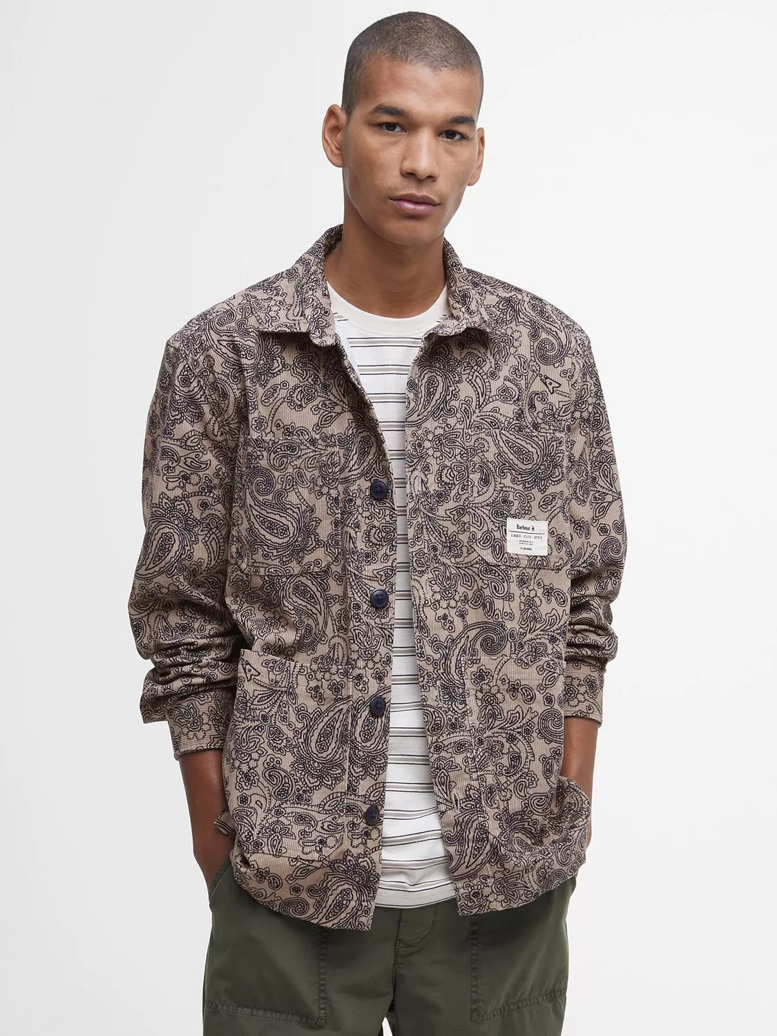 Experimenting with textures and a relaxed, yet functional silhouette, the Barbour Brignall Cord Overshirt is a bold staple to add to your smart-casual edit. Detailed with an eye-catching paisley print, this overshirt has been crafted from our signature corduroy fabric which you may recognise from the collars of some of our best-selling waxed jackets.