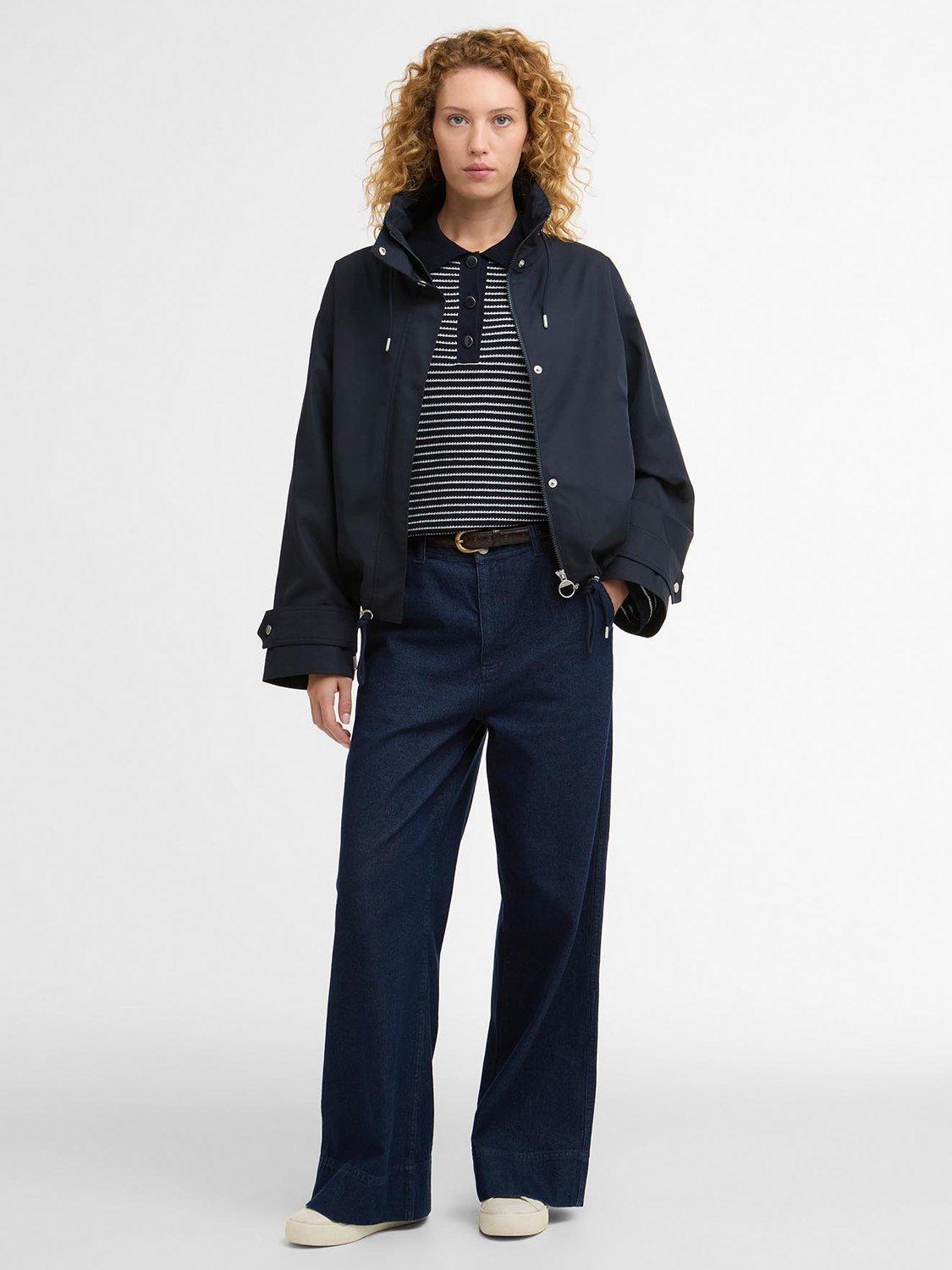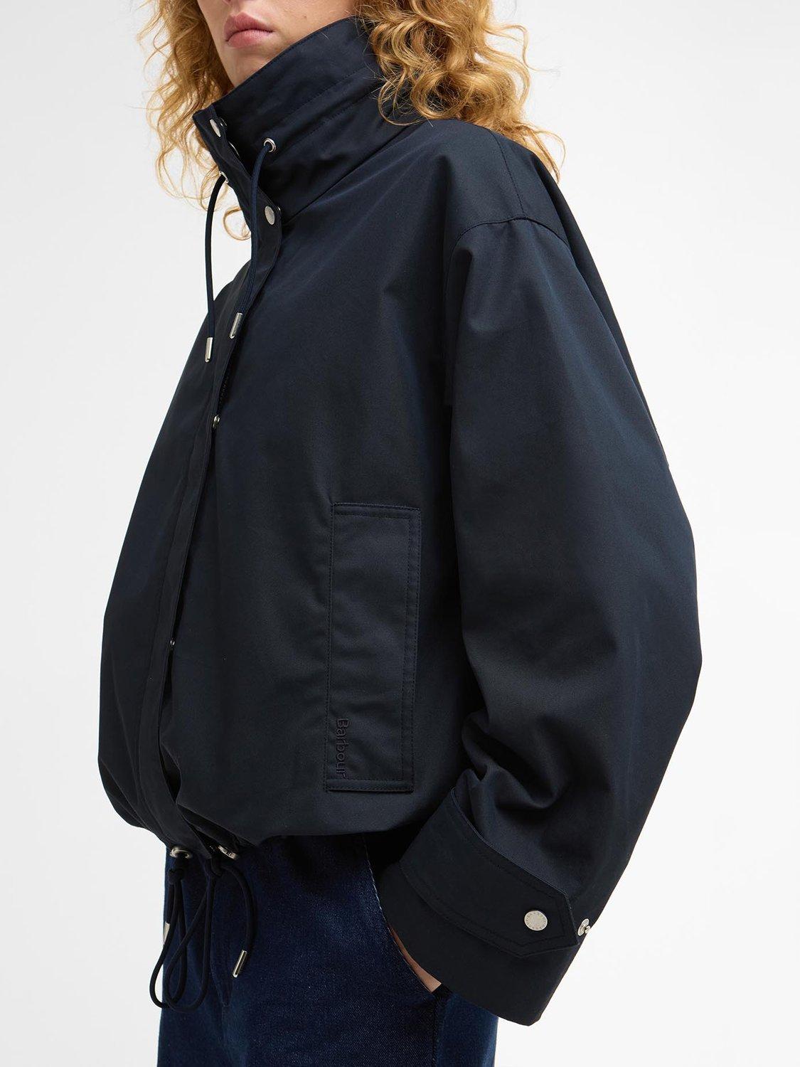 The Barbour Bronwyn Showerproof Jacket is a stylish, short-layered essential for unpredictable weather. Crafted with an oversized funnel neck and adjustable drawcords at the neck and hem, it offers a customisable fit and extra protection. A zip centre-front fastening sits behind a studded placket, complemented by practical front welt pockets. Lightweight yet durable, this jacket combines contemporary design with Barbour’s signature heritage detailing for versatile, all-season wear.