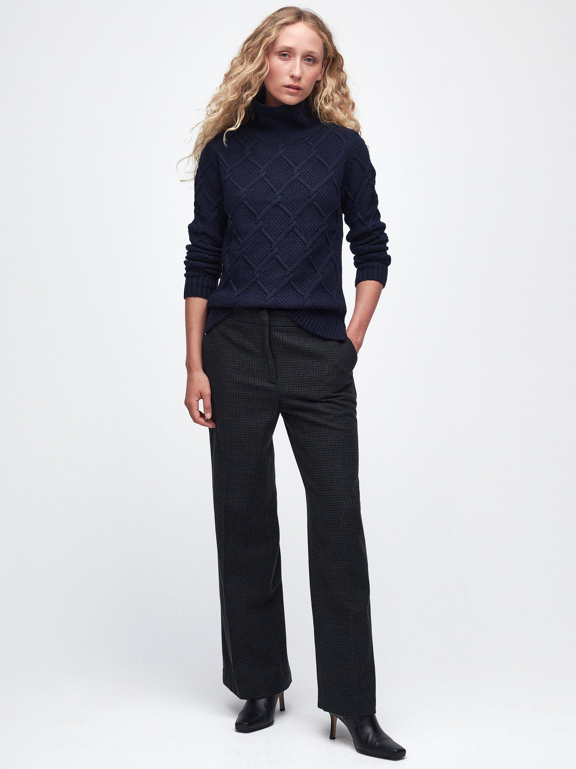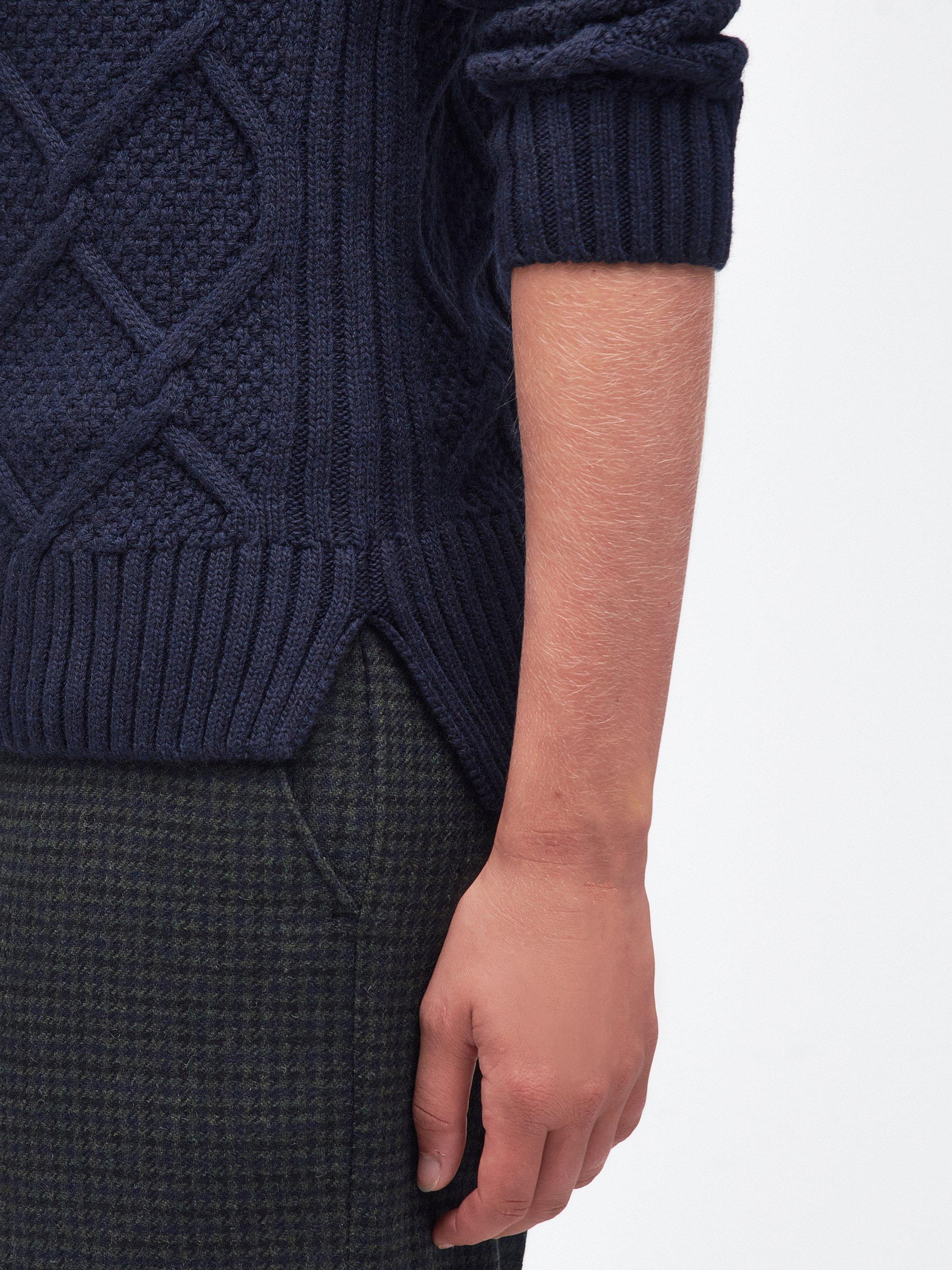 The Barbour Burne sweatshirt is imagined in a warm mix of wool and cotton with a roll neck and long sleeves. It's detailed with an argyle-inspired cable knit, making it a stylish option for updating casualwear looks.