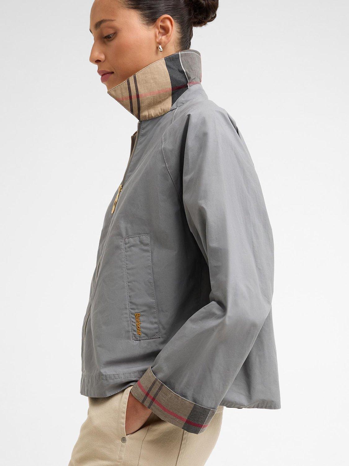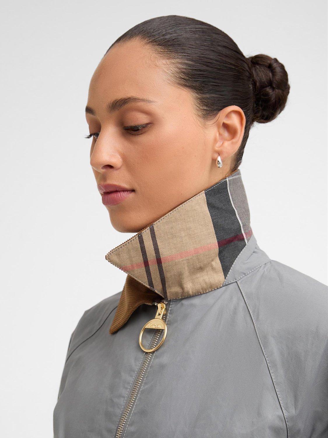 The Barbour Catlin Casual Jacket brings effortless style with a feminine edge. Cut in a short, subtly A-line silhouette, it features a deep inverted box pleat at the back for movement and shape. An exposed zip with a signature ring pull and neat welt pockets add a modern touch, while tartan undercuffs nod to Barbour’s heritage charm.