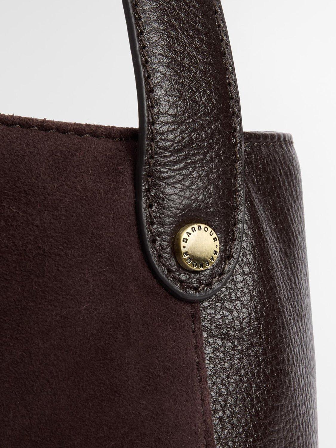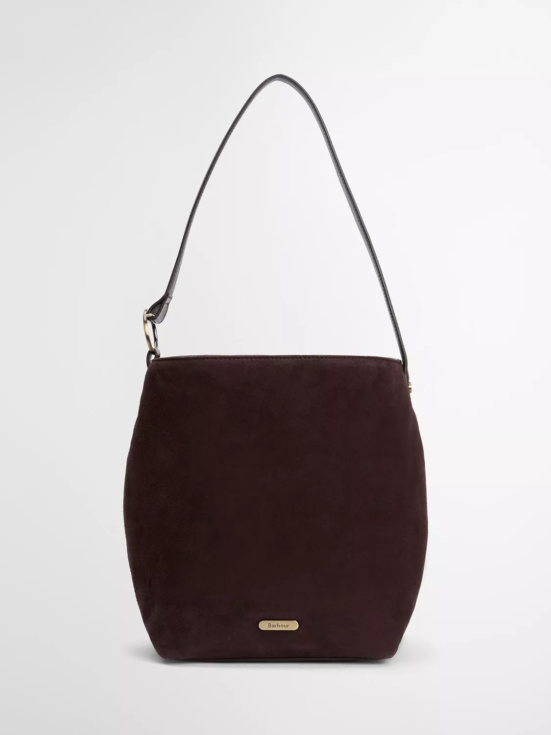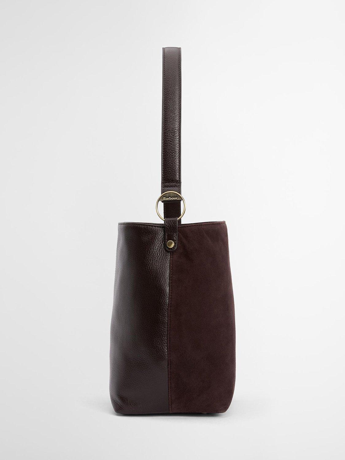 Designed with a concealed collar stud closure, this bucket bag has a natural slouch for a casual everyday look. Crafted from suede with a classic tartan trim to the interior, this bag is finished with signature Barbour details such as the ring pull zip-inspired hardware, an interior zipped pocket and a metal logo plaque.
