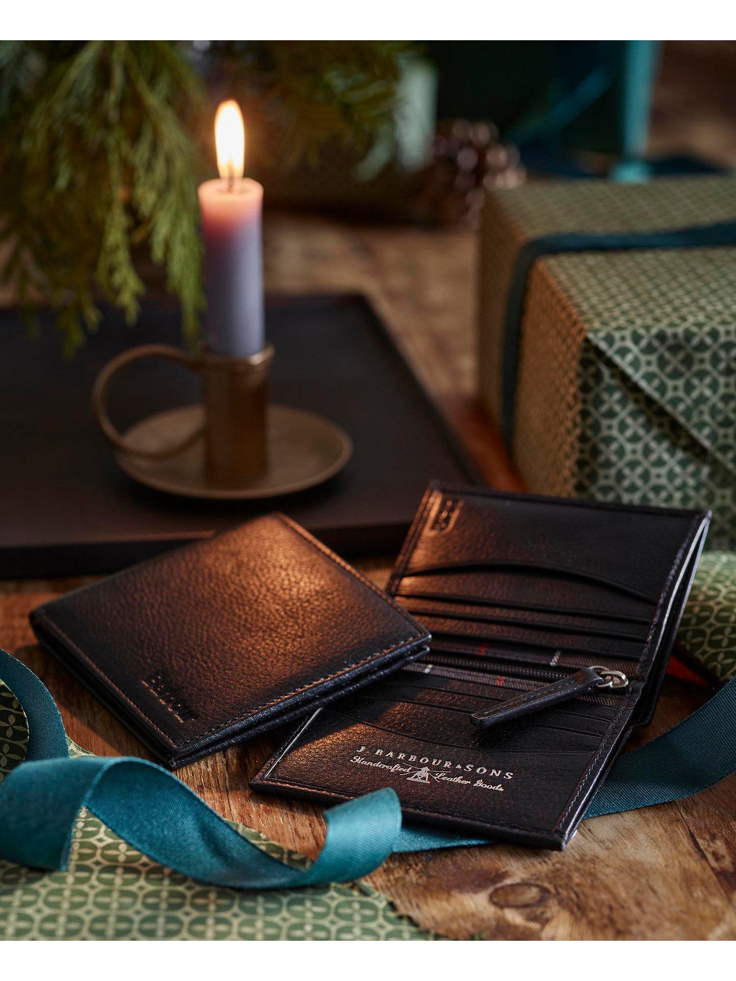 The Colwell leather billfold wallet offers a slimline style imagined in 100% leather for sophistication. It showcases the embossed Barbour logo to the outer front, as well as slots for notes and cards on the inside.