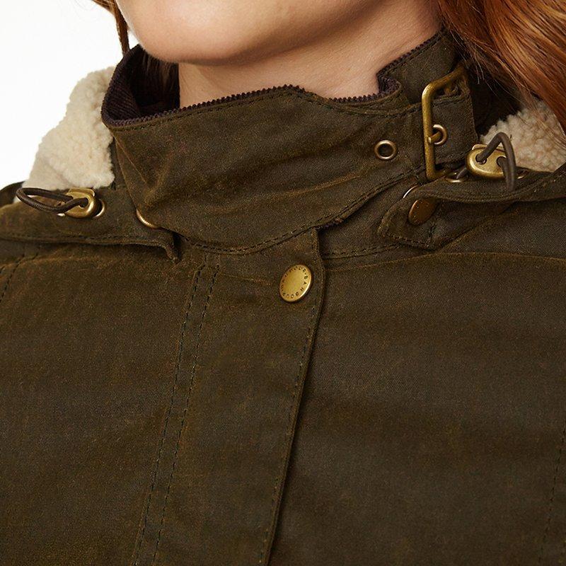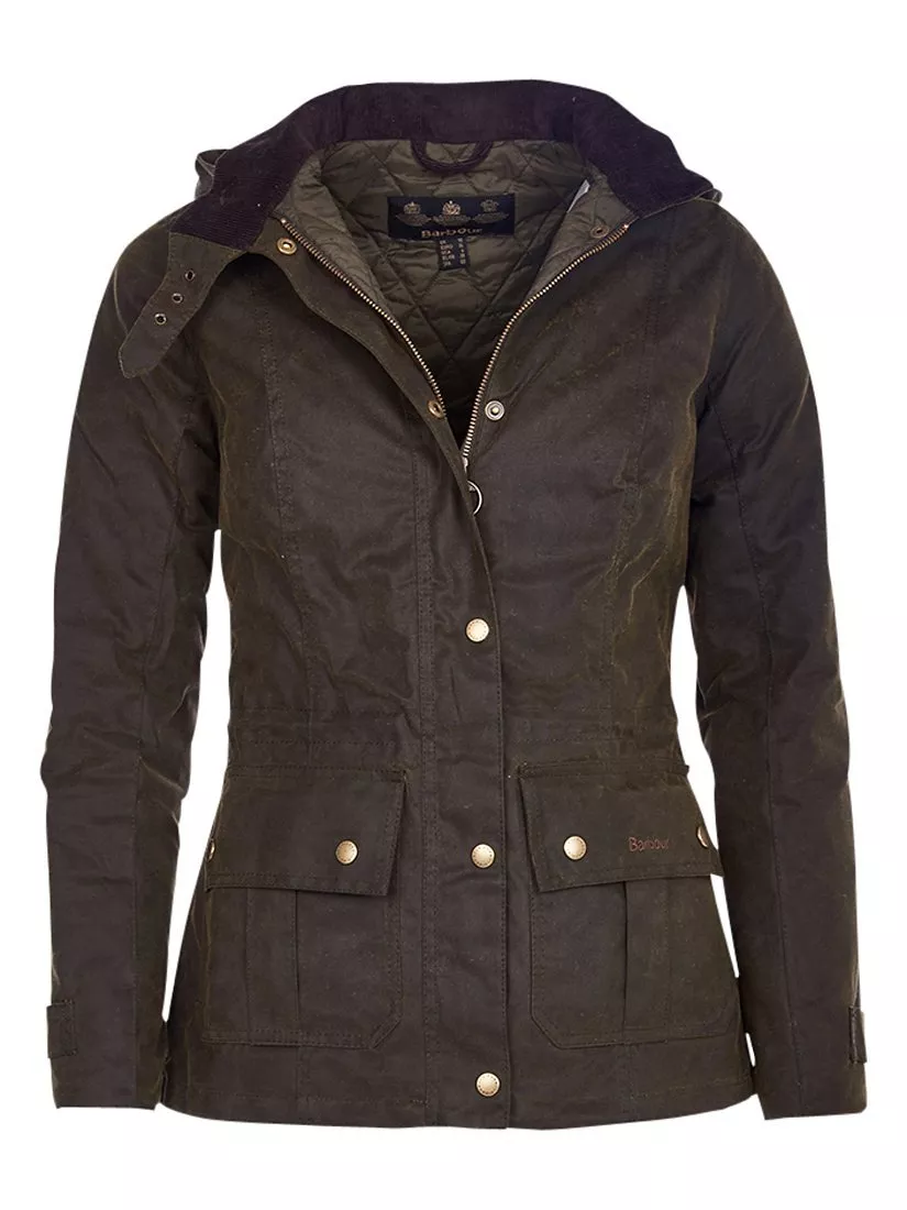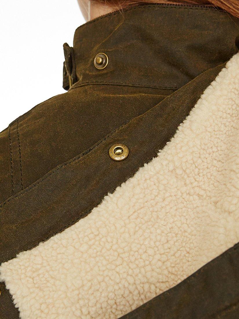 This stylish Convoy waxed jacket from Barbour features long sleeves, a fur-lined hood, a front popper fastening and 2 handy front pockets.