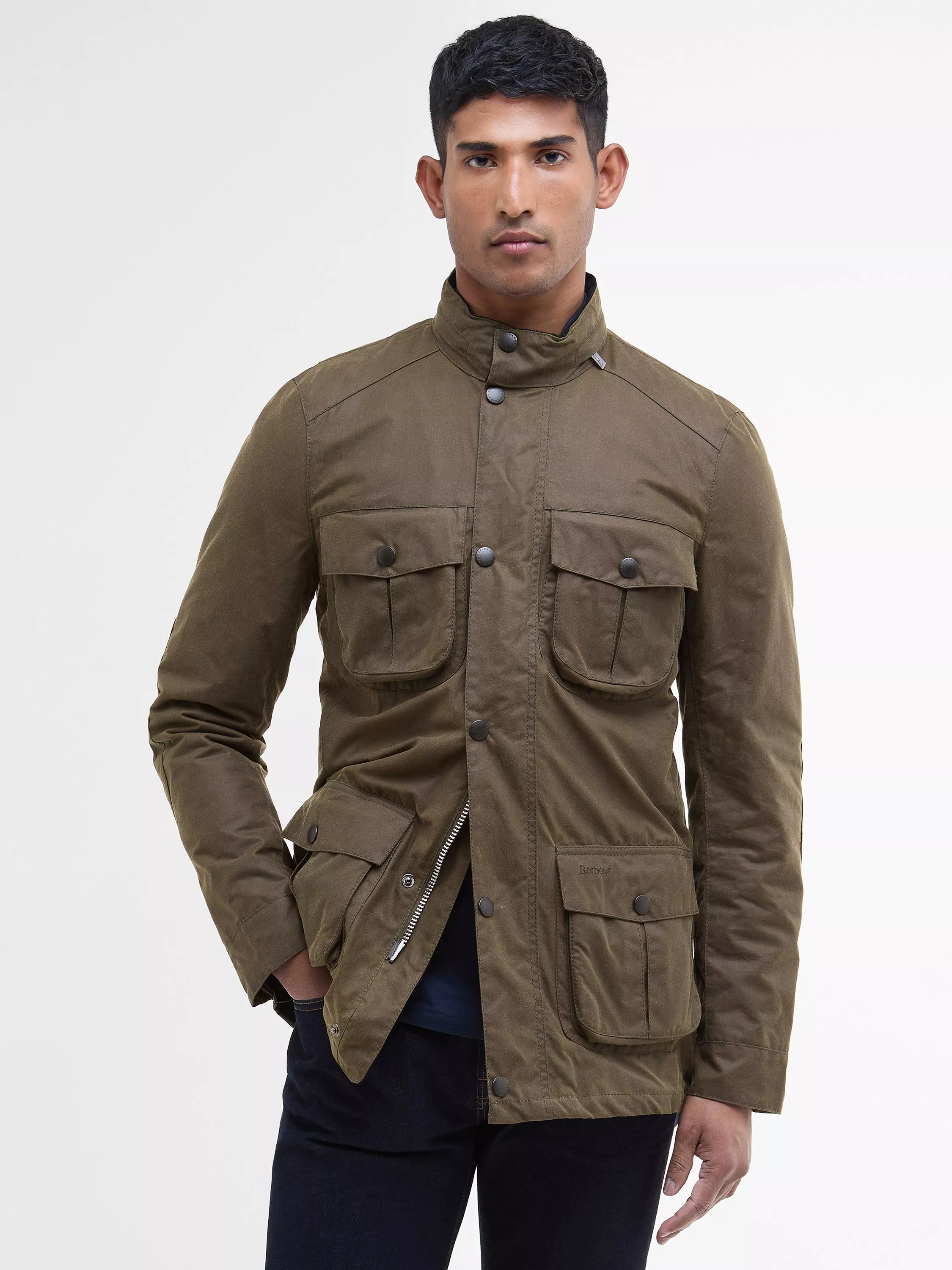 The Corbridge is a rugged utility-style men's waxed jacket updated with a contemporary engineered fit. With winter in mind, this multi-functional jacket is constructed in Barbour's hardy 6oz Sylkoil waxed cotton with a comfortable, lightweight Nylon lining quilted to 50g wadding, for additional warmth. The corduroy-lined funnel collar features an integral Nylon hood complete with adjustable toggles for a perfect fit, offering wet-weather defence when needed but easily stowed away in the collar on dry days. Built to offer comfort and protection to those who are active outdoors in any weather, the Corbridge benefits from adjustable cuffs, a robust two-way zip, a storm fly front with stud fastenings and an action back. The classic four-pocket detail adds a stylish, practical feature that keeps essentials safe and hands free. As this is a slim-fitting jacket, it's advised to purchase the next size up than you would normally choose.