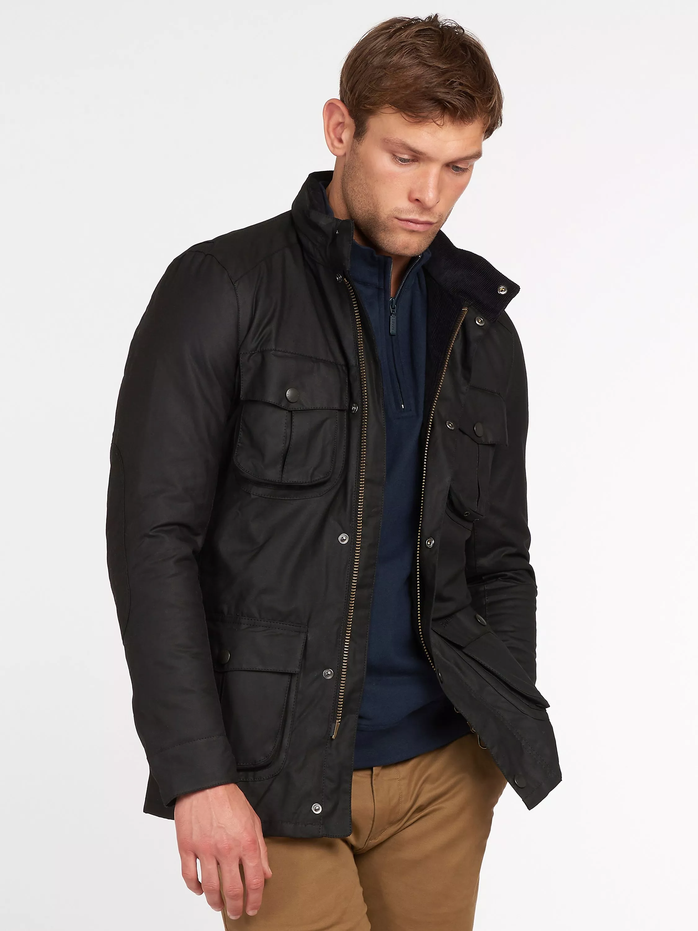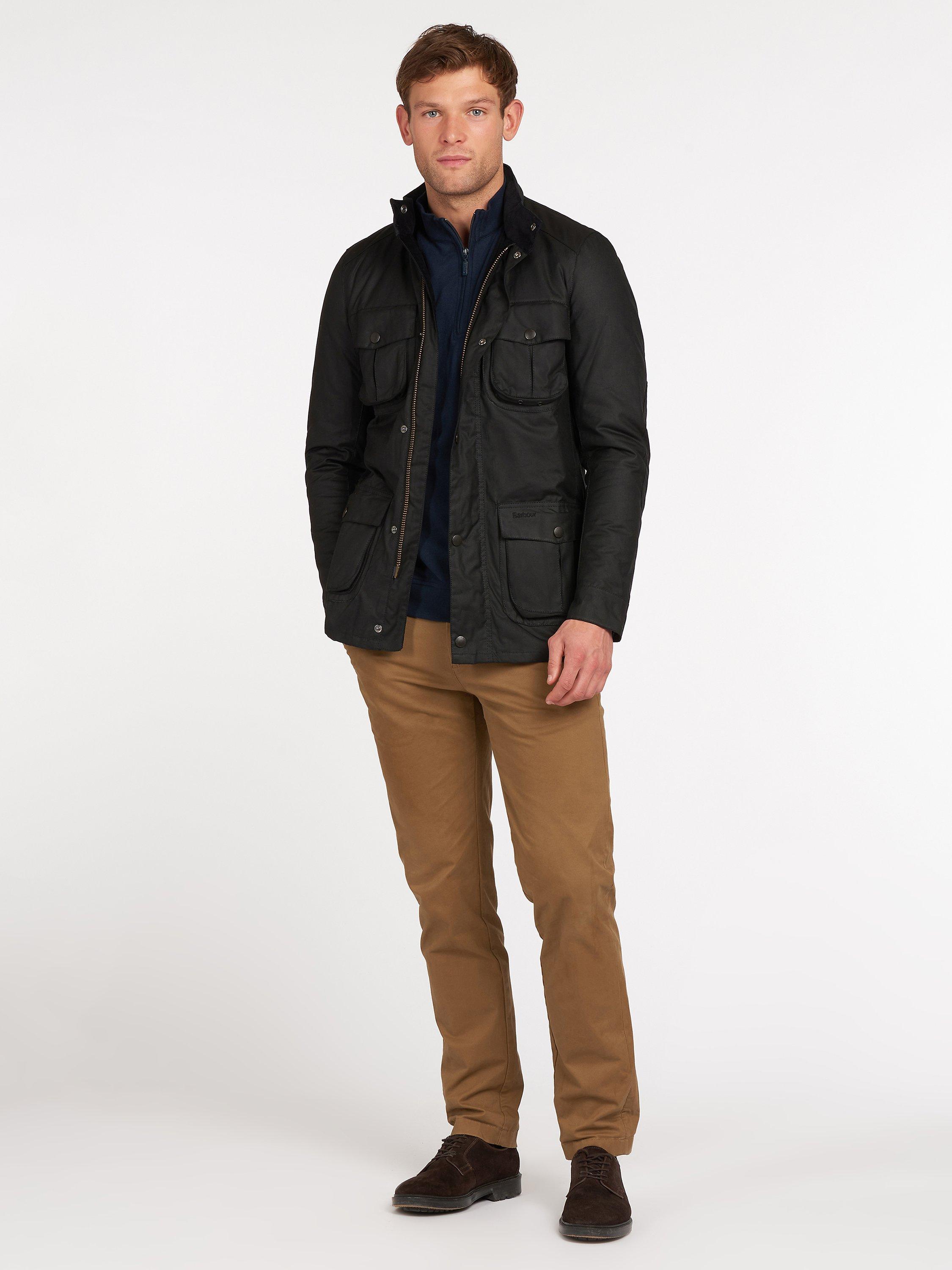 Updated with an engineered fit, this Barbour Corbridge waxed utility jacket is an ideal layering piece, with four pockets, a slim fit and zip and press-stud fastening.