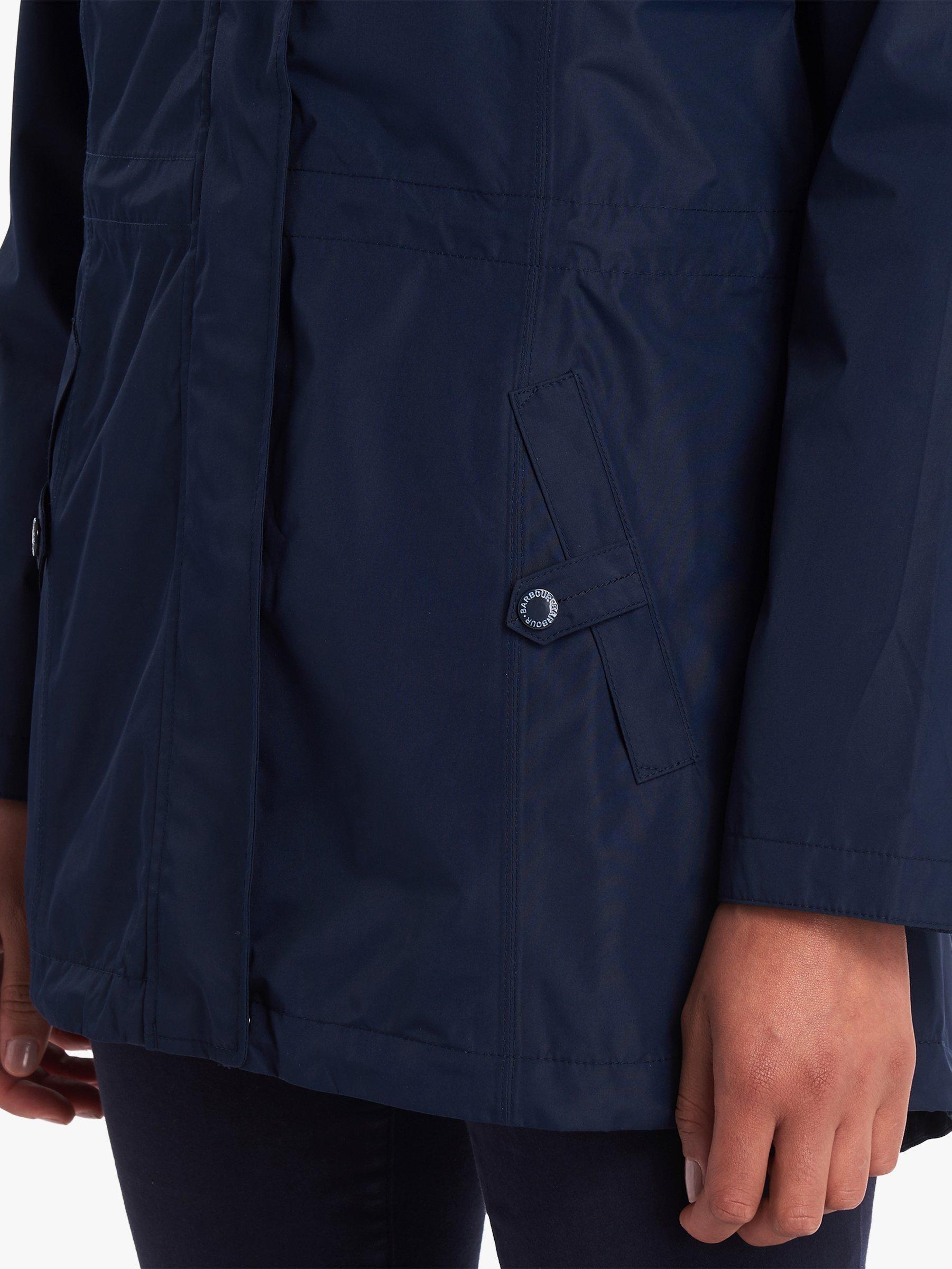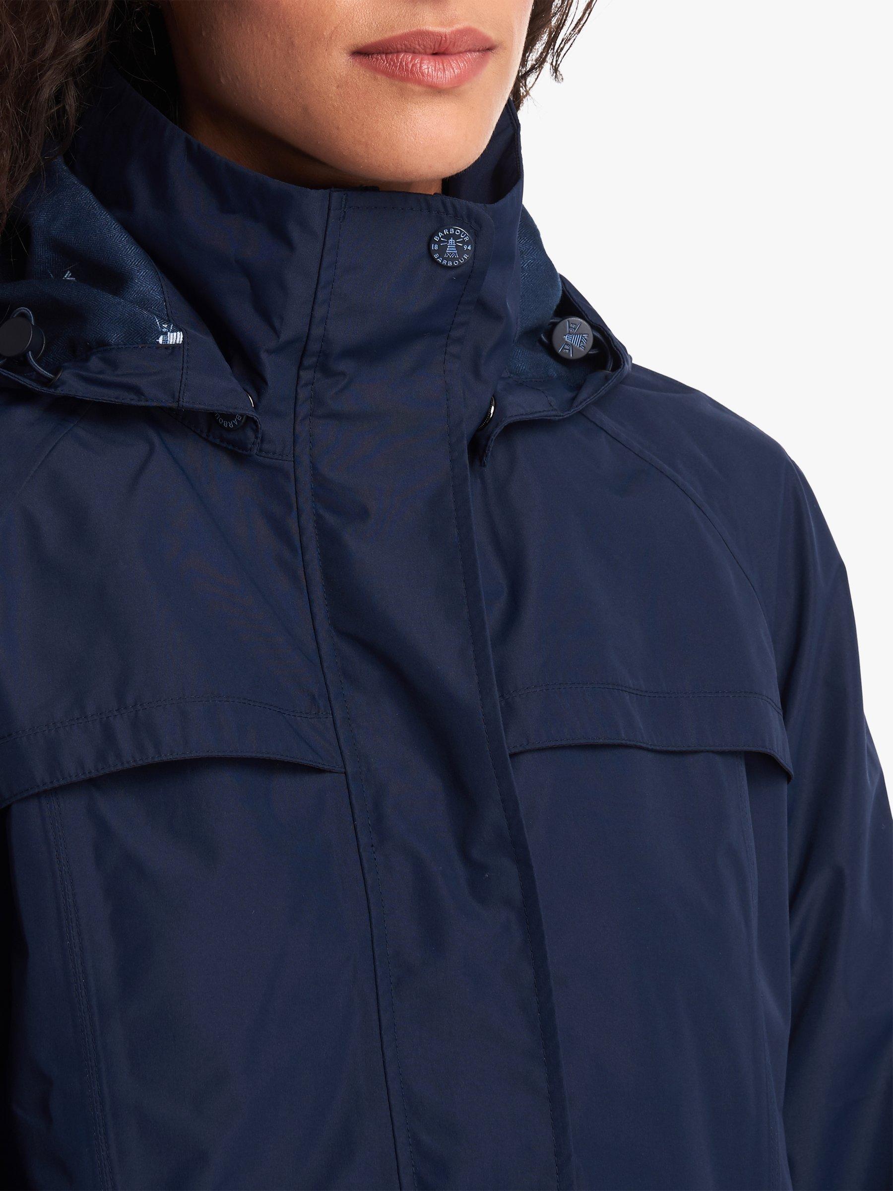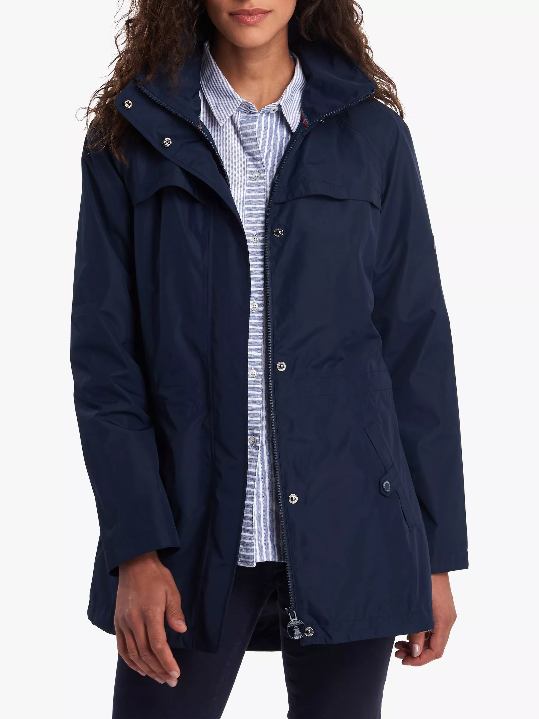 A waterproof style from Barbour, this jacket comes with a stud off hood for versatile wear to take you from season to season. It has yoke detailing and a waist cord adding shape and an adjustable fit while the dipped hem gives you more coverage through the back. Lined with Barbour's beacon print, it has handy stud welt pockets too for keeping valuables safe when on the go.