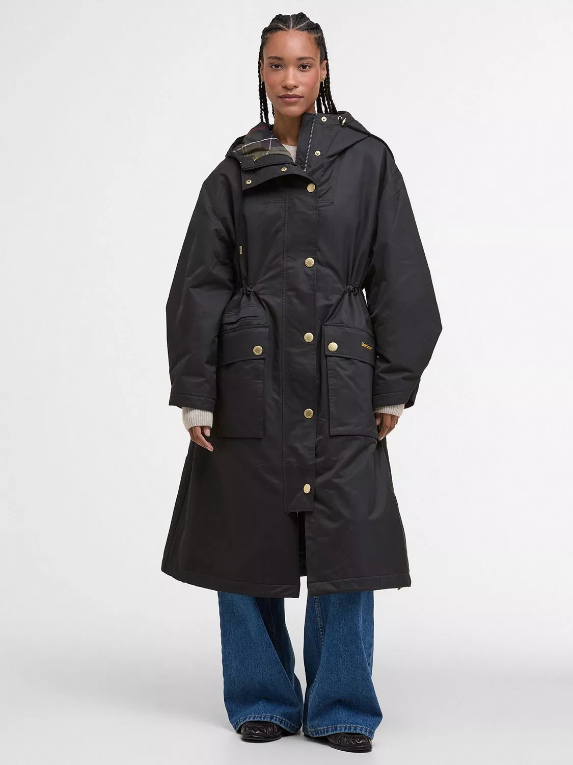Embrace the great British weather with the Barbour Dena Showerproof Jacket. This lightly insulated showerproof jacket is ideal for transeasonal weather, thanks to its large hood. The internal drawcord to the waist and hem allows you to cinch in the silhouette and lock in the warmth. This style features the brand's classic tartan print inside and branded buttons.