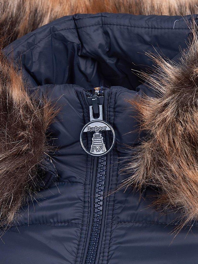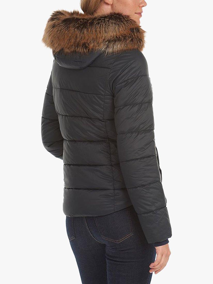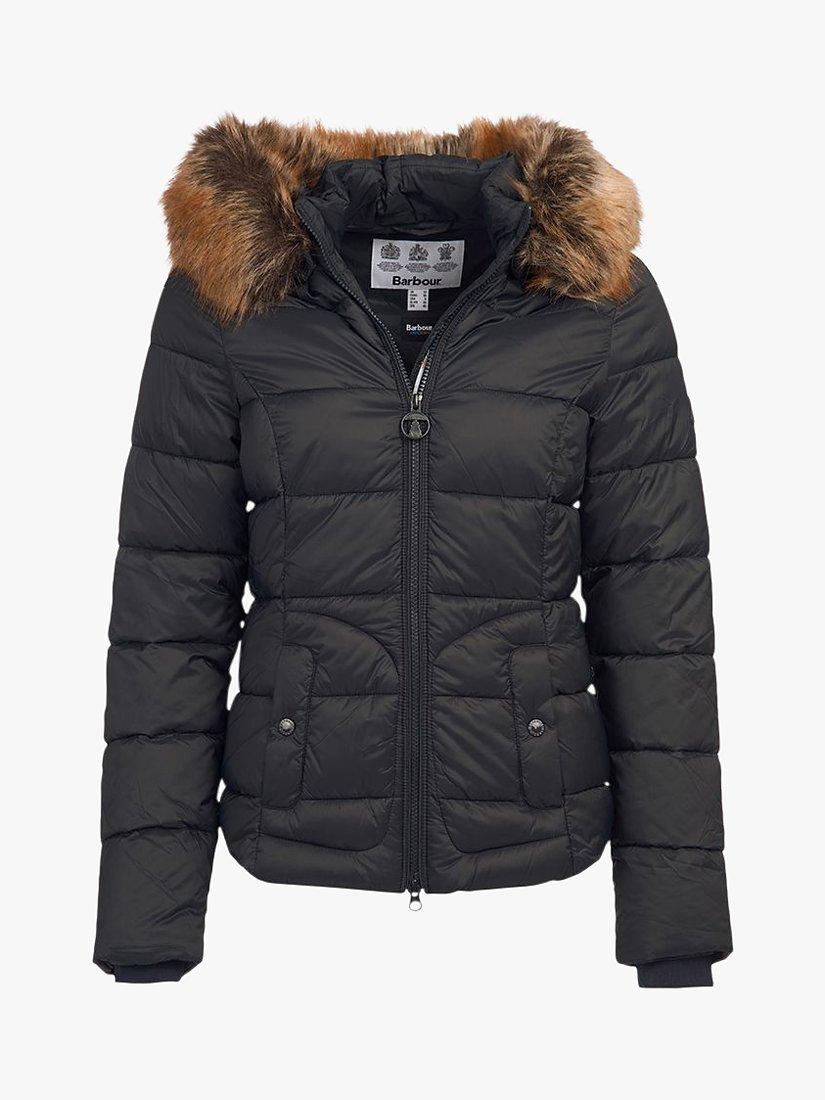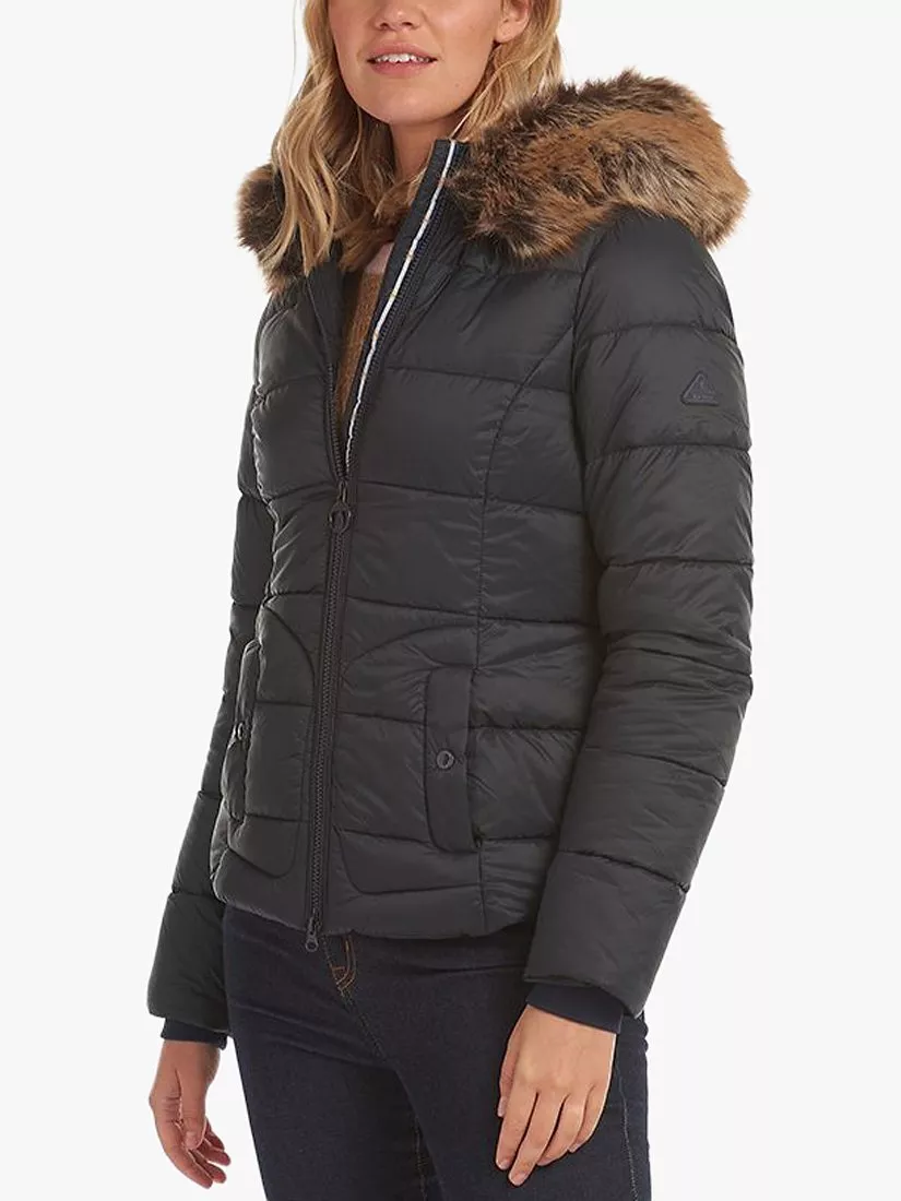 Keeping you cosy, the Dover jacket from Barbour is a classic quilted style for the great outdoors. Following the lines of the body with baffle quilting and curved studded pockets, it keeps you covered with a faux fur trim hood for added warmth, complete with a two-way zip and neat funnel neck.