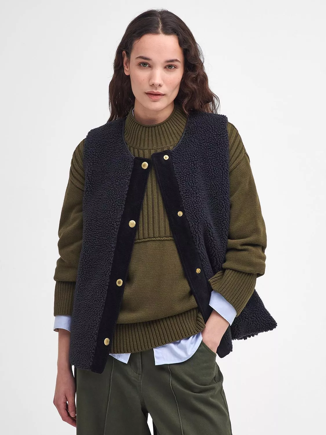 Whether you're looking for optimal warmth or the ultimate cosy outfit, the Barbour Dulsie Liner is the perfect choice. Crafted from a sumptuously soft teddy fur, this design is perfect for layering over T-shirts and jumpers as the seasons change and pairing under jackets for added warmth, thanks to its discreet collarless design.