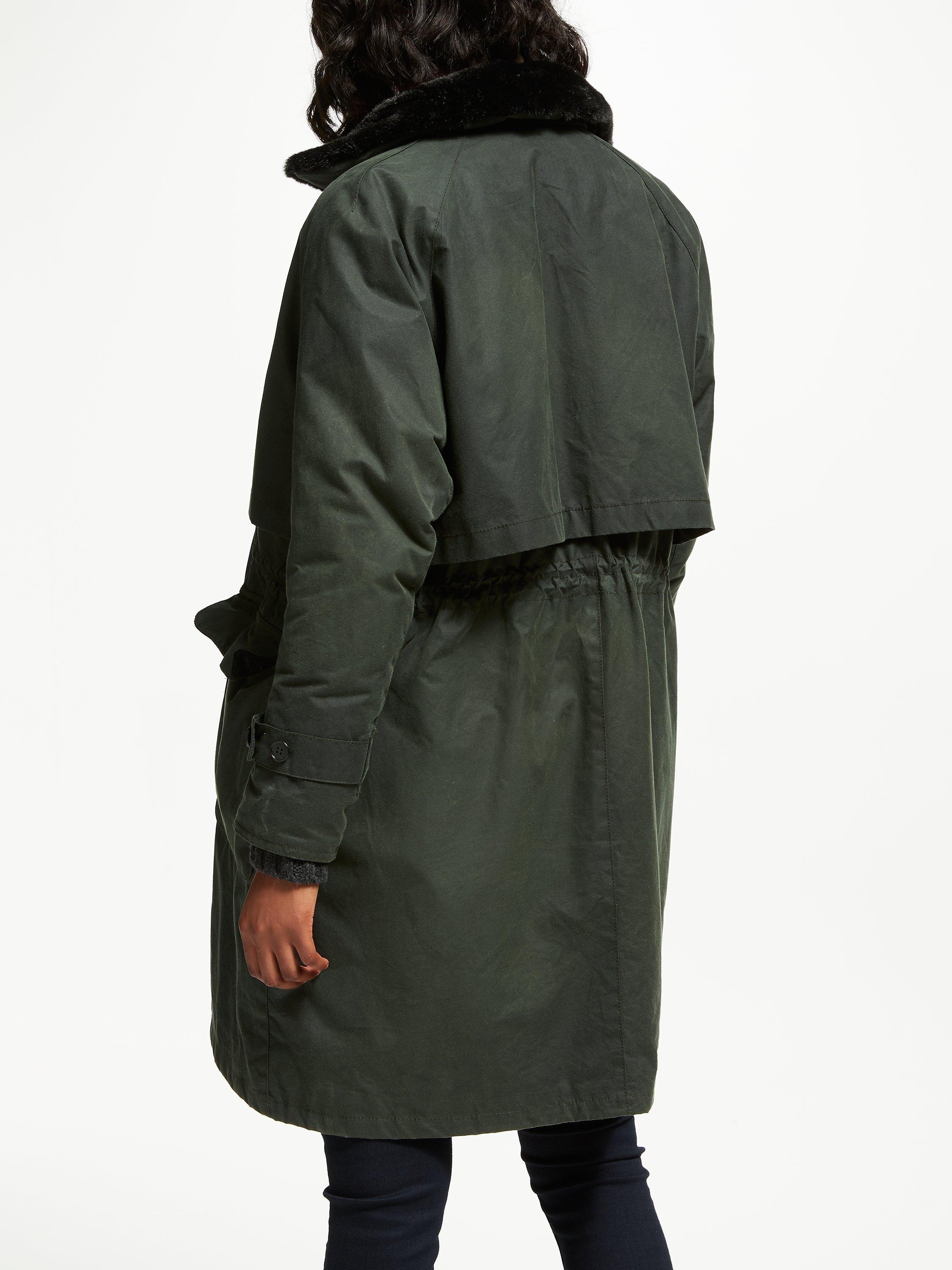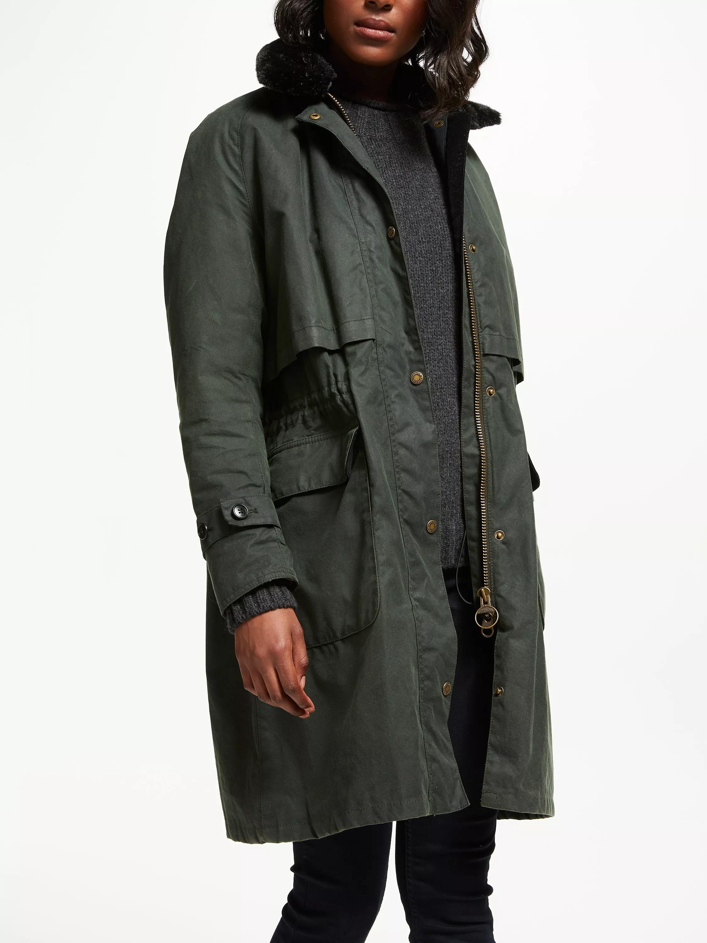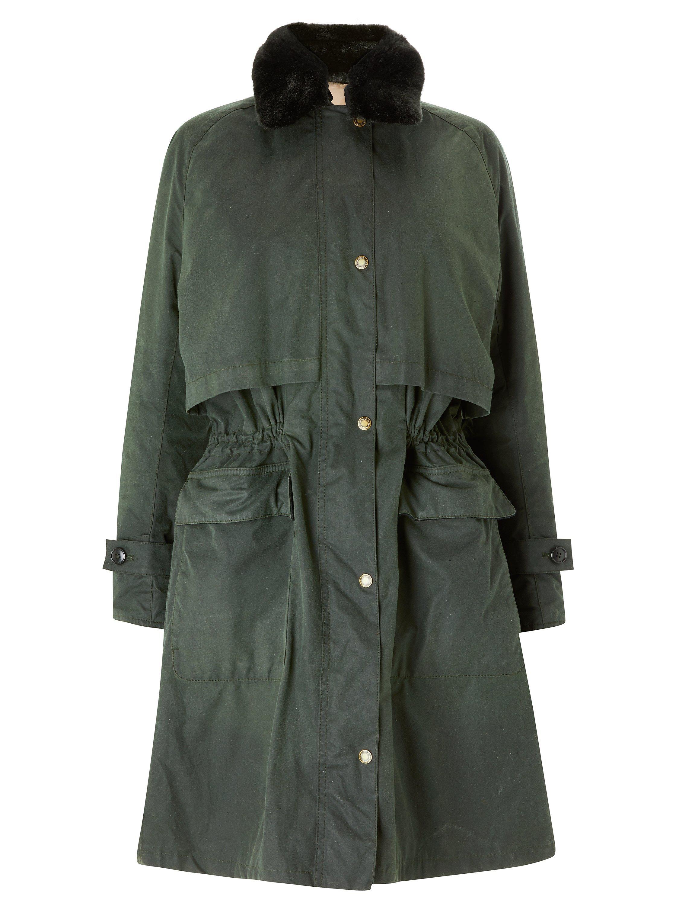 Reinterpreting the Barbour DNA with a modern, utilitarian aesthetic, this trench-style wax jacket is cut to an oversized silhouette with a longer length. The sit-down collar features a detachable fur trim, while a quilted buggy lining delivers extra warmth and the lower patch pockets have the added benefit of side entry for fast access.