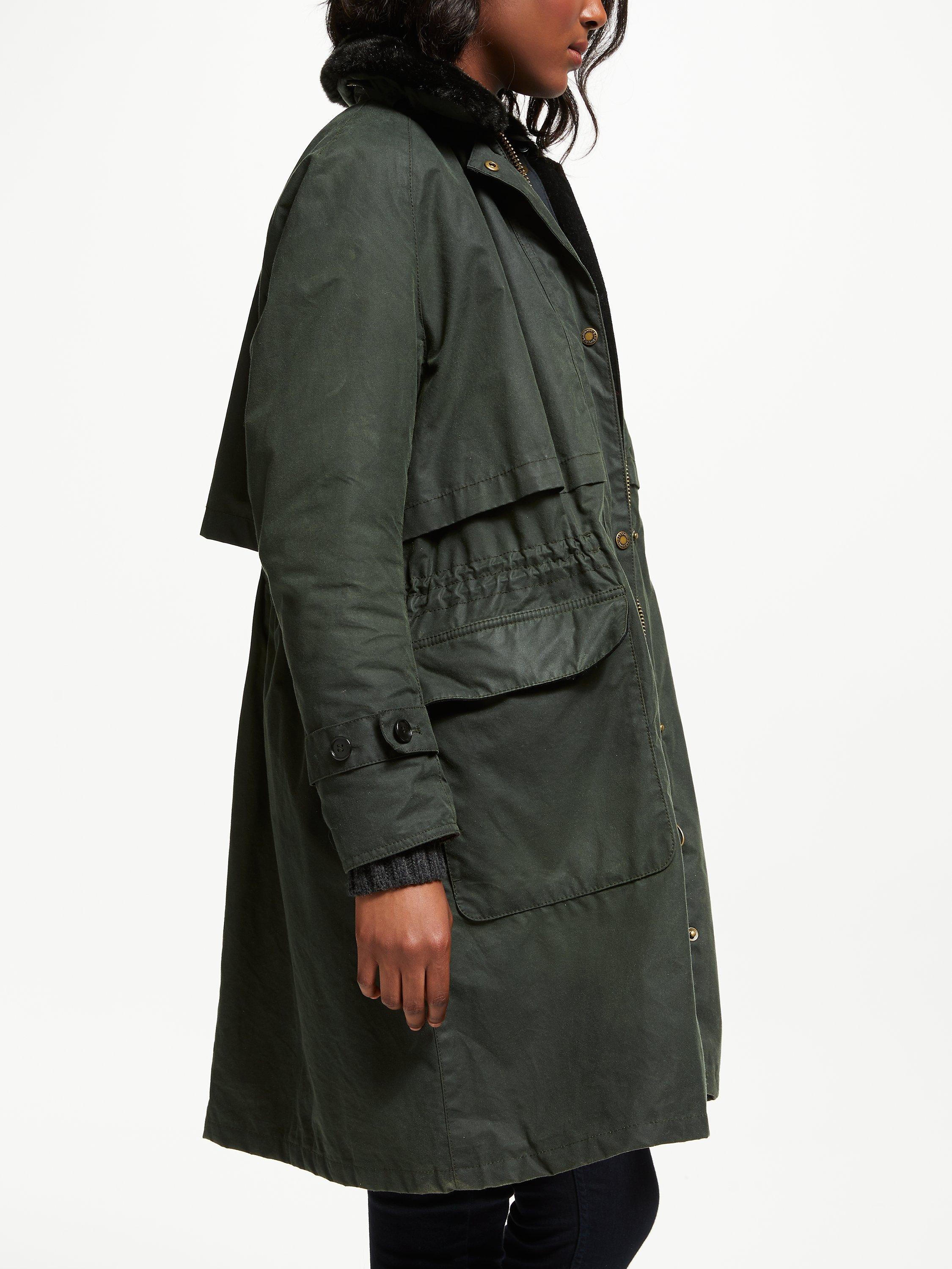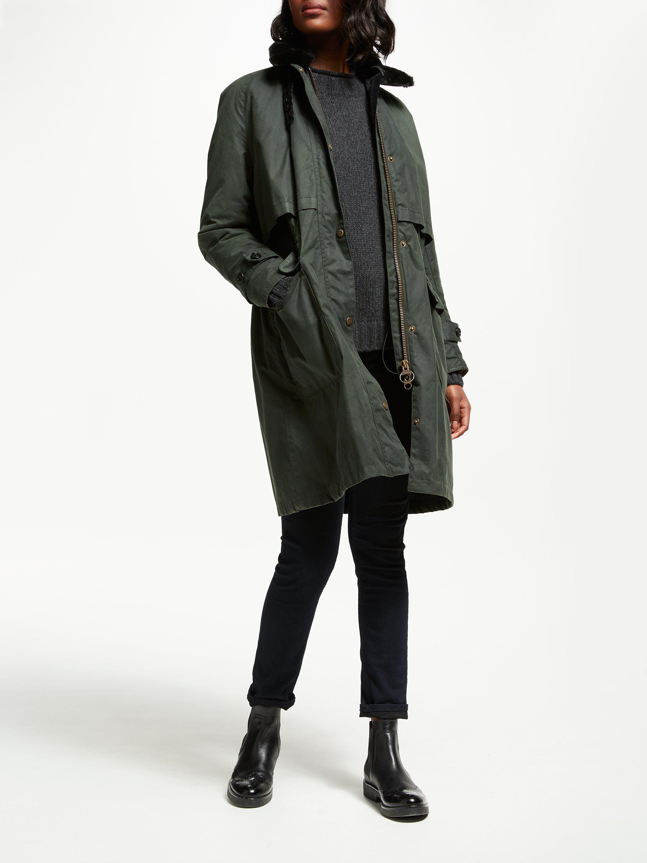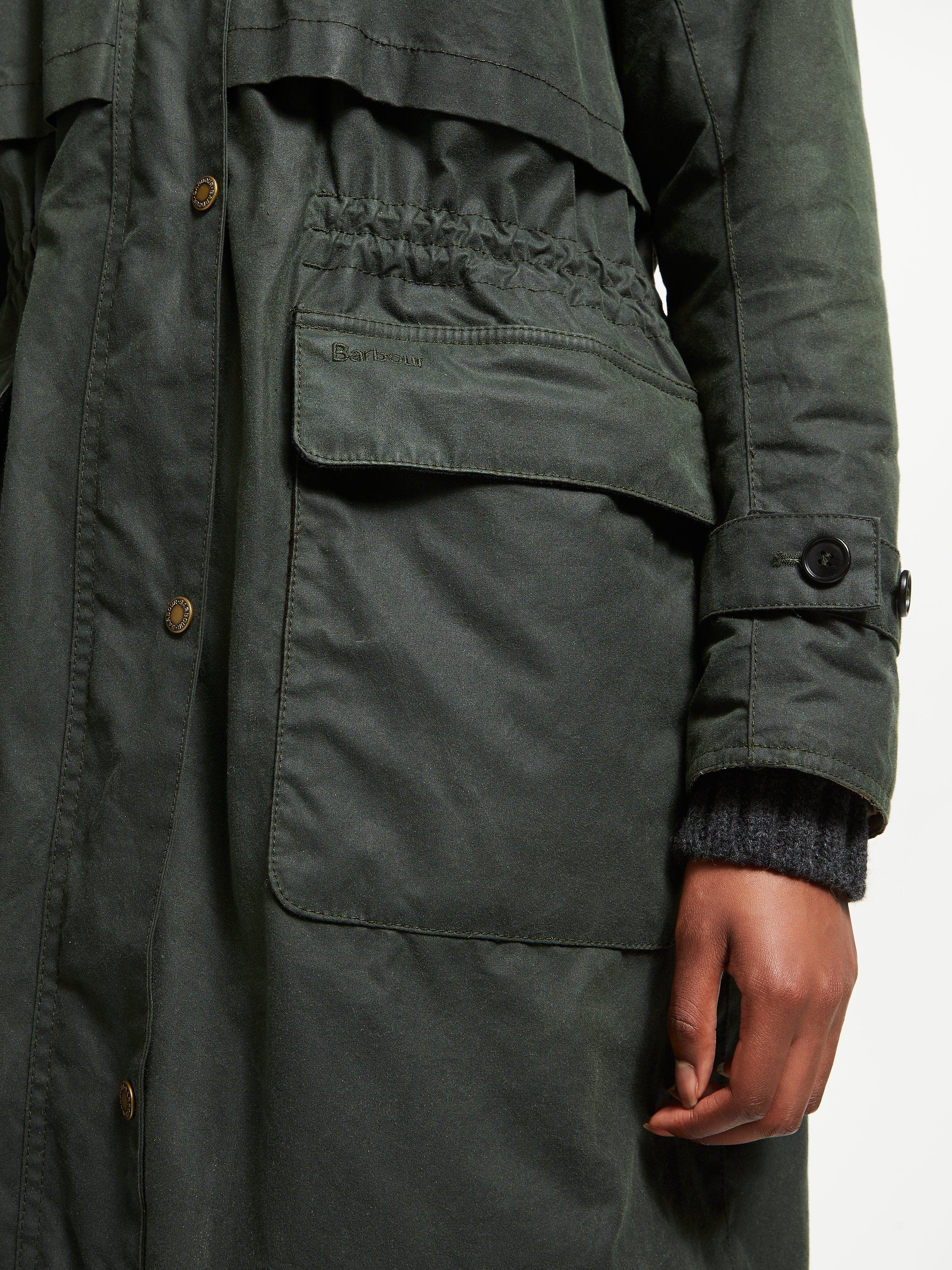 Reinterpreting the Barbour DNA with a modern, utilitarian aesthetic, this trench-style wax jacket is cut to an oversized silhouette with a longer length. The sit-down collar features a detachable fur trim, while a quilted buggy lining delivers extra warmth and the lower patch pockets have the added benefit of side entry for fast access.