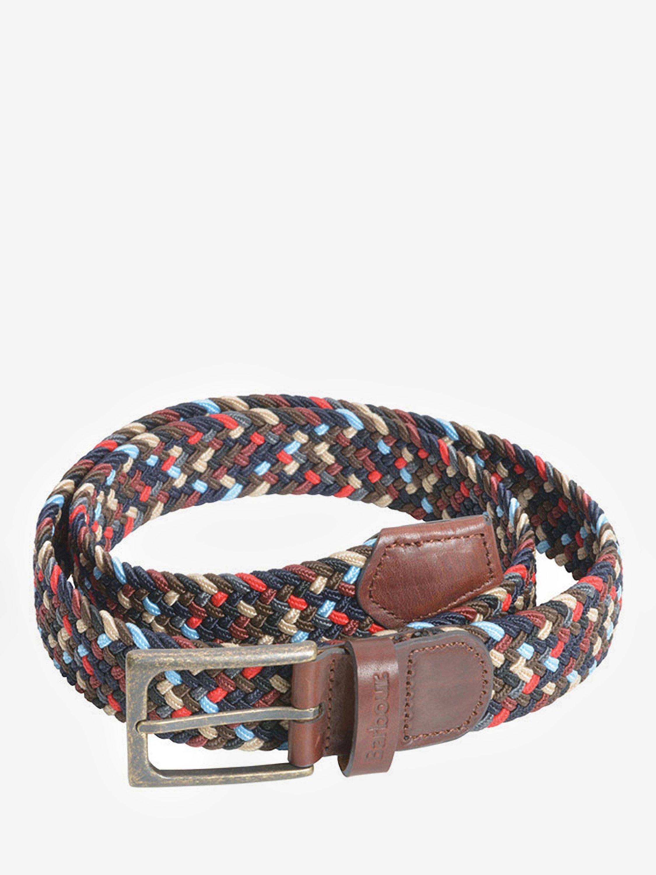 Barbour's Fold belt is woven from a stretch, webbed fabric and trimmed with authentic leather detail. Multicoloured and contemporary, it's finished with a metal buckle in an aged brass-effect finish and an embossed logo on the belt loop. A great choice for casual outfits.