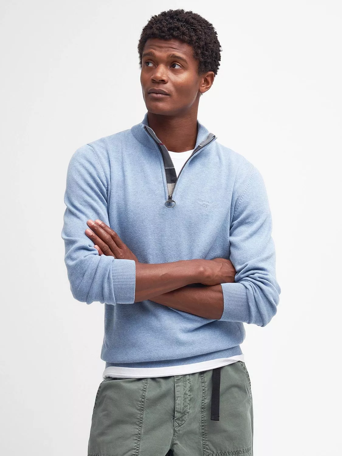 A wardrobe essential, this half-zip jumper is elevated with subtle Barbour detailing. Coming in a lightweight Cotton knit, the zip closure is trimmed with tartan to the inner facing and features our signature ring-puller detail, while a tonal embroidered logo to the chest completes the look.