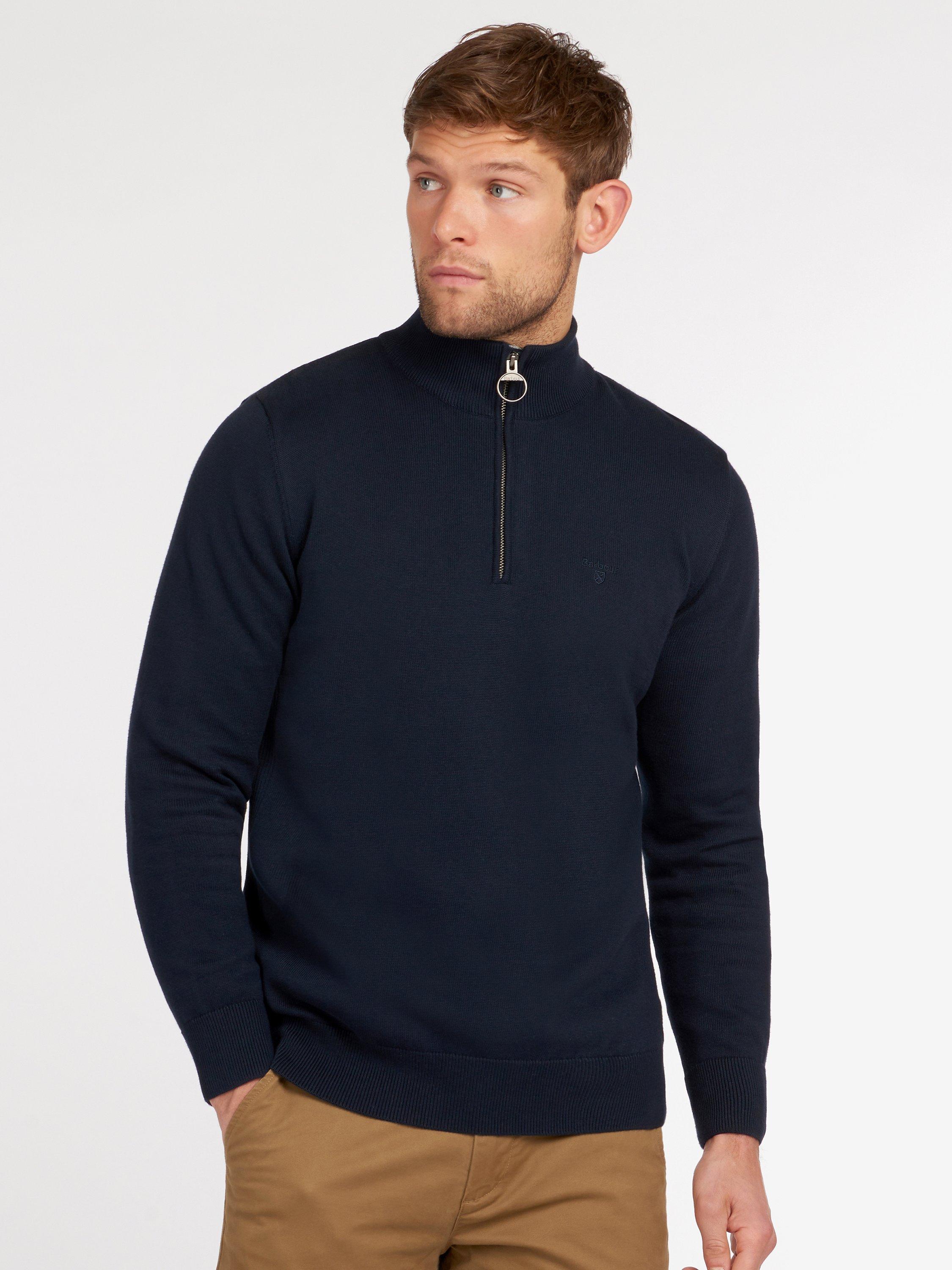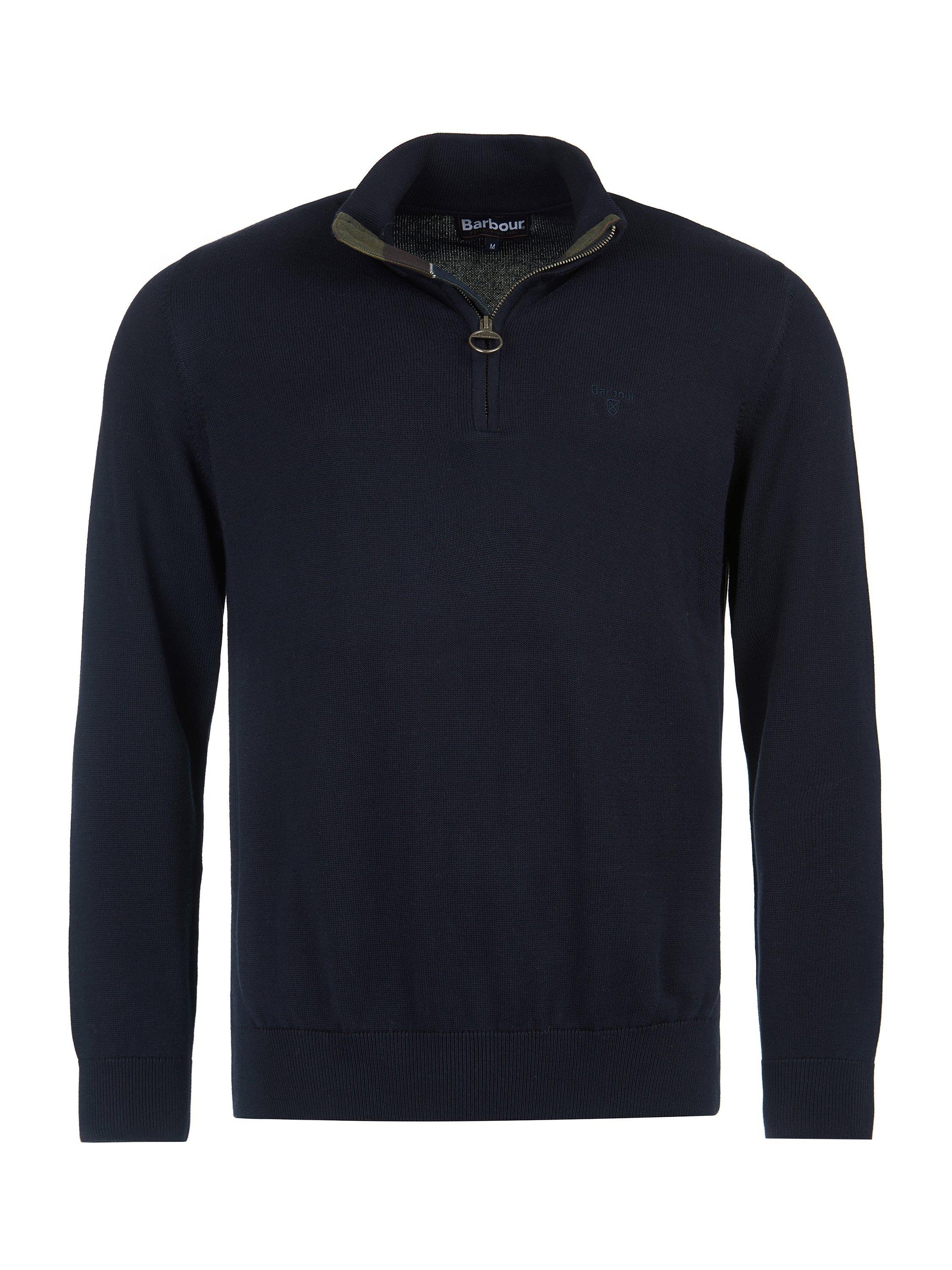 Made from a warm and comfortable fabric, this knit is styled with a half zip fastening- ideal for opening to wear something underneath. It has ribbed cuffs and hems ensuring the perfect fit, and has a contrasting fabric trim in a traditional Barbour checked print. Completing the look is a branded logo on the left chest.