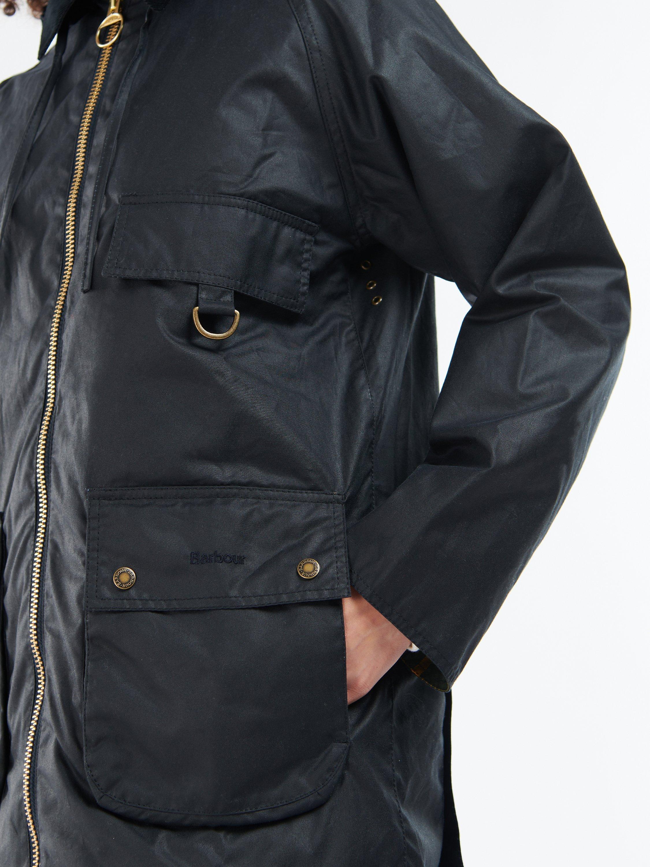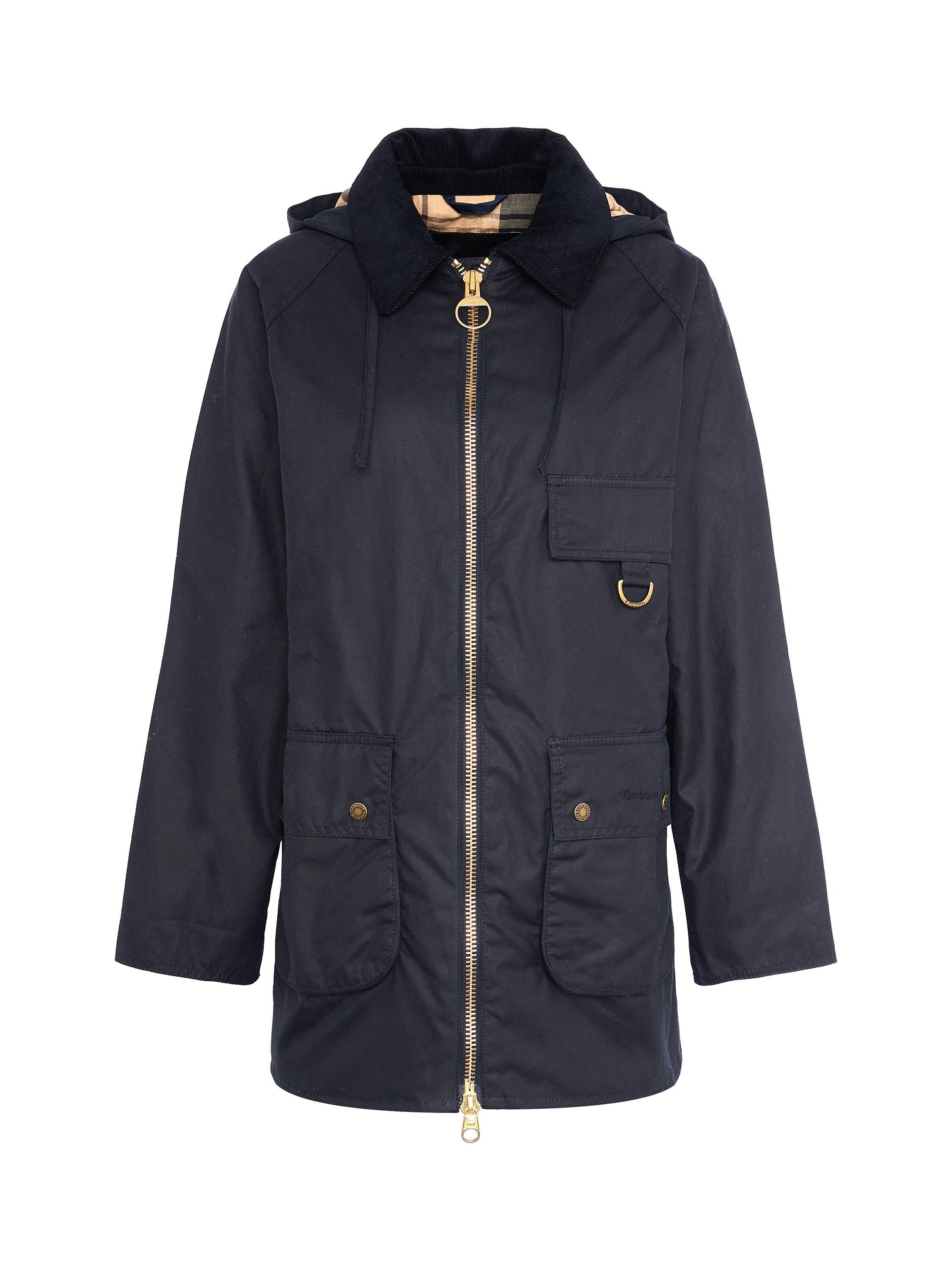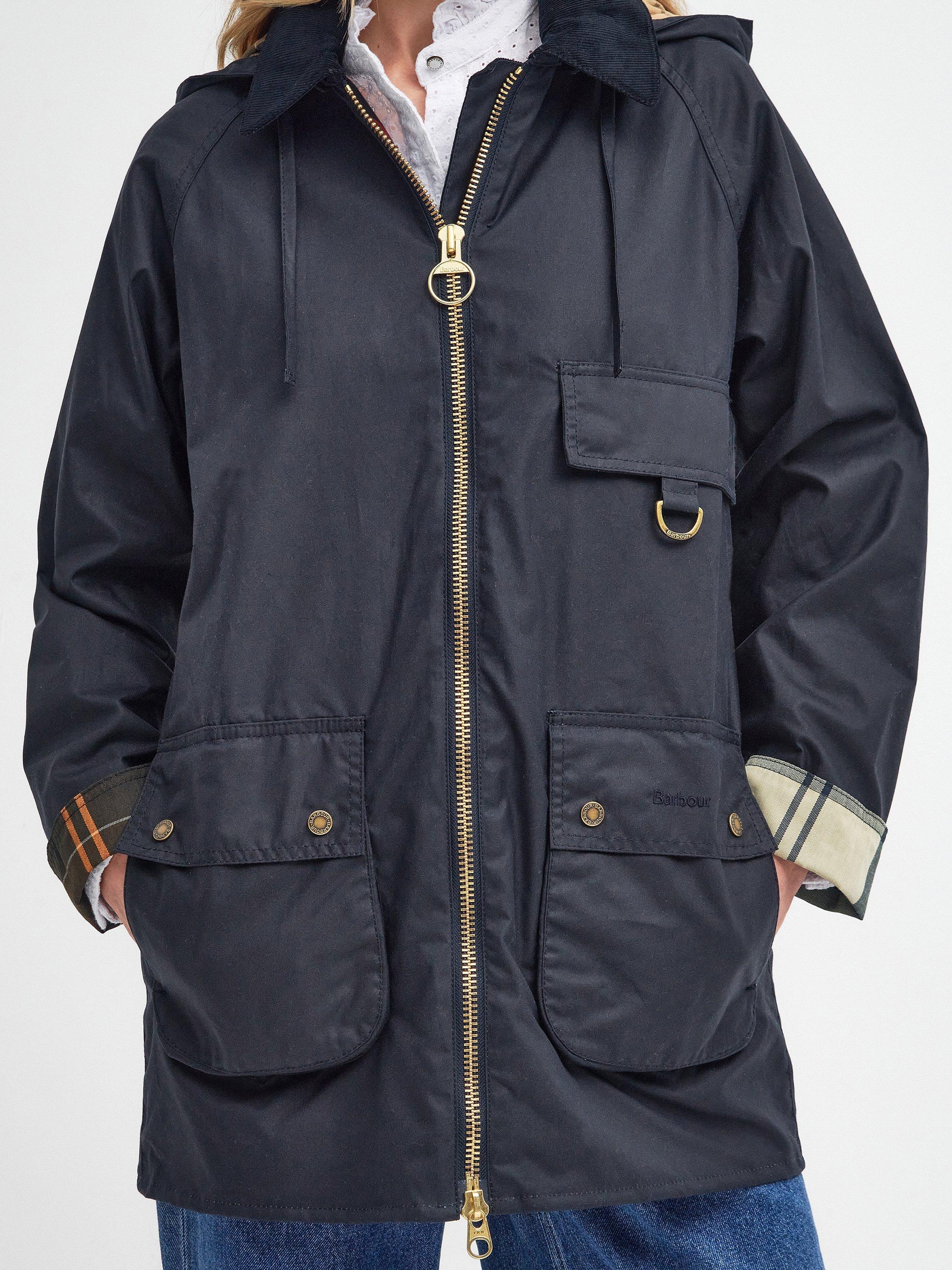 Combining modernity with elements of traditional countrywear, the Barbour Highclere Wax Jacket boasts a mid length design with a detachable hood and cord collar for unwavering versatility. Showcasing traditional bellows pockets and a chest pocket with a D ring, this waxed cotton design offers comfort without foregoing style. A two way front zip fastening features on the garment while a patchwork tartan lining effortlessly finishes the jacket.