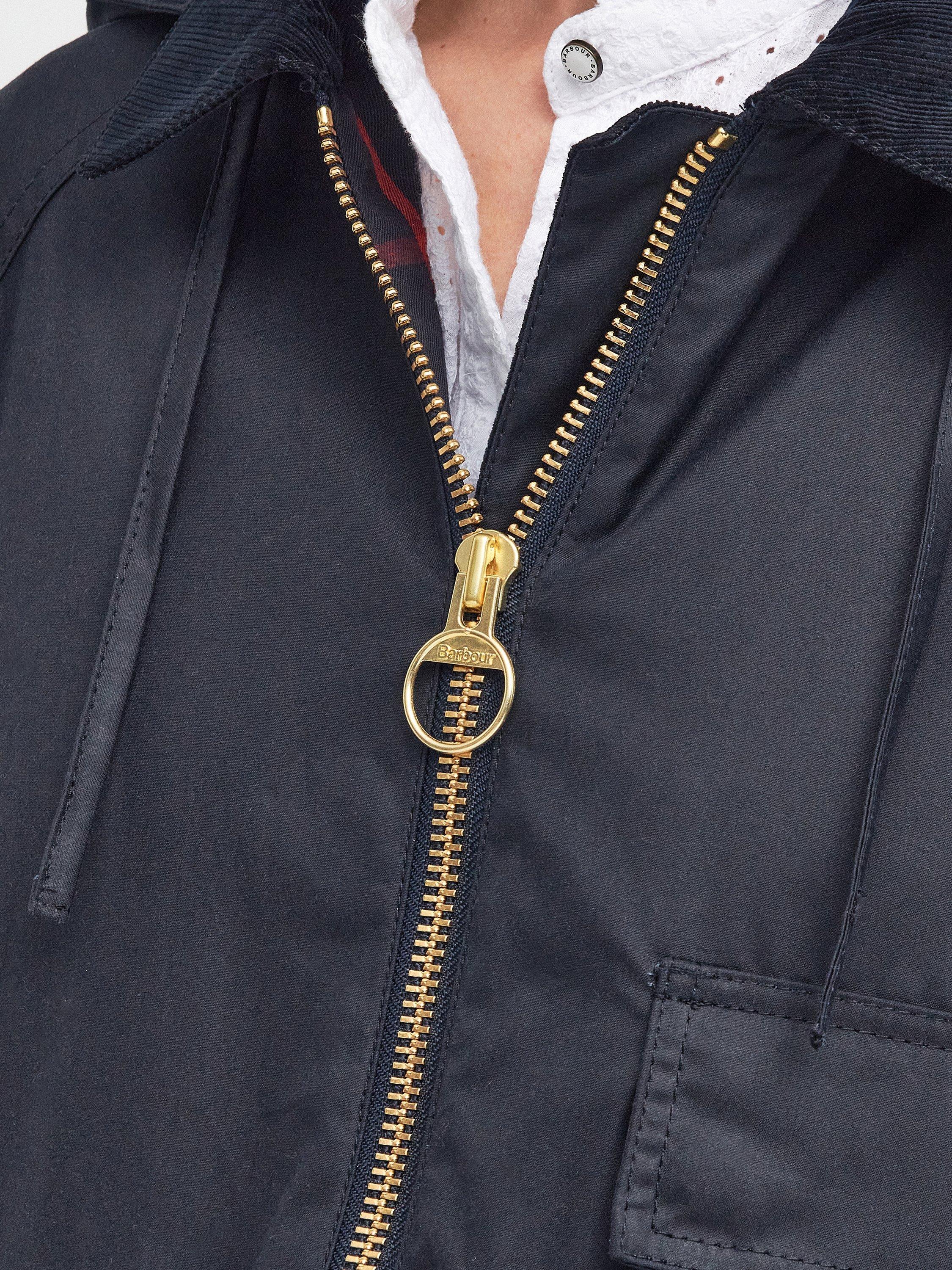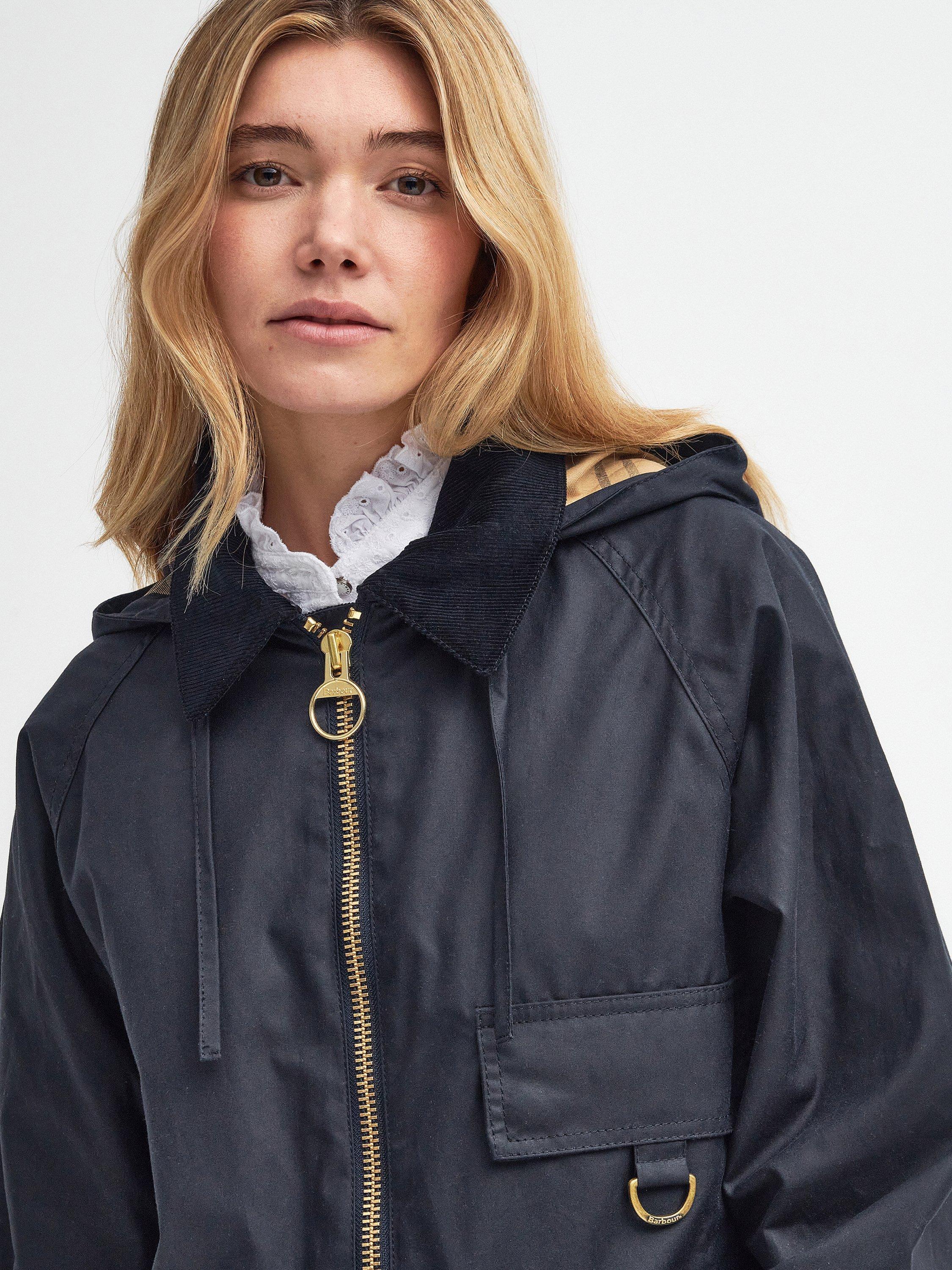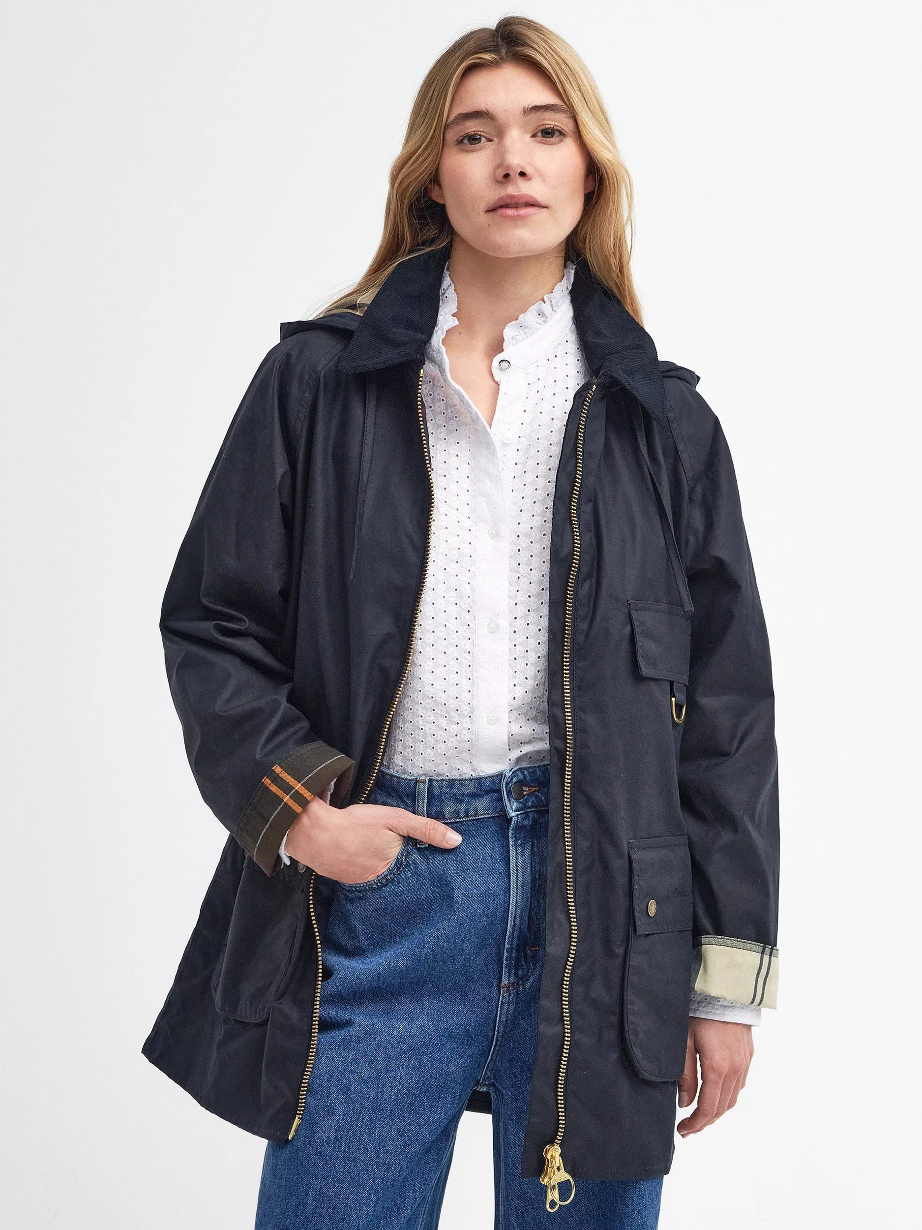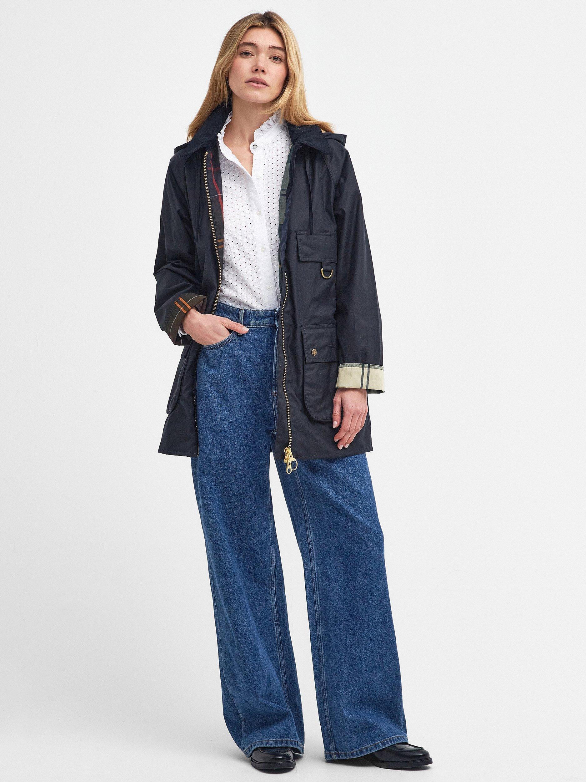 Combining modernity with elements of traditional countrywear, the Barbour Highclere Wax Jacket boasts a mid length design with a detachable hood and cord collar for unwavering versatility. Showcasing traditional bellows pockets and a chest pocket with a D ring, this waxed cotton design offers comfort without foregoing style. A two way front zip fastening features on the garment while a patchwork tartan lining effortlessly finishes the jacket.