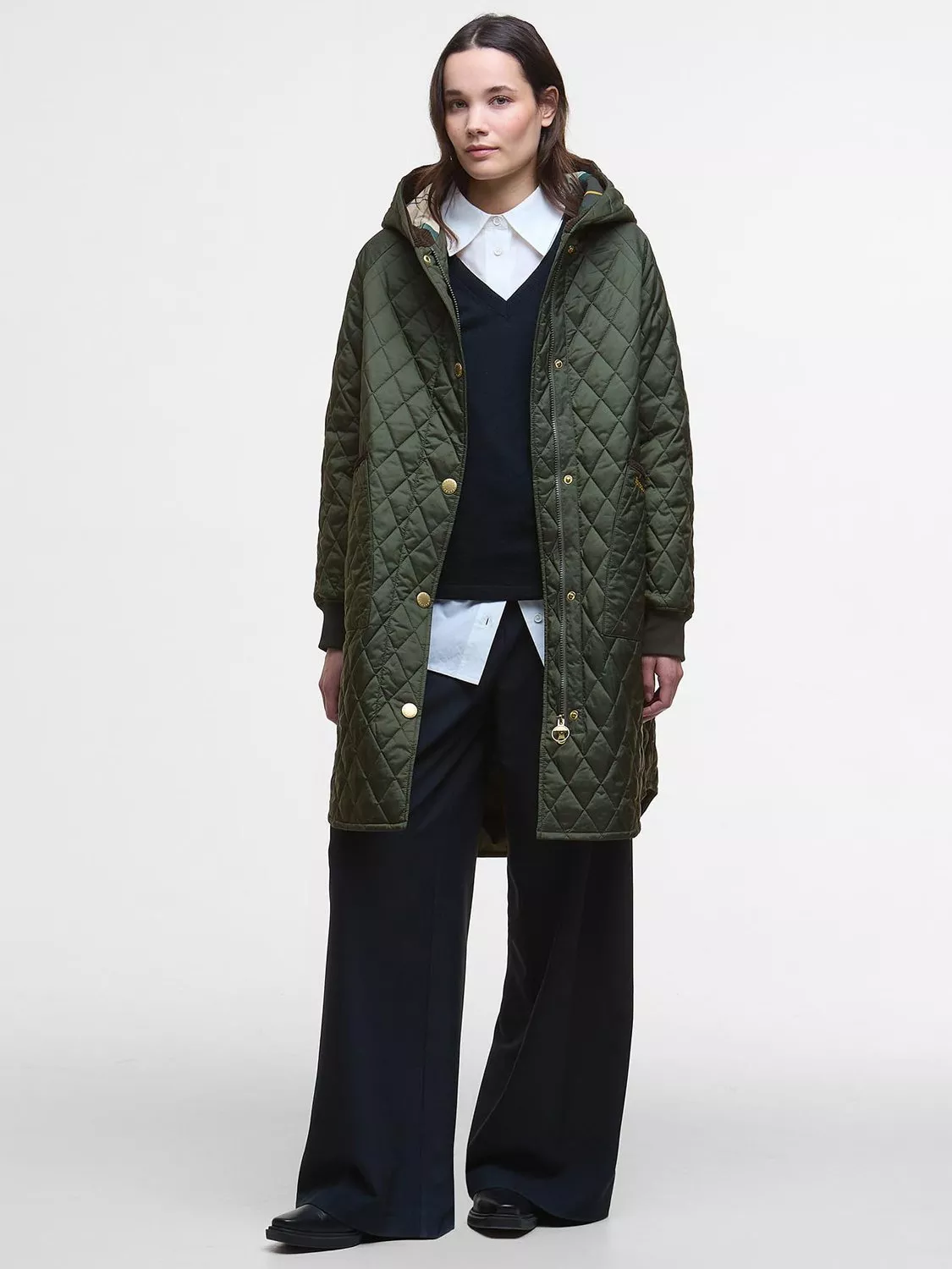 Bringing Barbour's signature diamond quilting to modern silhouettes, the Barbour Hilary Quilted Jacket takes signature quilted jackets, such as the Liddesdale. Its longline silhouette, large hood and elasticated cuffs ensure the warmth is locked in, perfect for the coldest of days.