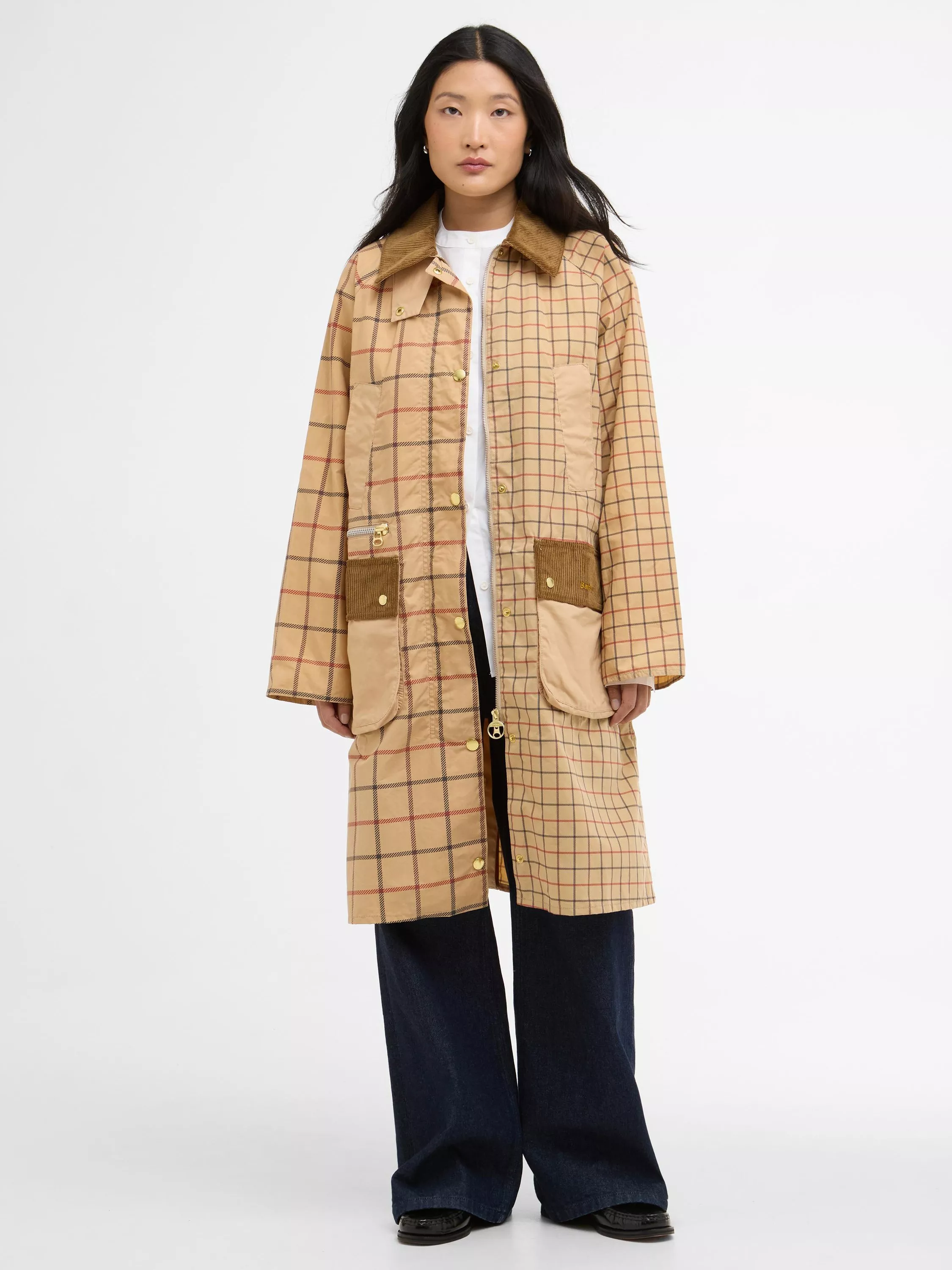 Inspired by classic waxed jacket styles from the Barbour archives, the Hollington Check Car Coat is in a longline silhouette and features classic Barbour details such as the handwarmer pockets, throat tab and cord collar.