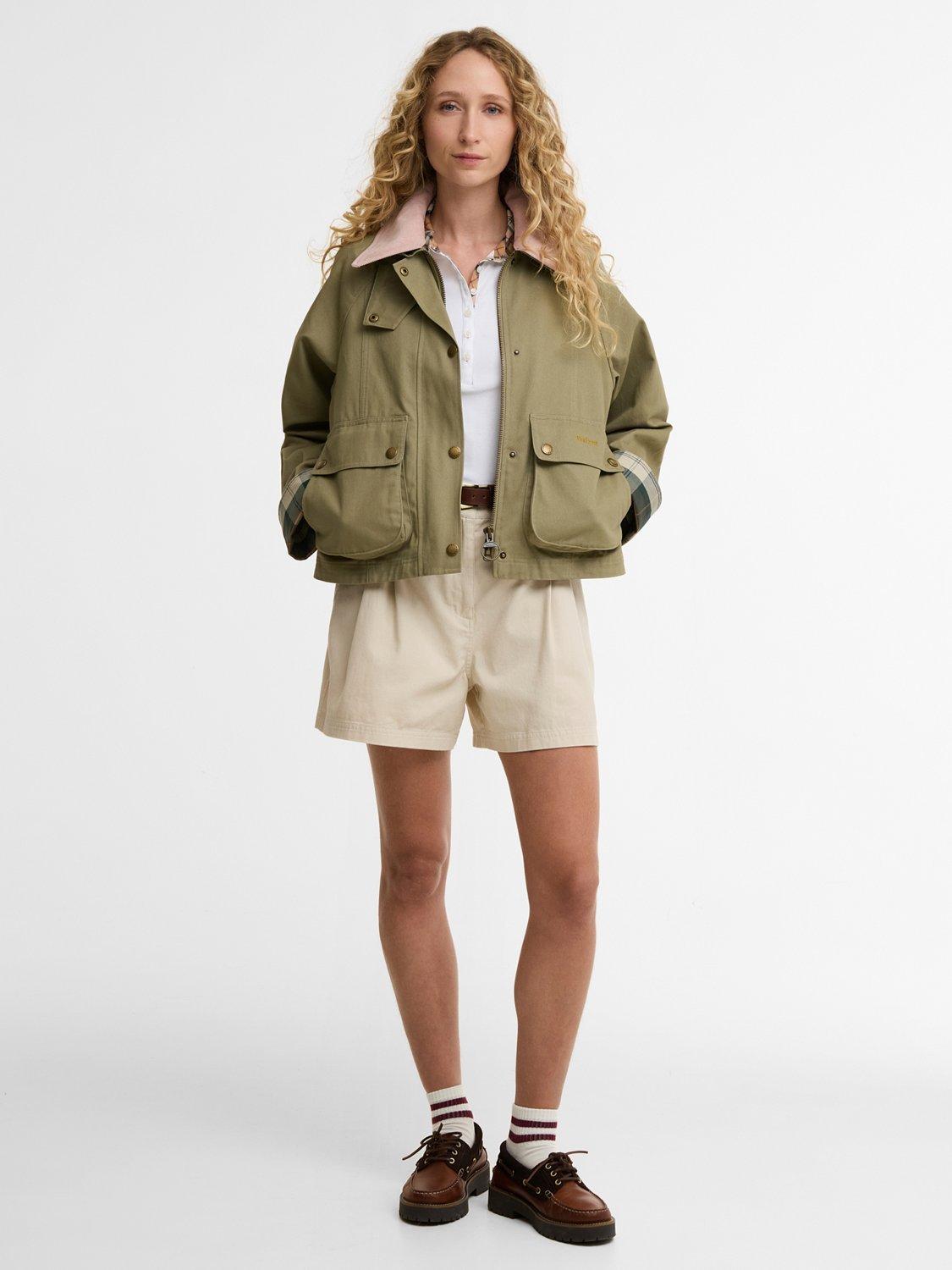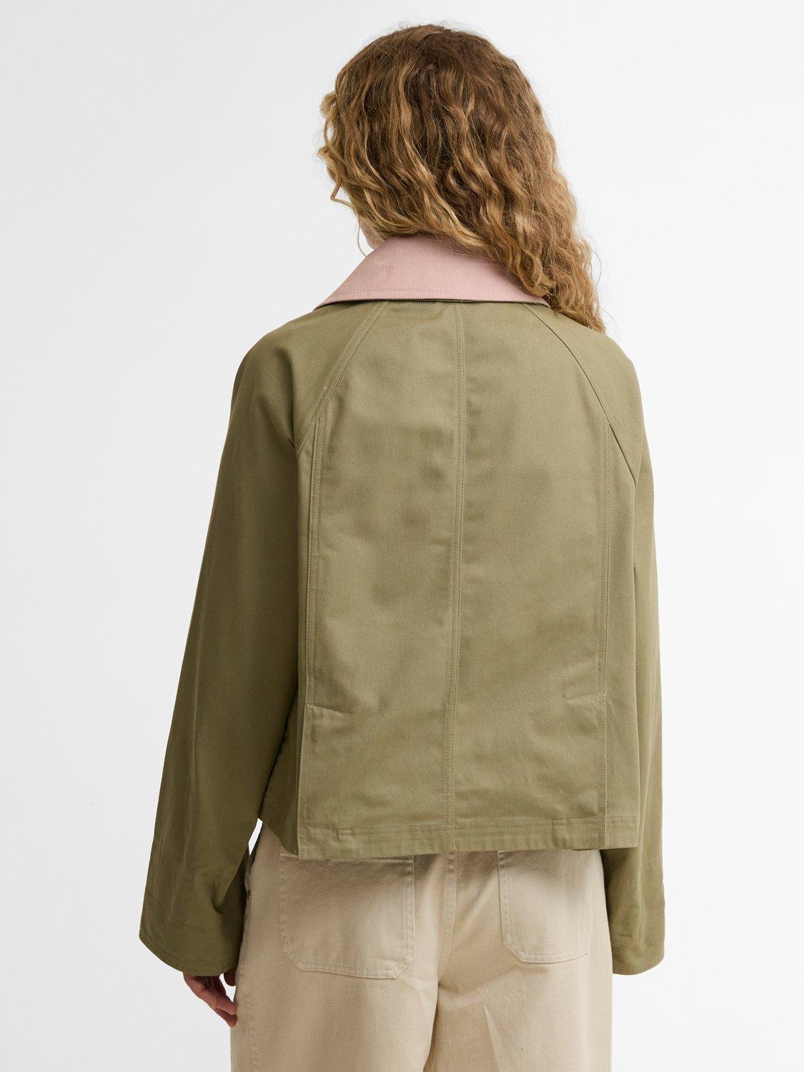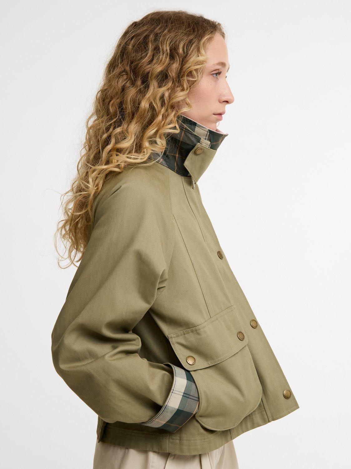 BarbourIcons Beadnell Cropped Jacket, Olive/Gardenia
