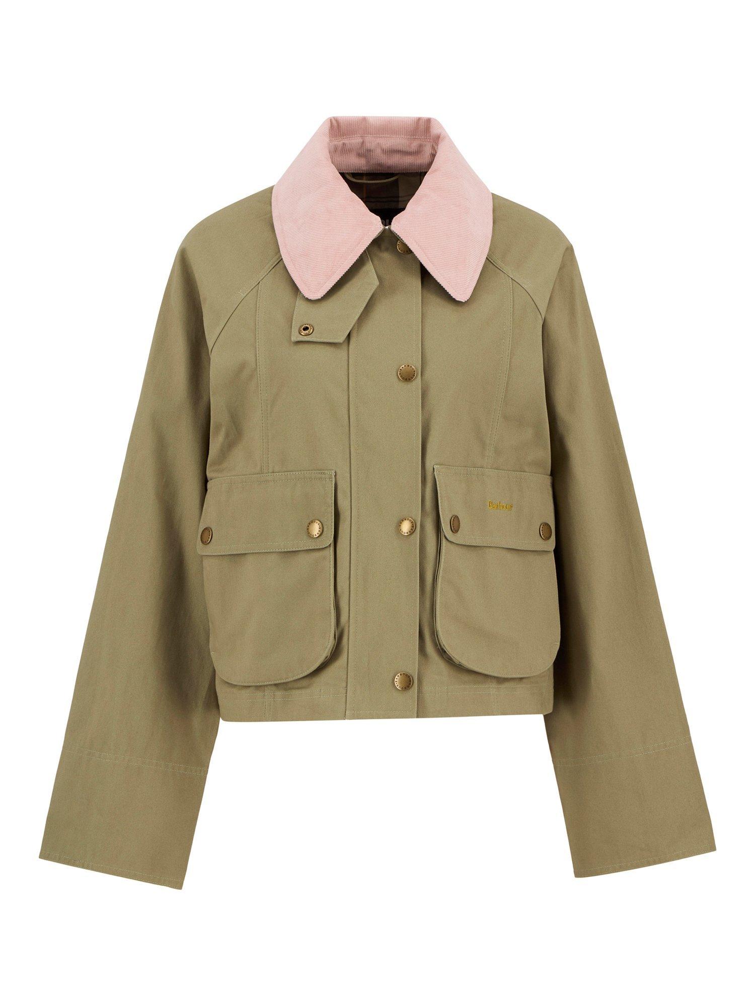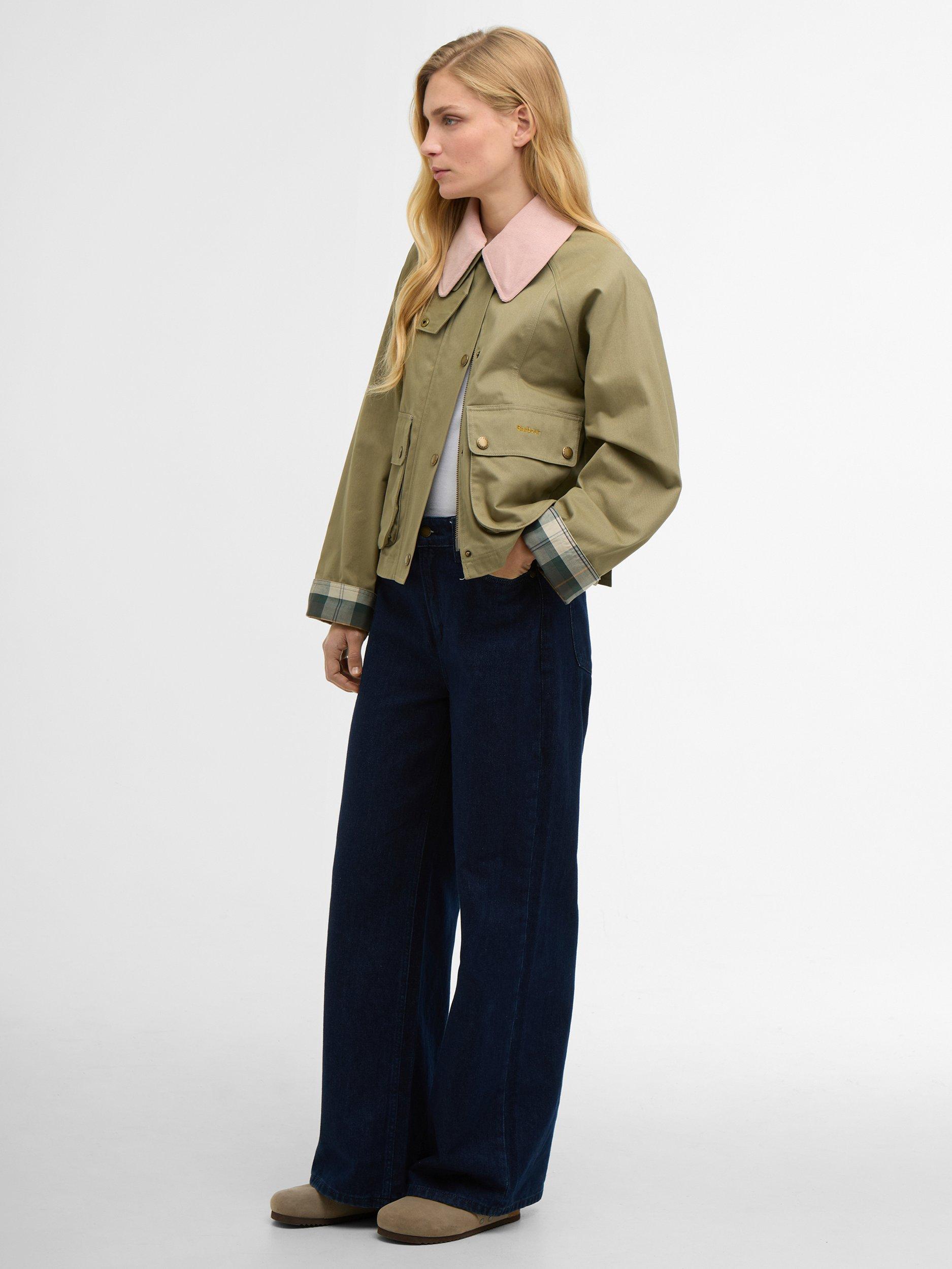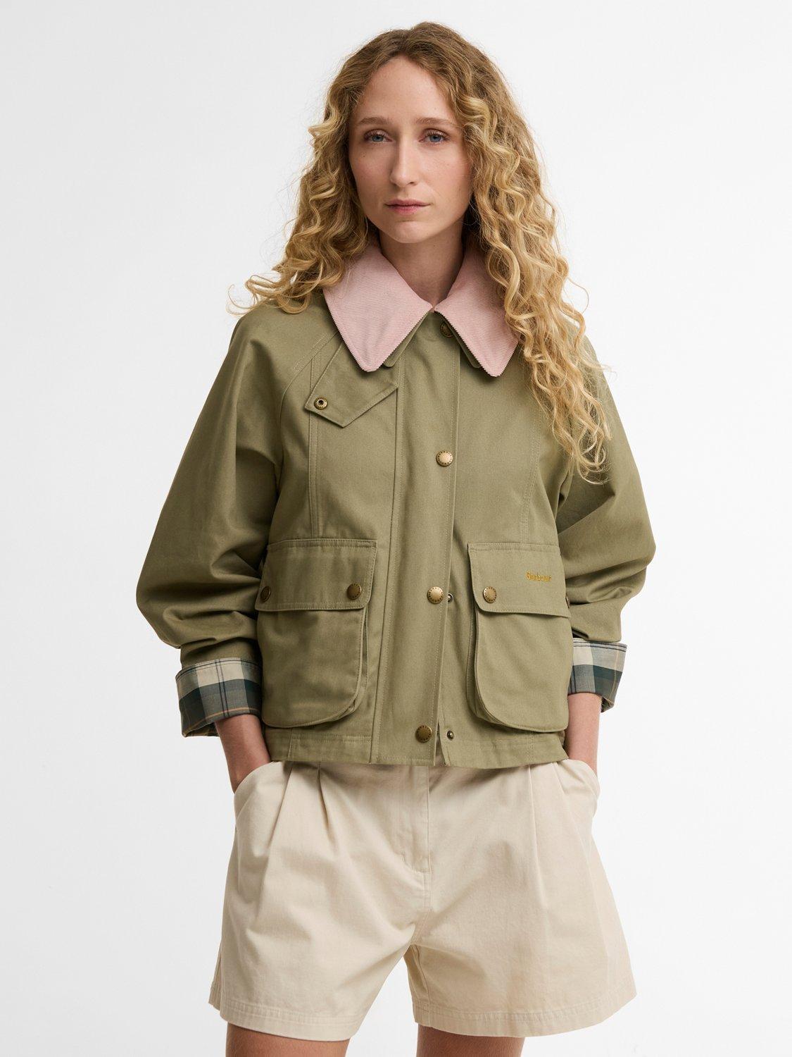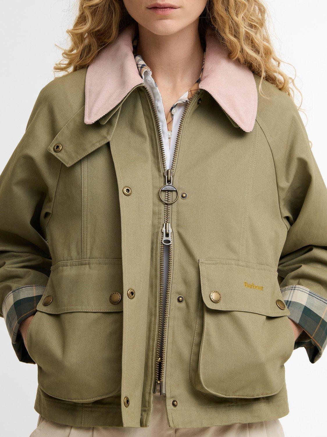 BarbourIcons Beadnell Cropped Jacket, Olive/Gardenia