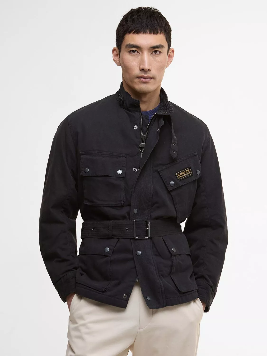 Crafted from lightweight washed cotton and detailed with a buckled throat tab to the collar, it's a must for those seeking the originality Barbour International is known for.