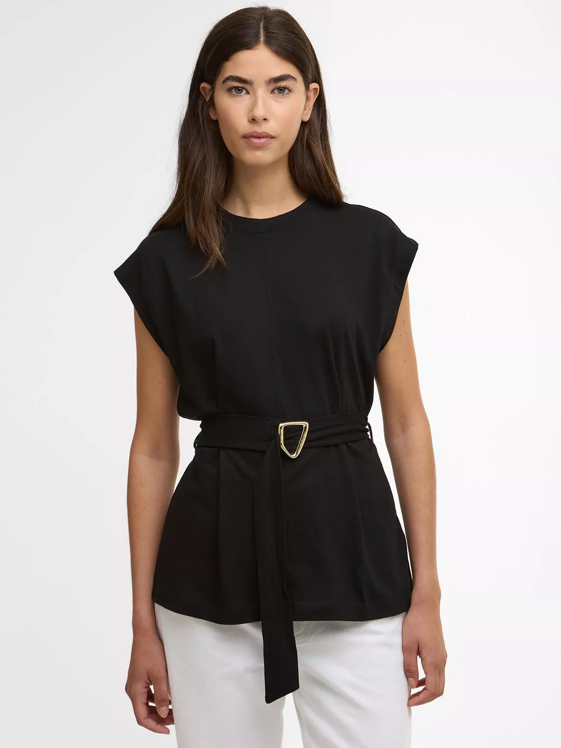 The Alexis Top offers a relaxed fit with grown-on sleeves and stylish stitch detailing. Crafted from 100% cotton, it features a self-fabric belt with a Barbour International branded buckle and an ID badge at the back neck. Perfect for effortless, casual elegance.