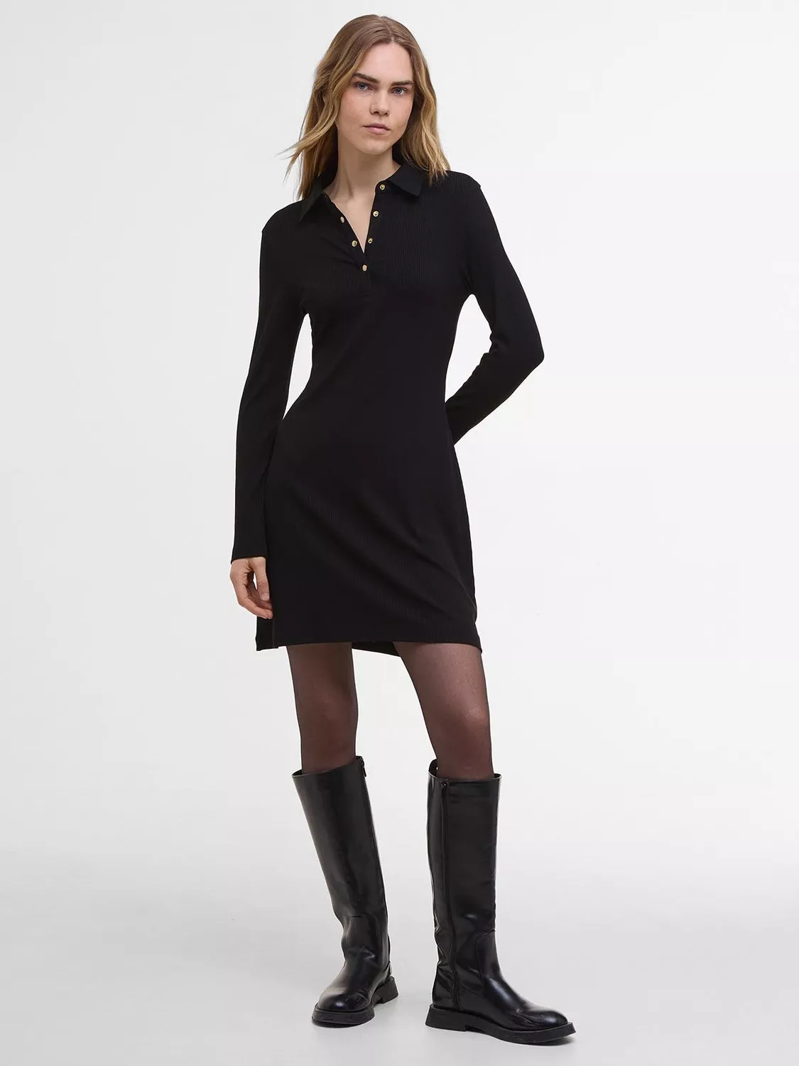 There's no doubt a little black dress is a wardrobe staple, but the Barbour International Chloe Ribbed Mini Dress takes this style up a gear. Crafted to a flattering slim fit from an elasticated ribbed jersey fabric, this long-sleeved mini dress is detailed with bright gold-toned branded buttons and finished with a preppy collar.