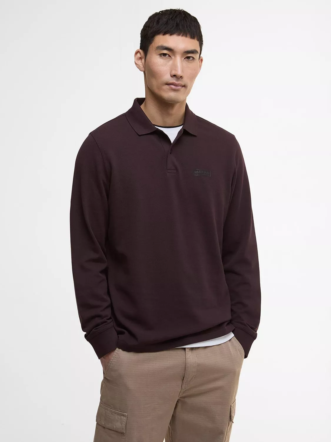 BarbourInternational Cotton Regular Fit Long Sleeve Polo Shirt, Java Red