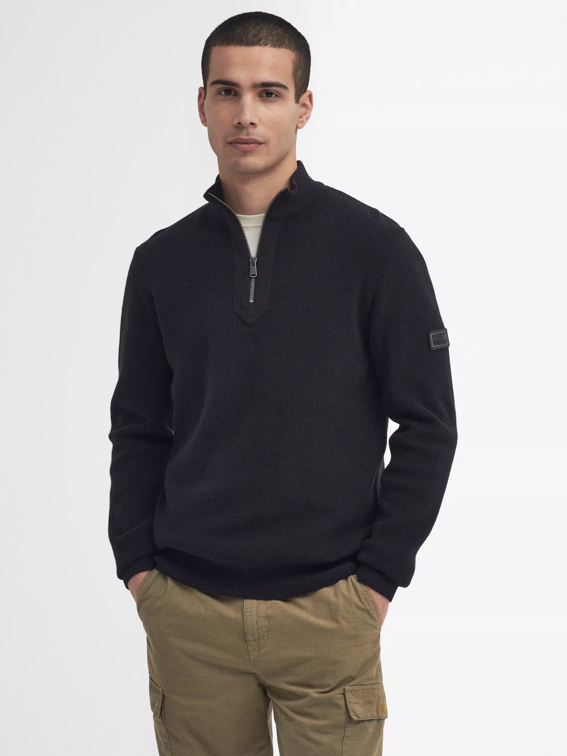 A modern take on a traditional knitwear style, the Crawley half-zip jumper makes cold-weather layering easy. Made from a blend of wool and cotton for maximum comfort, this piece also features a Barbour International logo patch at the sleeve.