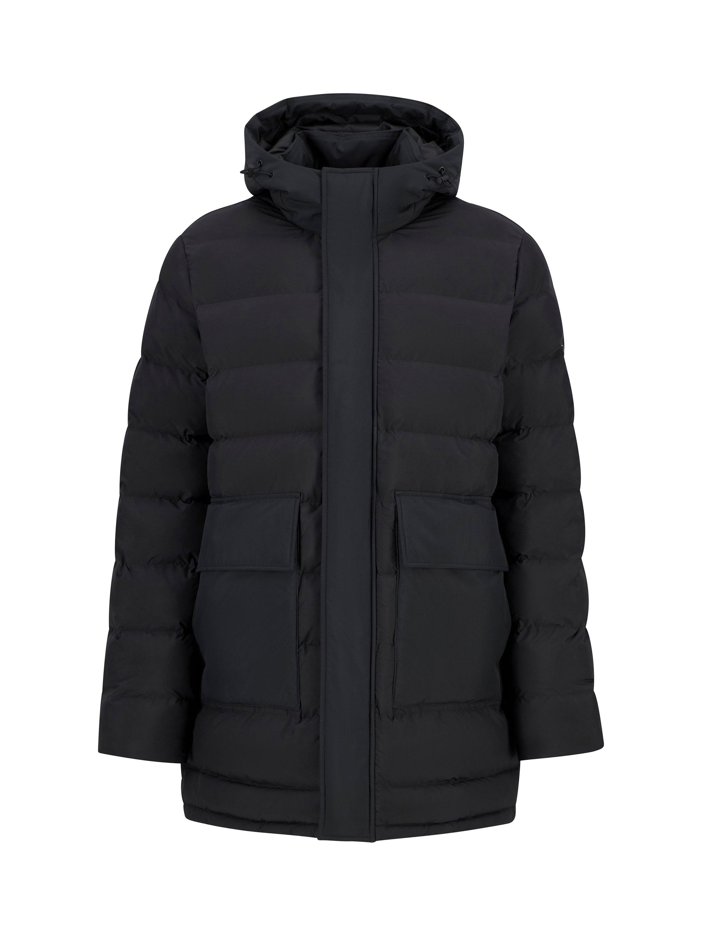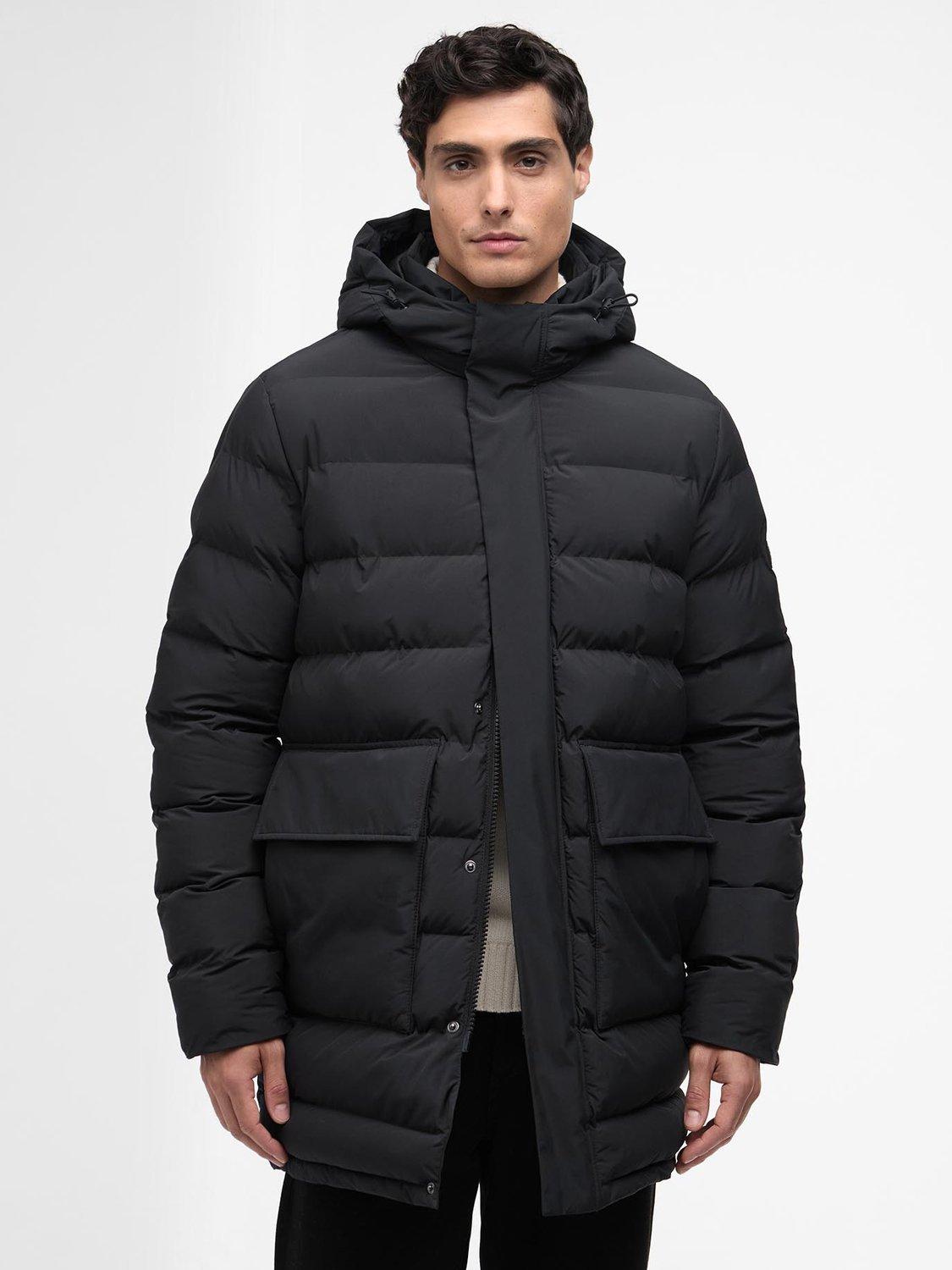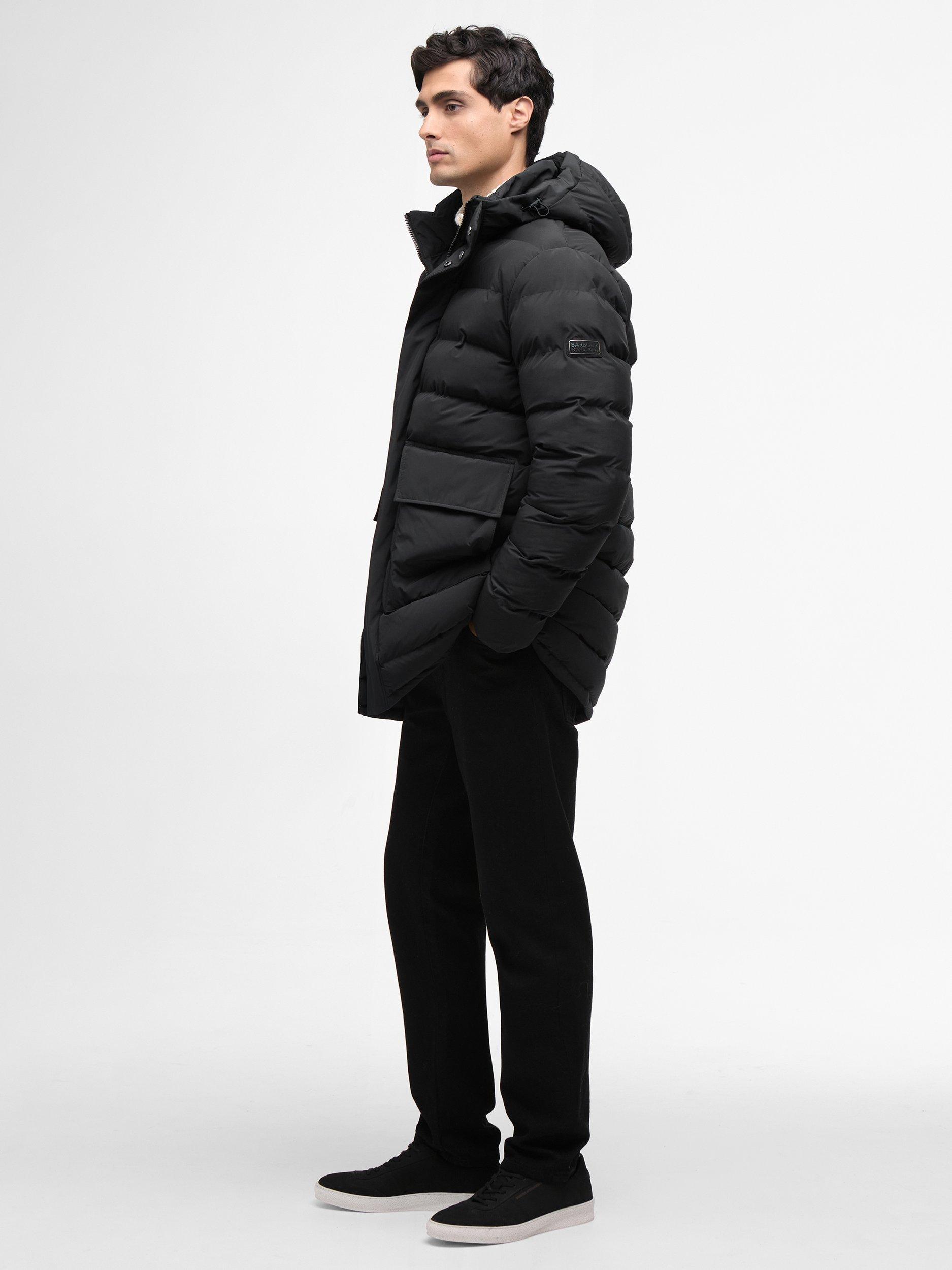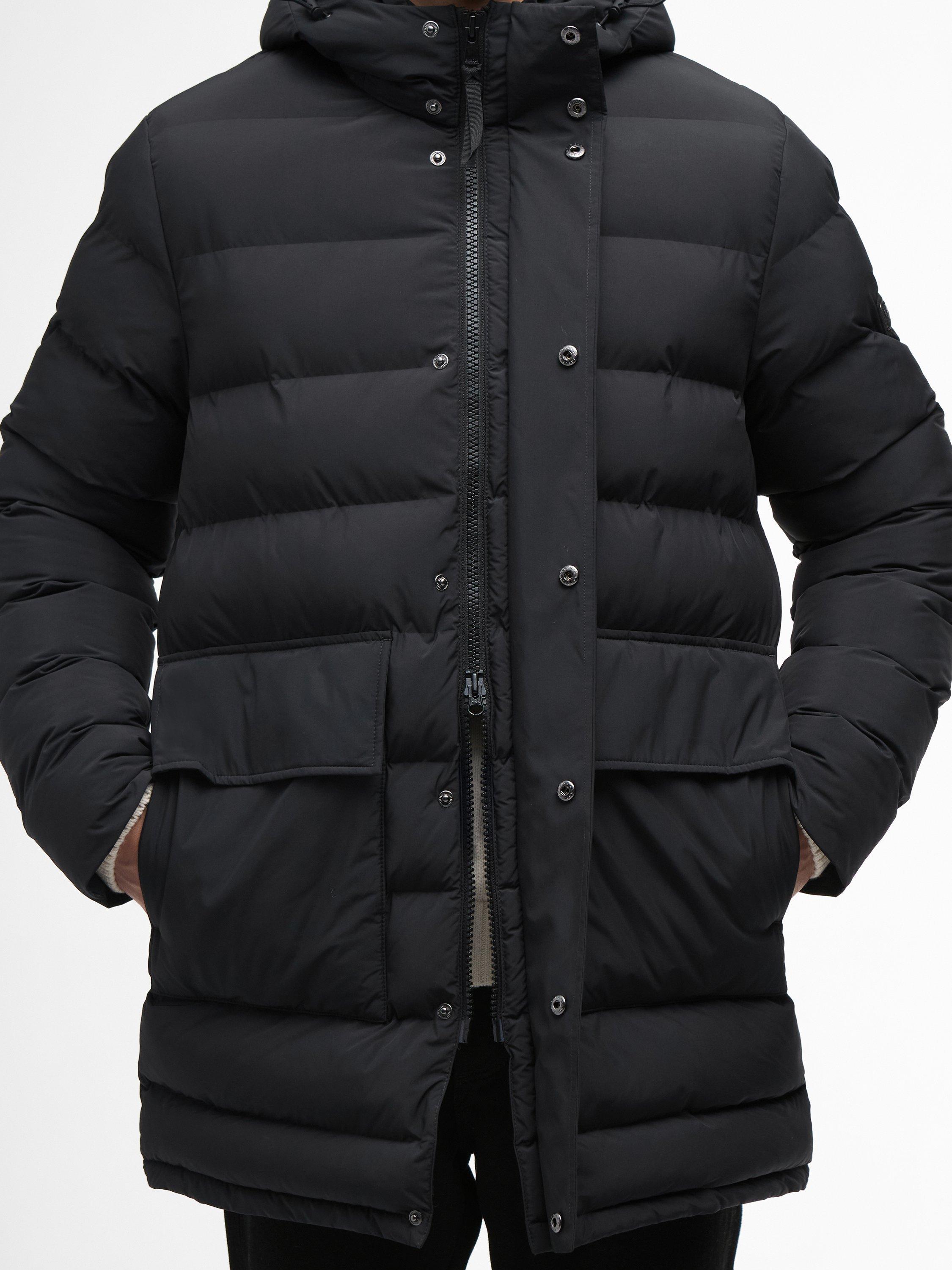 Barbour International's Dalesmith puffer jacket is cut to a longer length than conventional styles and engineered with woven baffles for greater heat retention. It also features a convenient hood, a zip-fastened front with concealed stud fastenings and lower patch pockets.