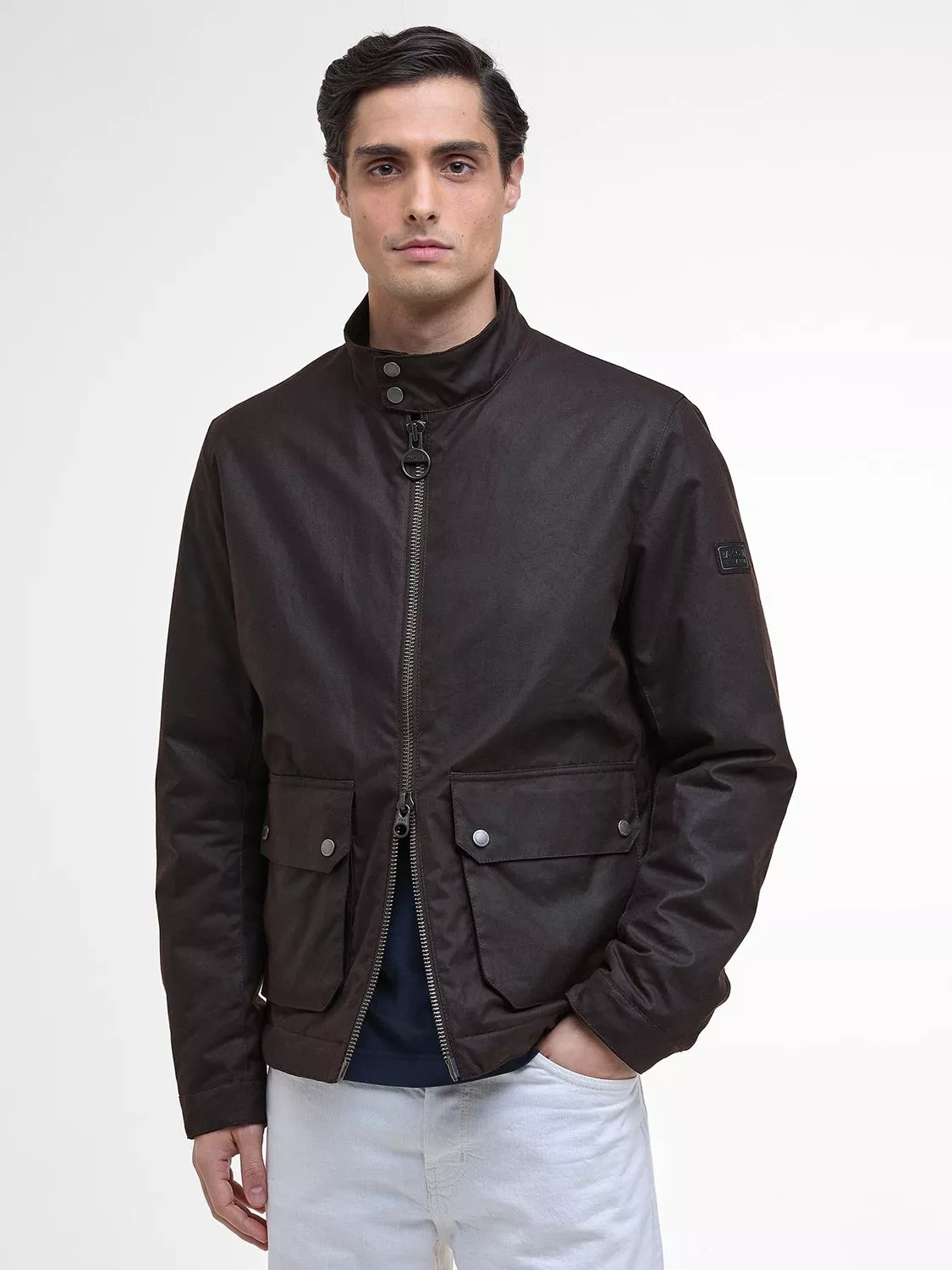 The Barbour International Lutlaw Waxed Jacket taps into Barbour International's iconic motorcycling heritage with its double stud throat strap and metal hardware. Detailed with a baffle quilted lining and stud adjusters to the cuffs and hems, it not only offers a fashion-forward appeal but warmth and protection in the cooler months.