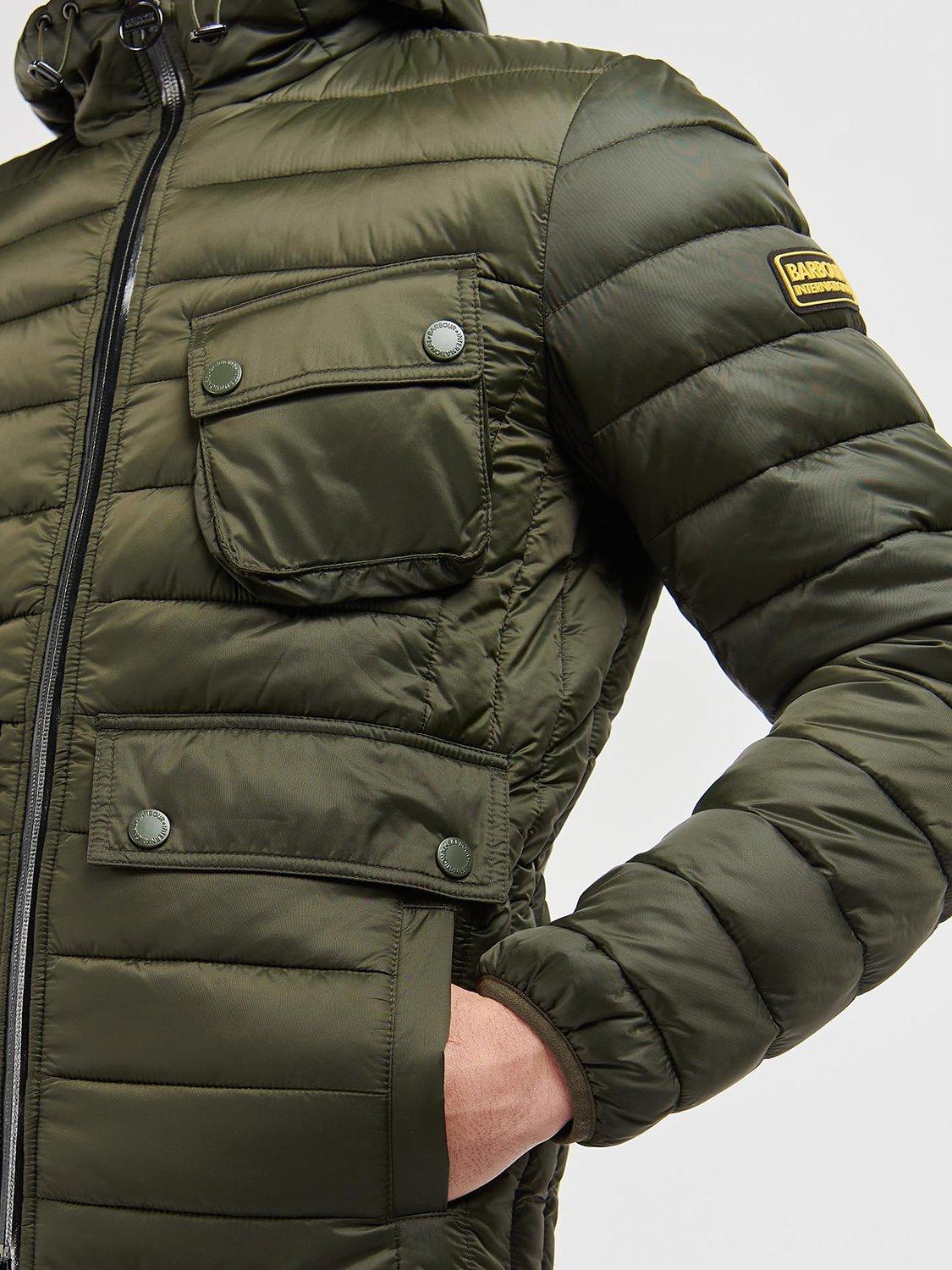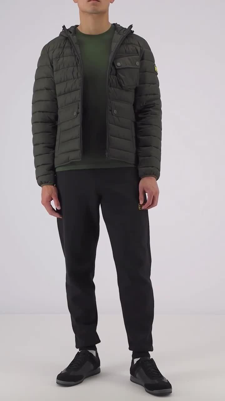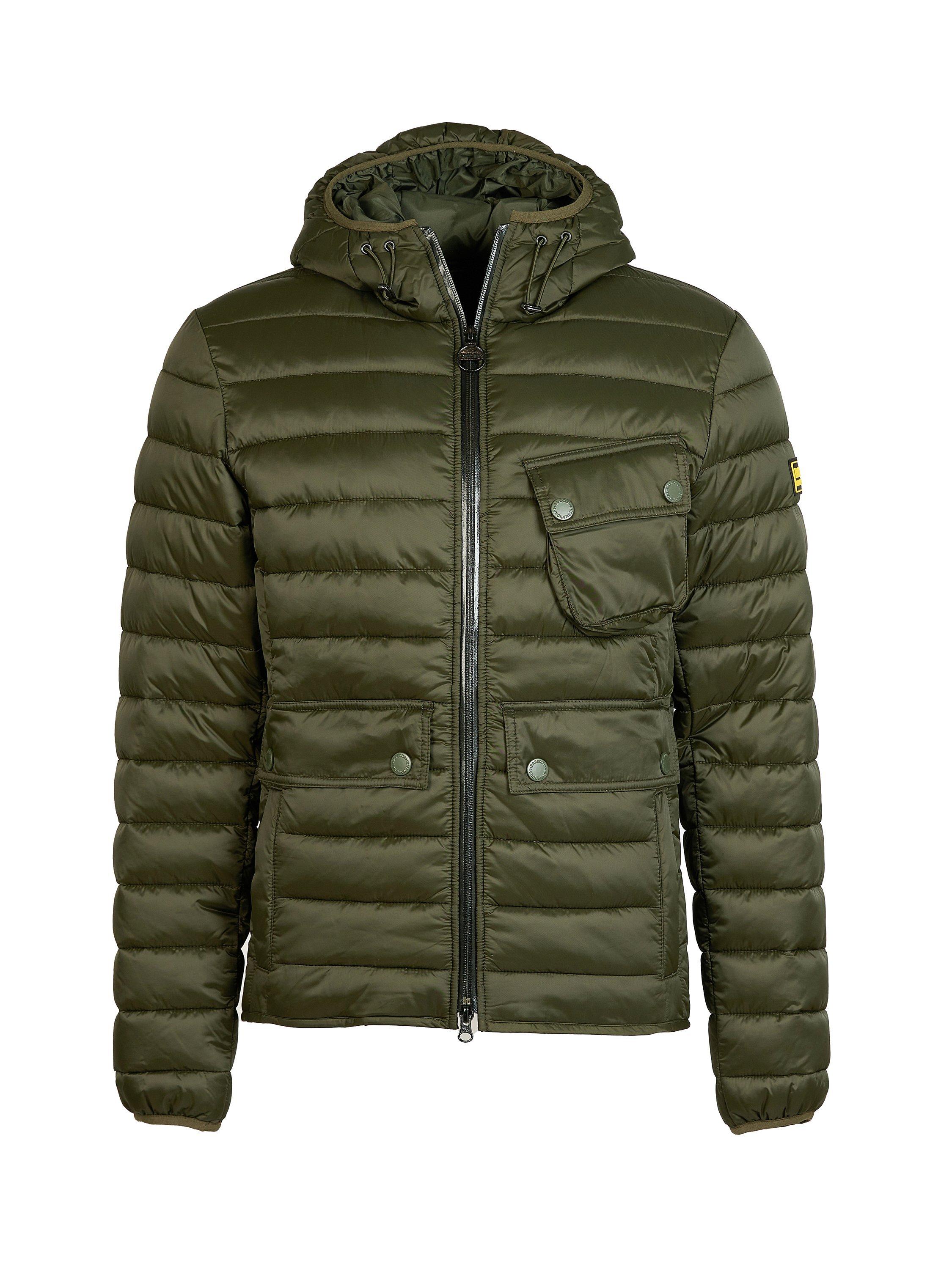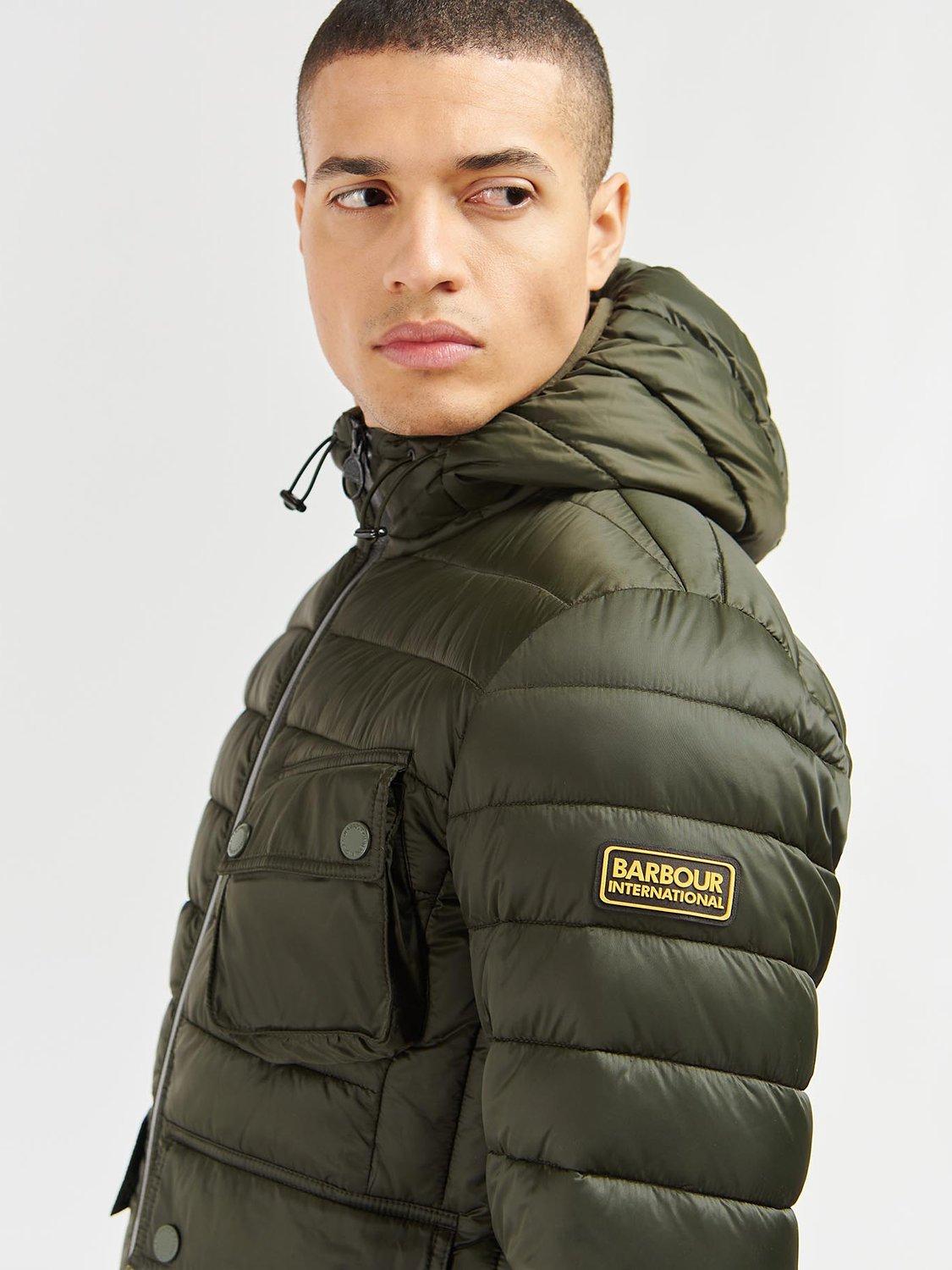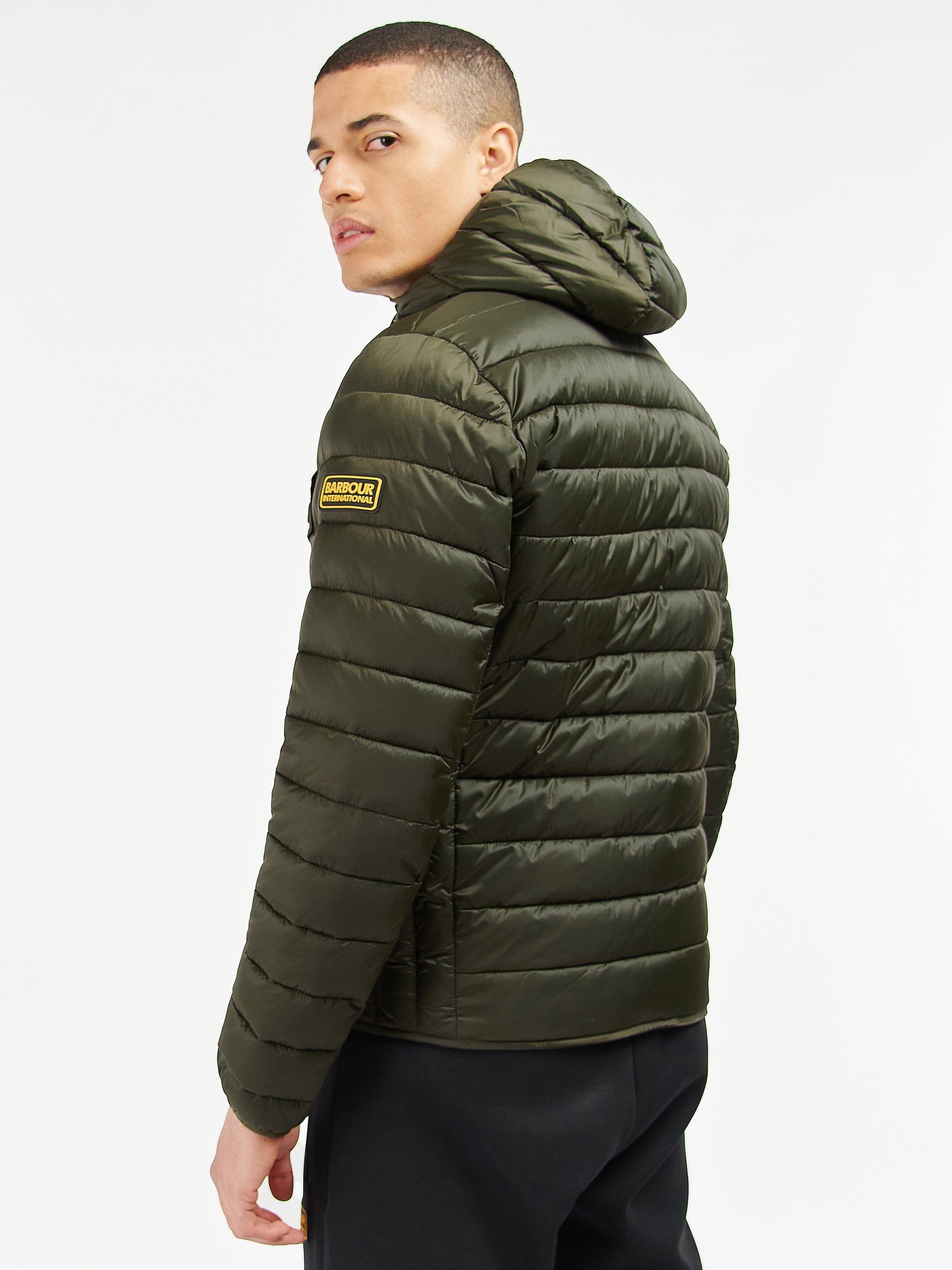 The Barbour International Racer Ouston Hooded Quilted Jacket boasts a baffle design with a large hood and zip front fastening for the perfect layering staple. Boasting angled chest pockets and lower welt pockets, this jacket features binding to the hem and cuffs for a racer-inspired finish.