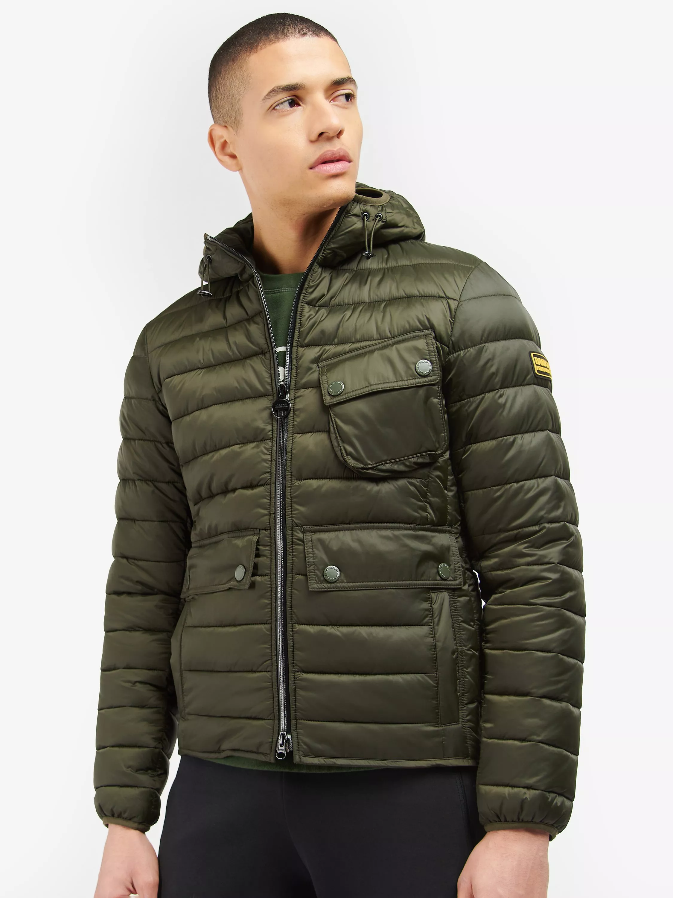 The Barbour International Racer Ouston Hooded Quilted Jacket boasts a baffle design with a large hood and zip front fastening for the perfect layering staple. Boasting angled chest pockets and lower welt pockets, this jacket features binding to the hem and cuffs for a racer-inspired finish.