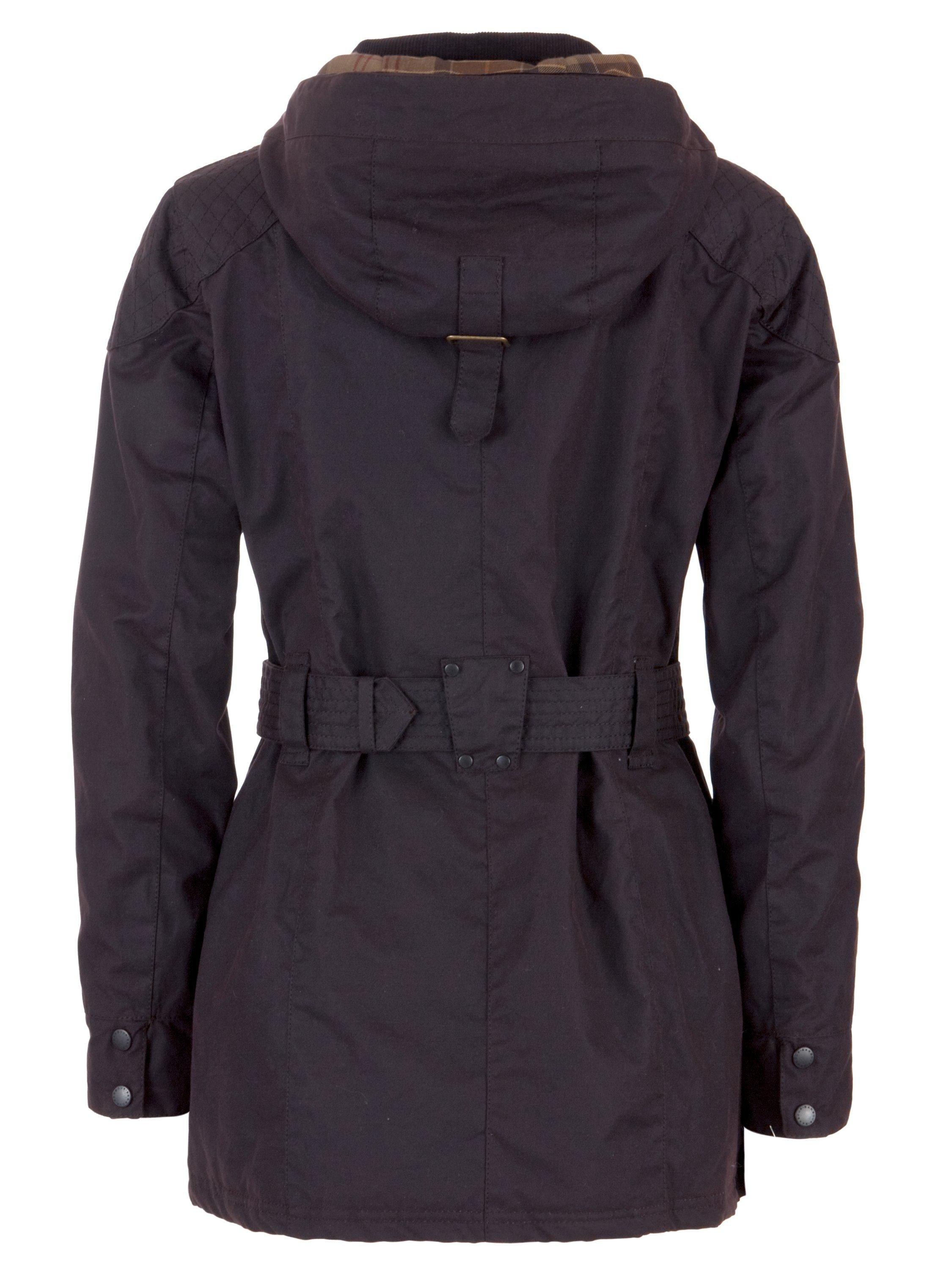It has a cosy quilted lining, tartan hood lining with buckle detail as well as two hip and chest pockets and belt.