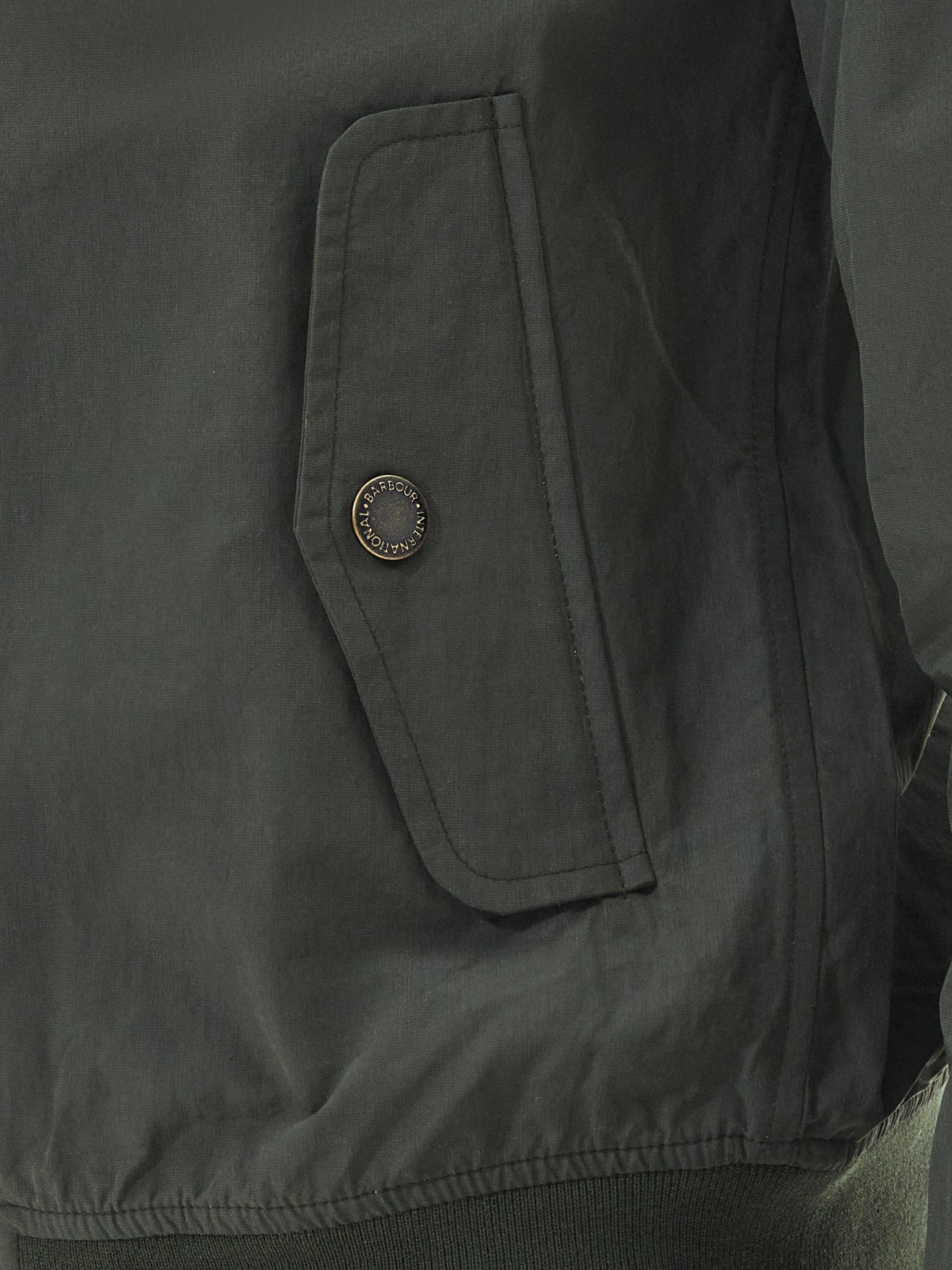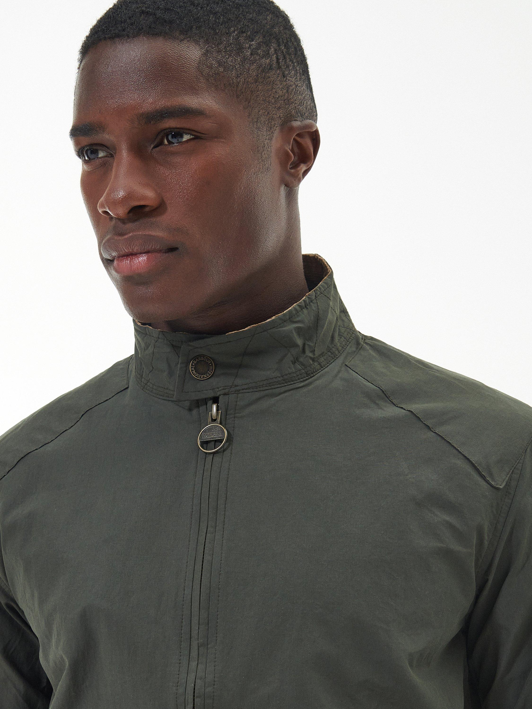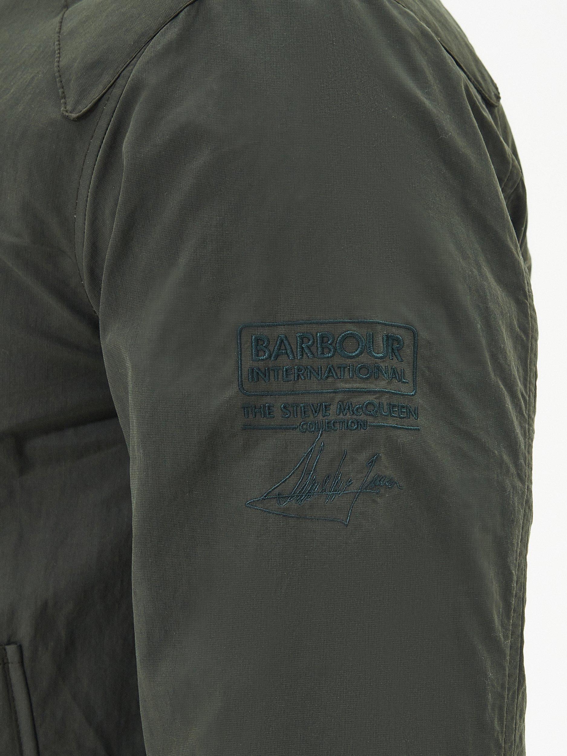 The Barbour International Rectifier jacket is reminiscent of a classic Harrington. Featuring a contrast collar lining, cuffs and hem the jacket boasts two stud fastened pockets to the front, an embroidered Steve McQueen patch on the arm and red, white and blue eyelets underarm for breathability.
