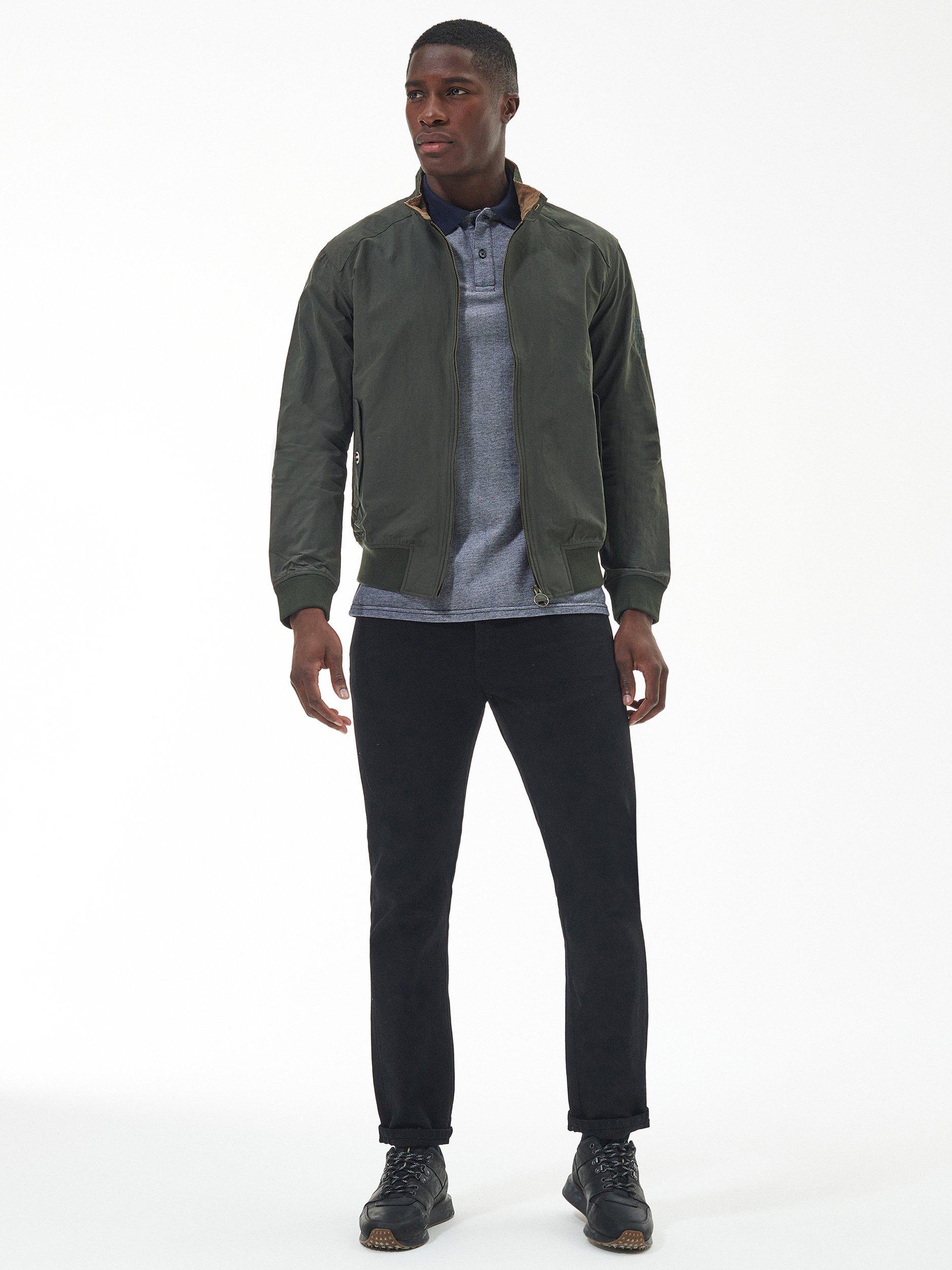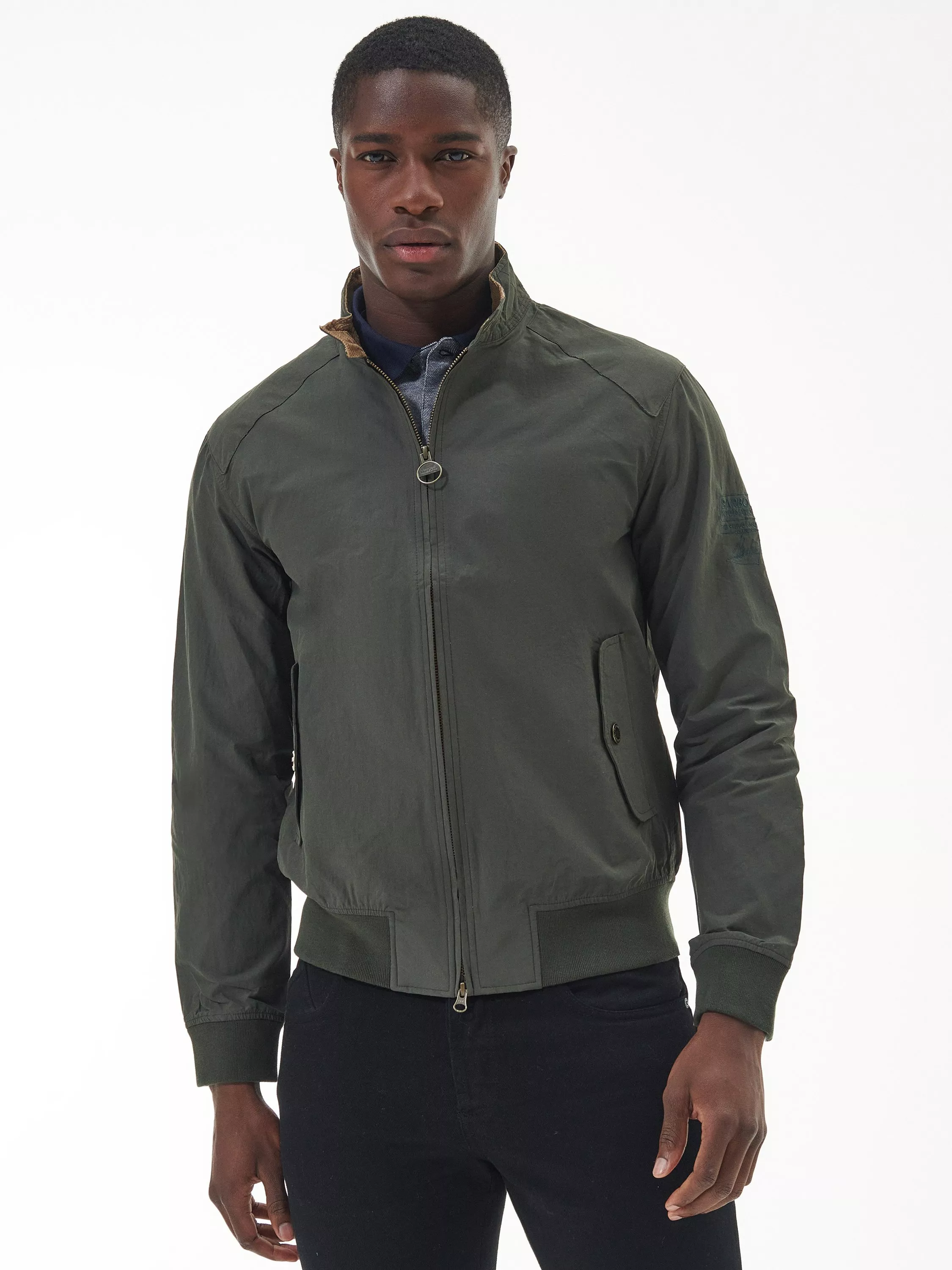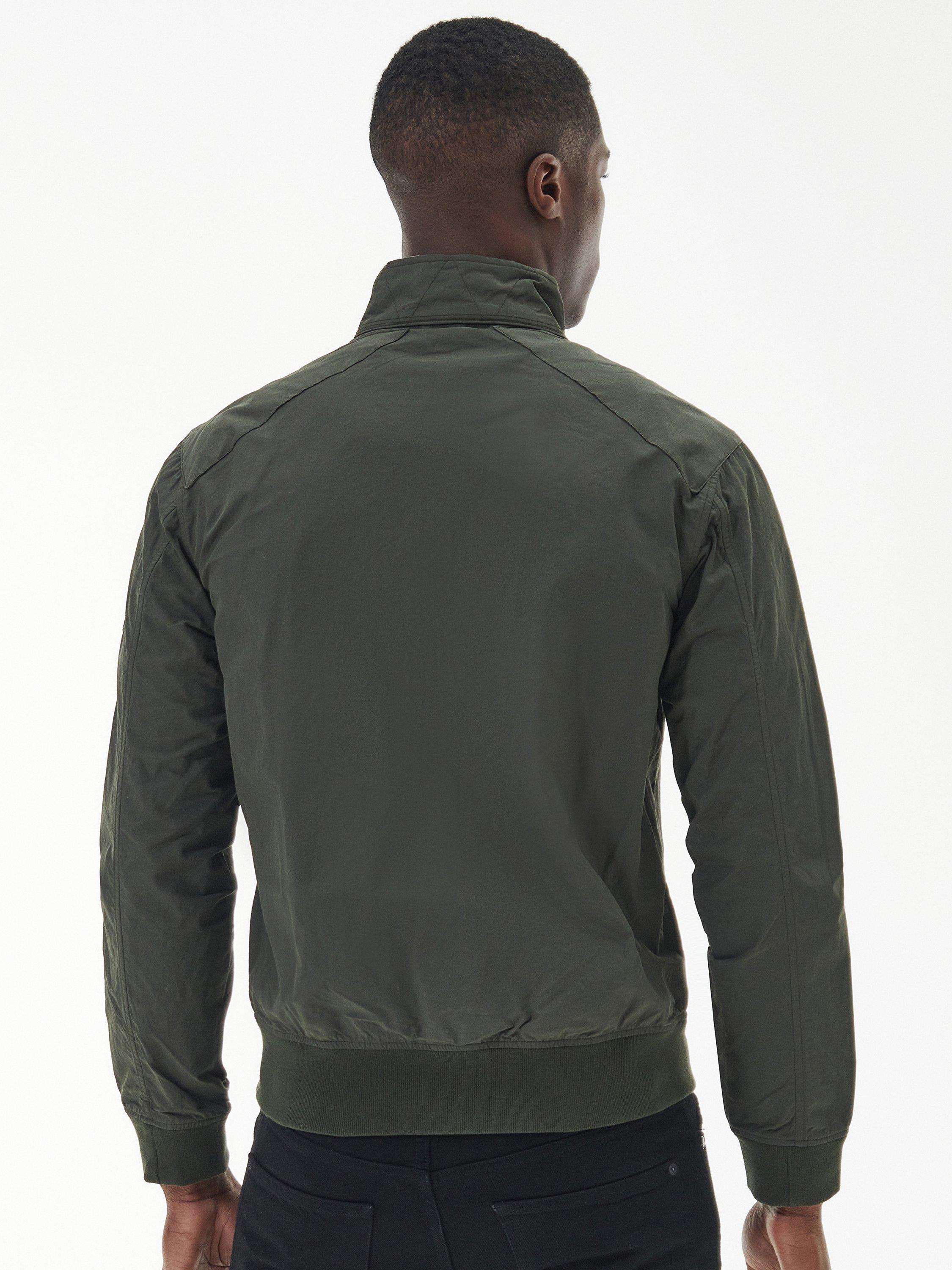 The Barbour International Rectifier jacket is reminiscent of a classic Harrington. Featuring a contrast collar lining, cuffs and hem the jacket boasts two stud fastened pockets to the front, an embroidered Steve McQueen patch on the arm and red, white and blue eyelets underarm for breathability.