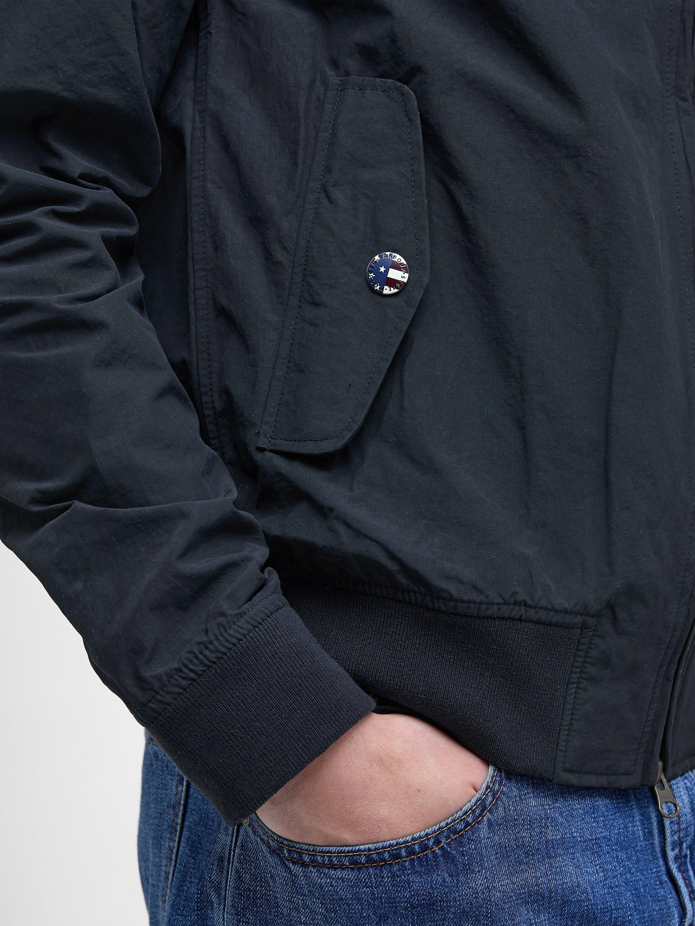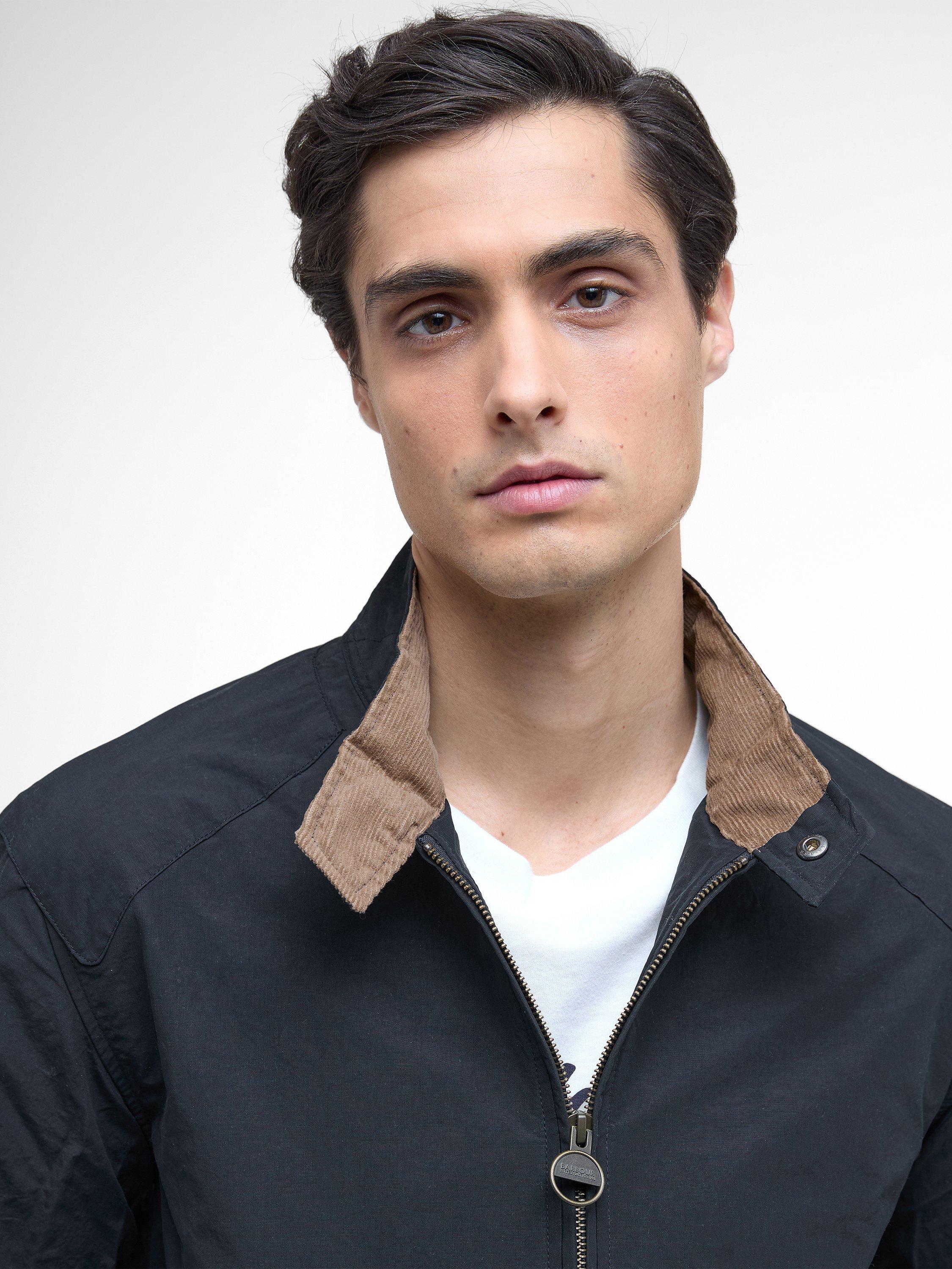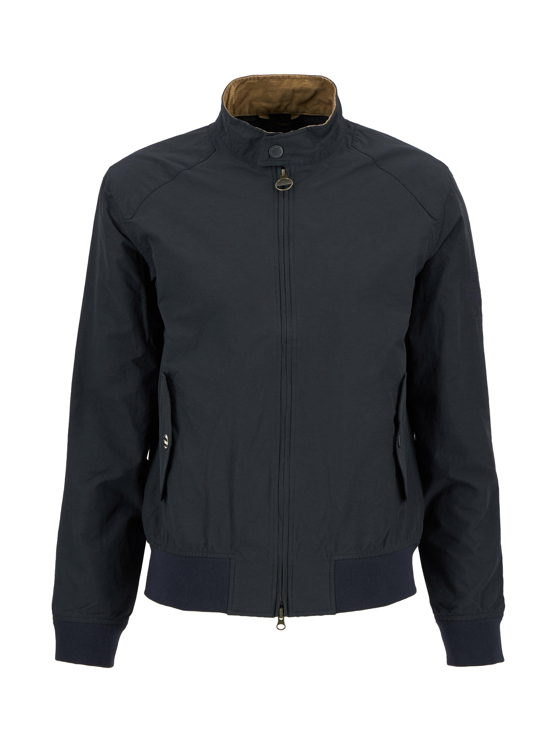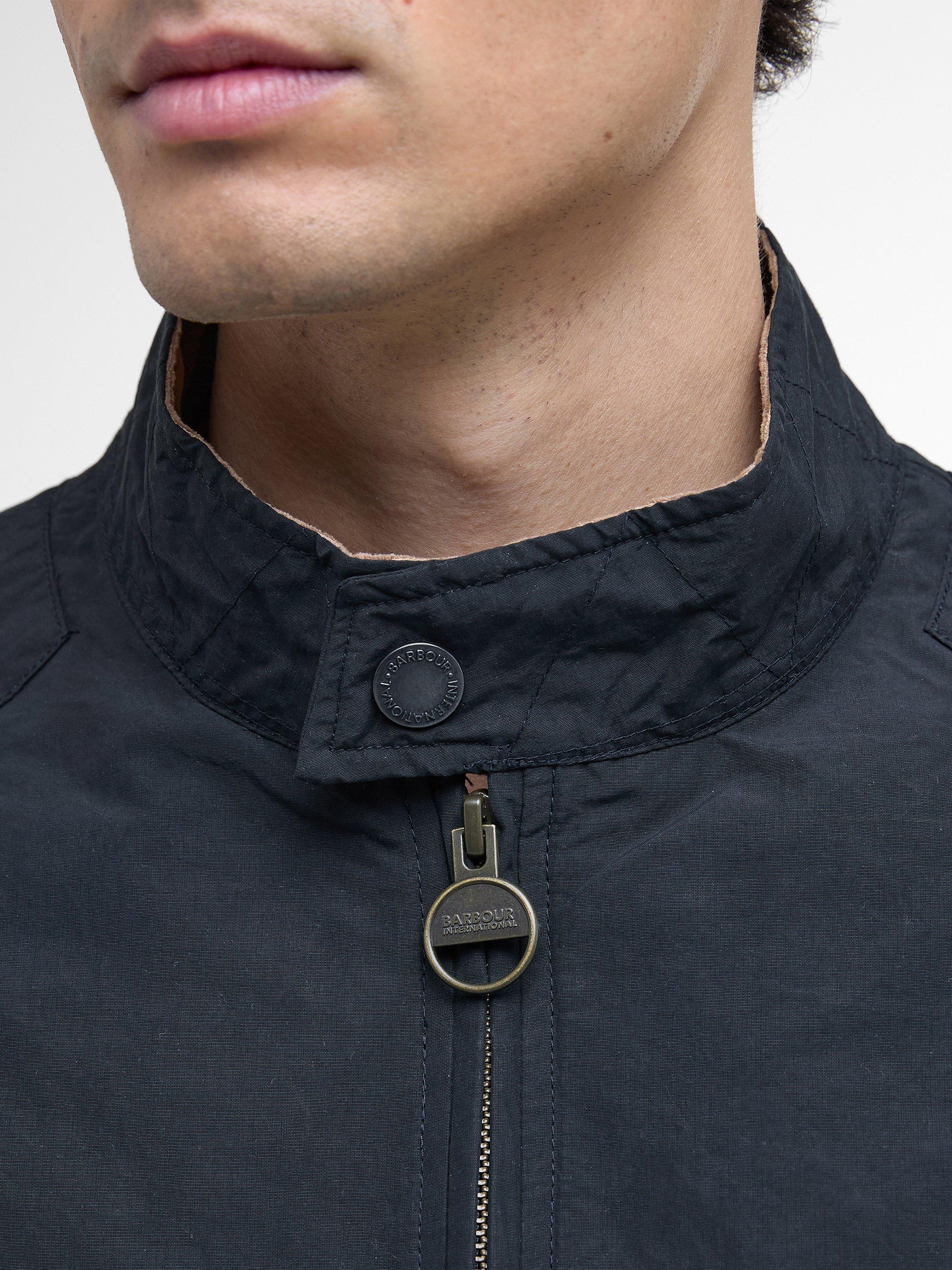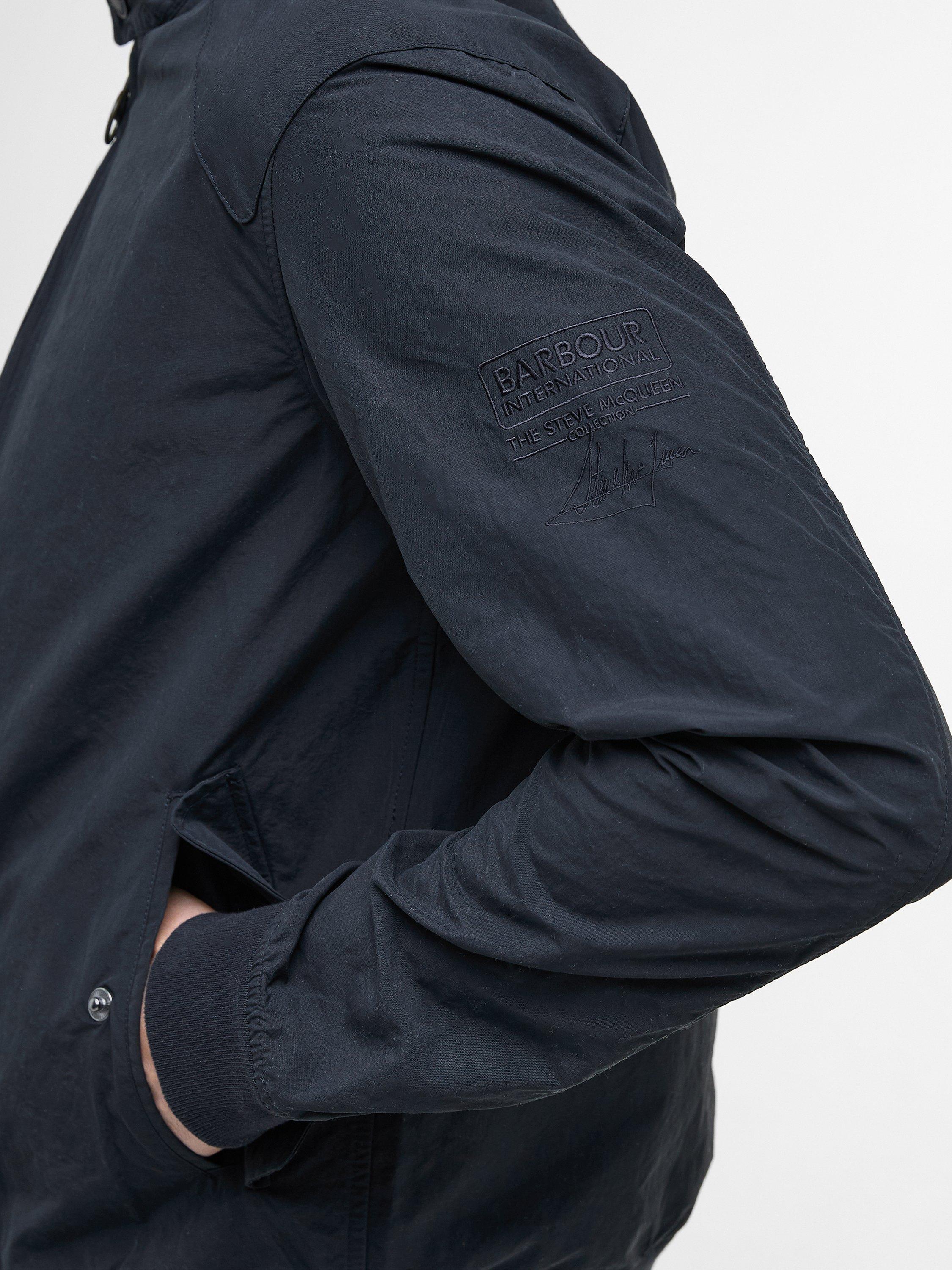 The Barbour International Rectifier jacket is reminiscent of a classic Harrington. Featuring a contrast collar lining, cuffs and hem the jacket boasts two stud fastened pockets to the front, an embroidered Steve McQueen patch on the arm and red, white and blue eyelets underarm for breathability.