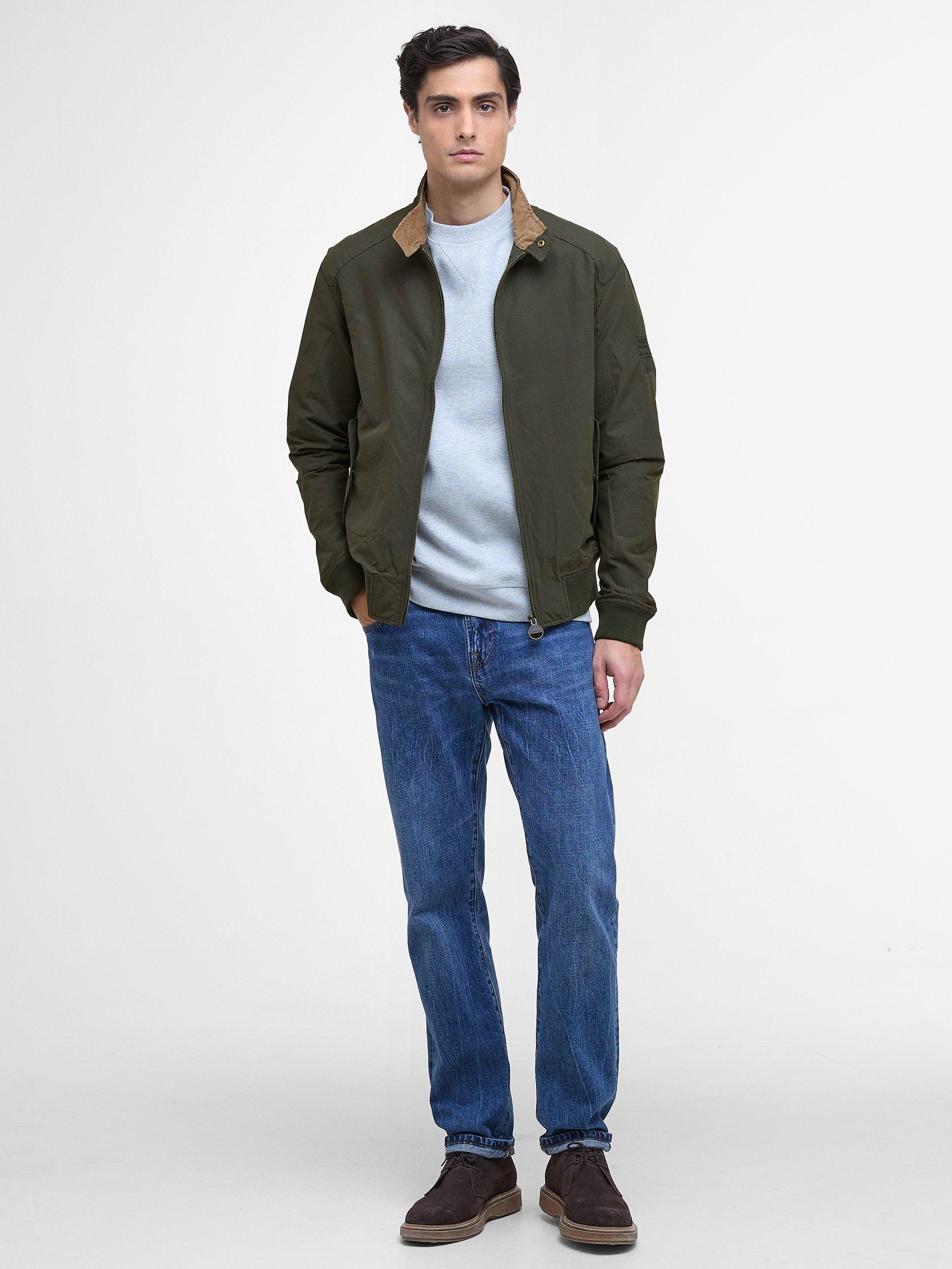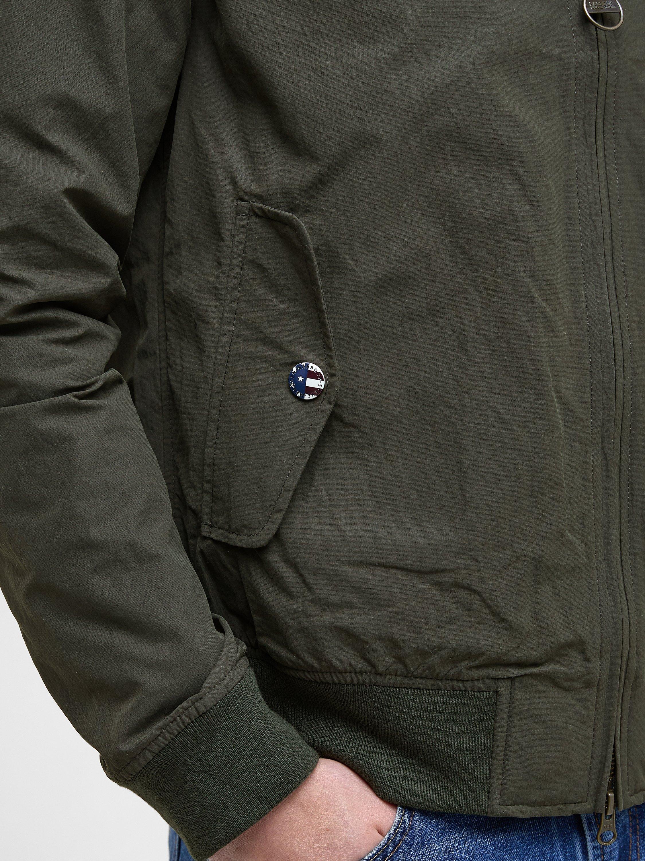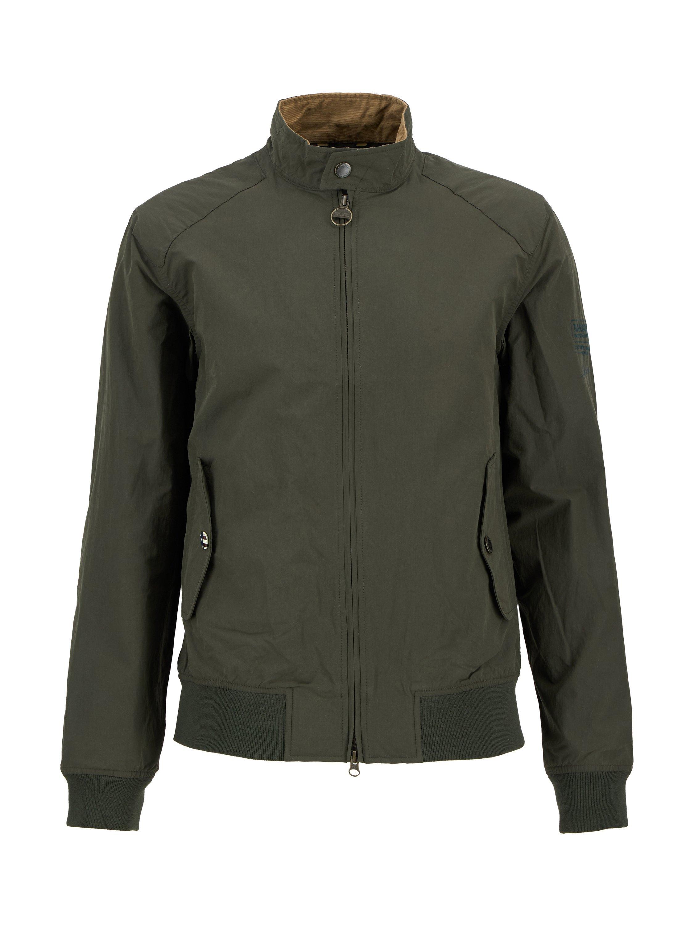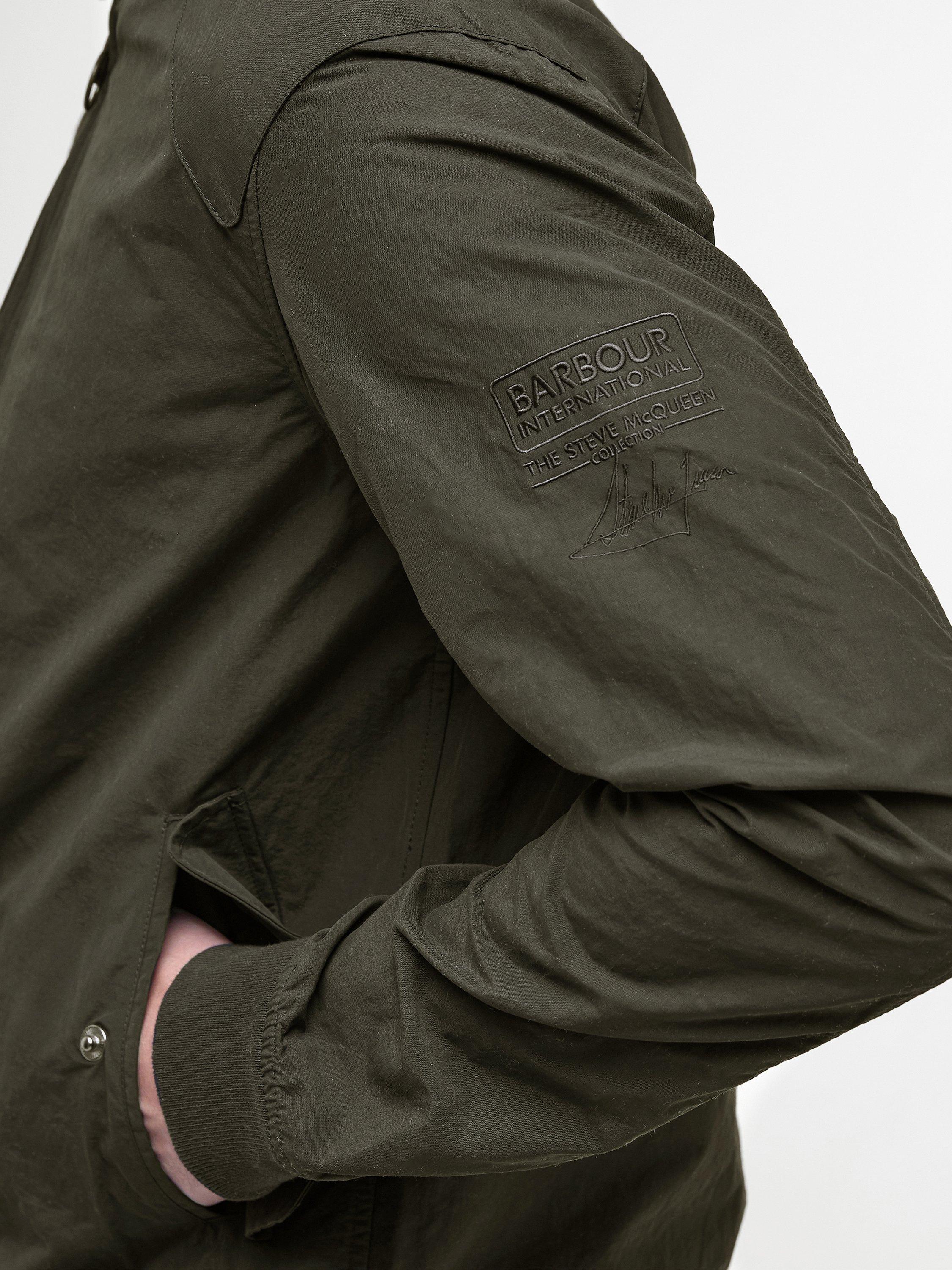 The Barbour International Rectifier jacket is reminiscent of a classic Harrington. Featuring a contrast collar lining, cuffs and hem the jacket boasts two stud fastened pockets to the front, an embroidered Steve McQueen patch on the arm and red, white and blue eyelets underarm for breathability.