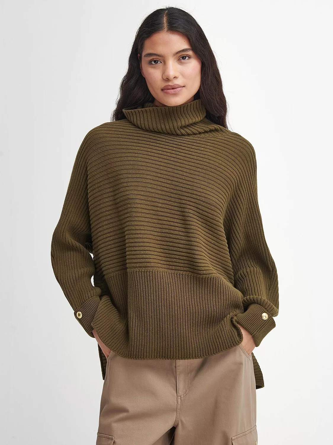 Coffee date ready with its snug roll neckline, this jumper by Barbour International is made from pure cotton fibres known for their softness and breathability.