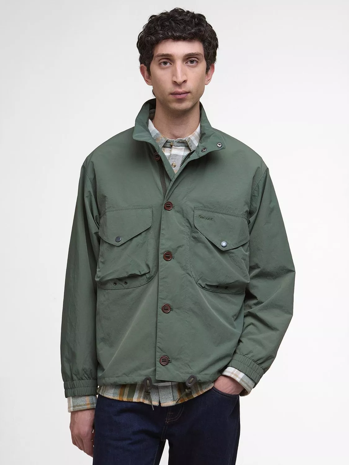 The Barbour Jig Showerproof Jacket is the perfect ally to city and countryside exploring alike. Complete with two oversized pockets to the chest and a statement button fastening, this garment is perfect for the transitional weather.