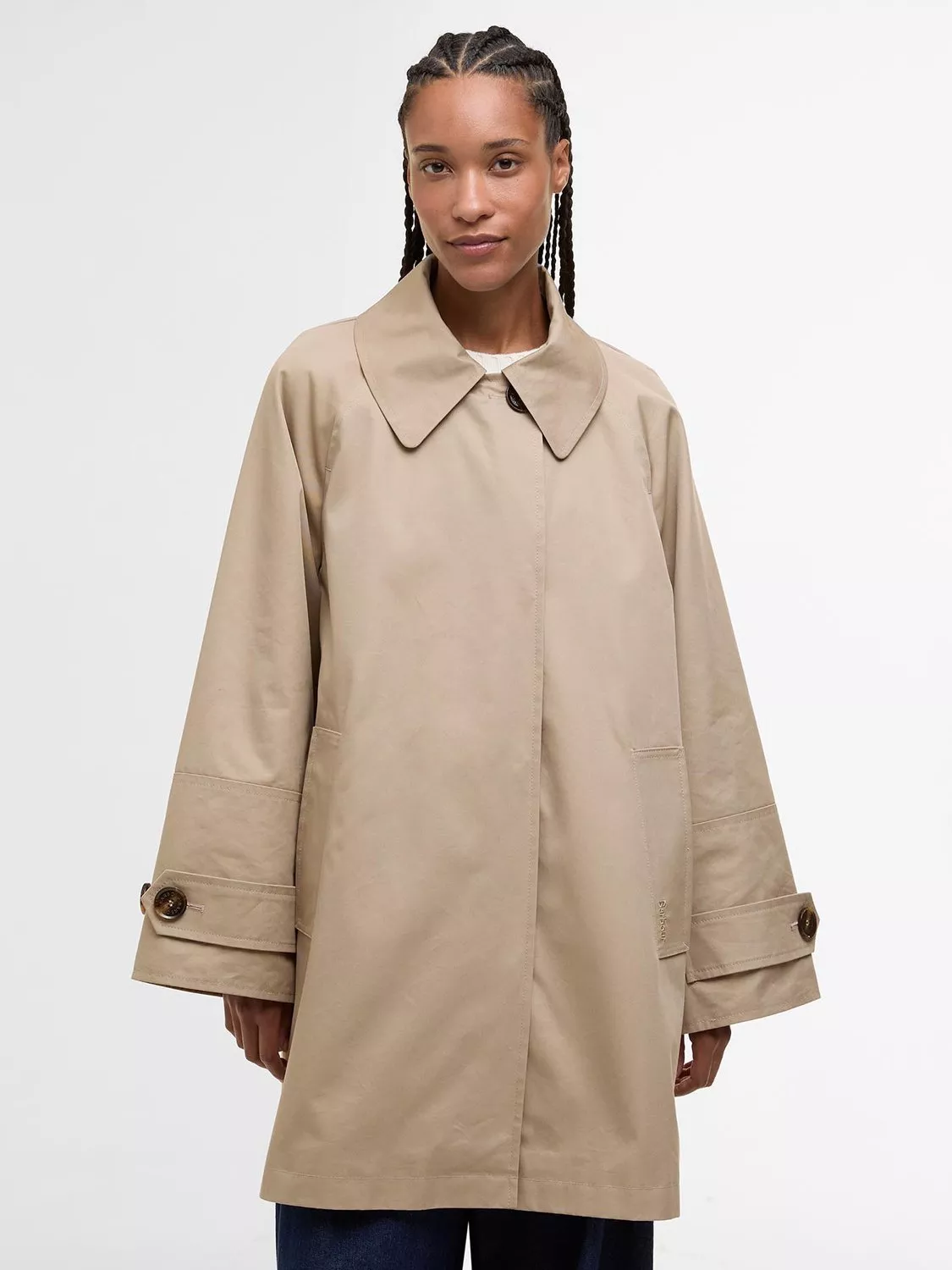 The Barbour Kennedy Showerproof Jacket is a stylish short car coat with a relaxed fit. Featuring a large 50L button at the neck, concealed stud fastening, large welt pockets and deep cuffs with button tabs, it's both functional and elegant. A tartan-lined back buggy adds a signature Barbour touch to this versatile piece.