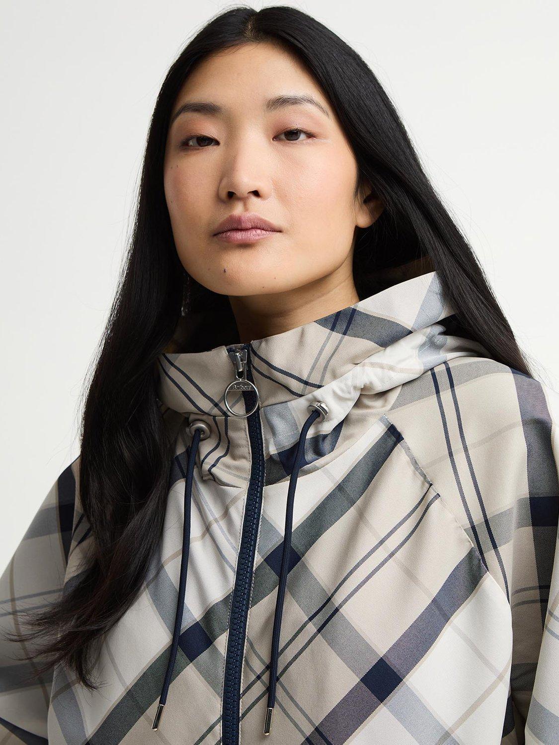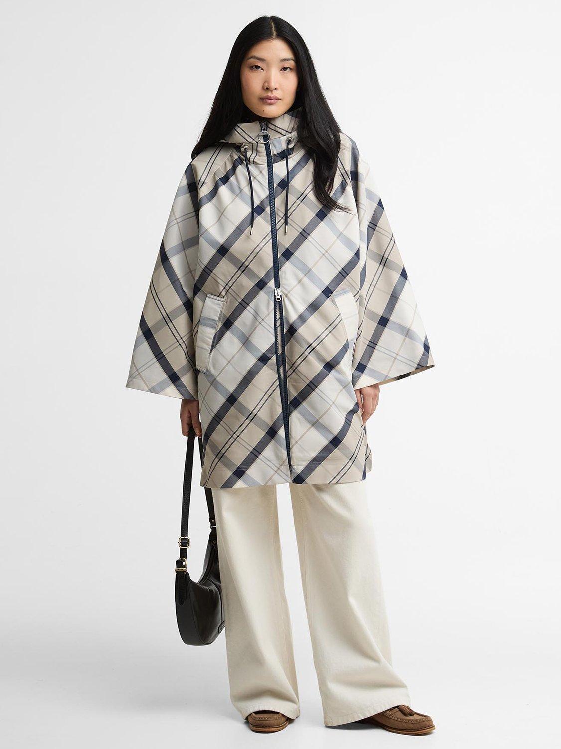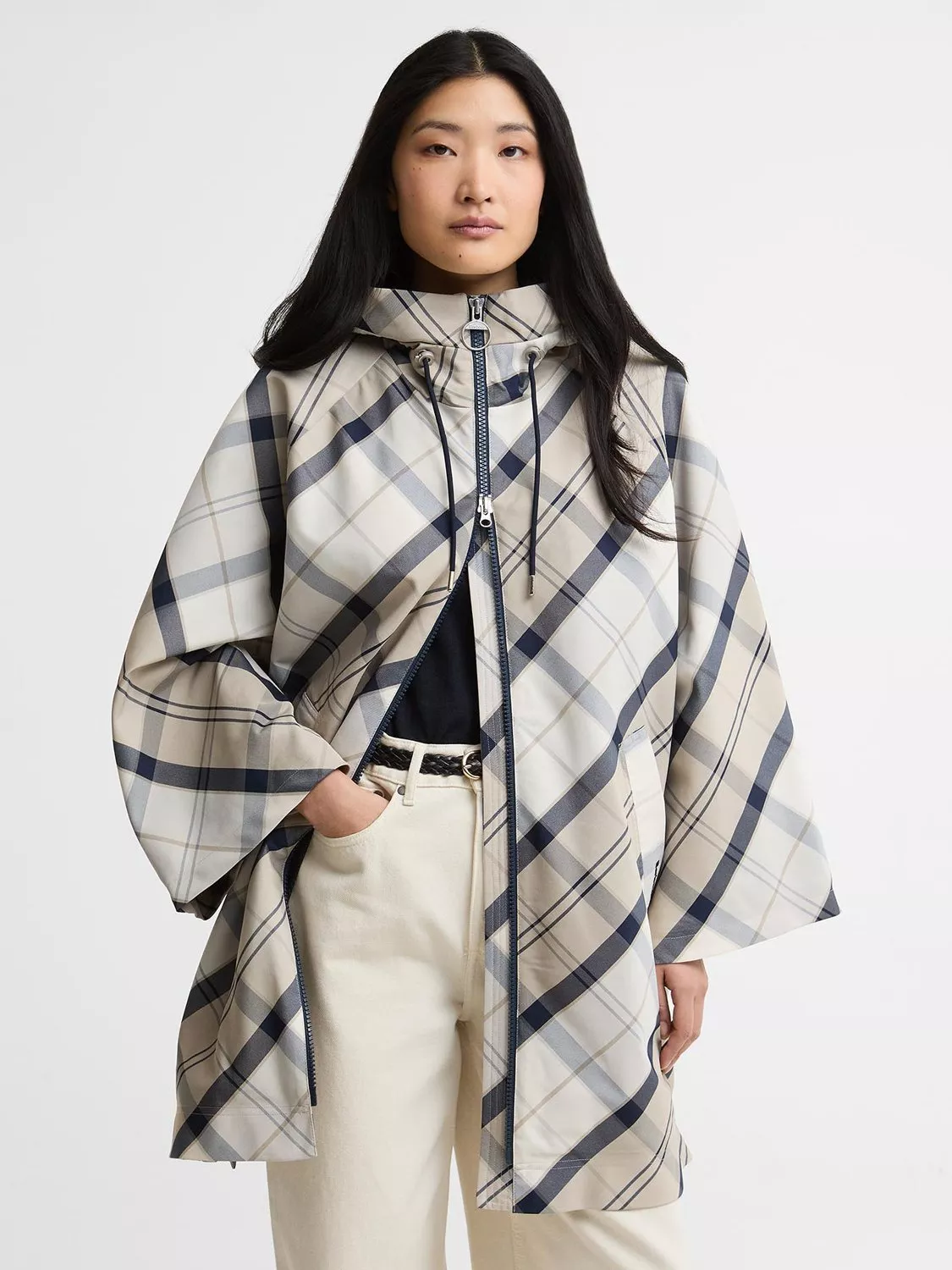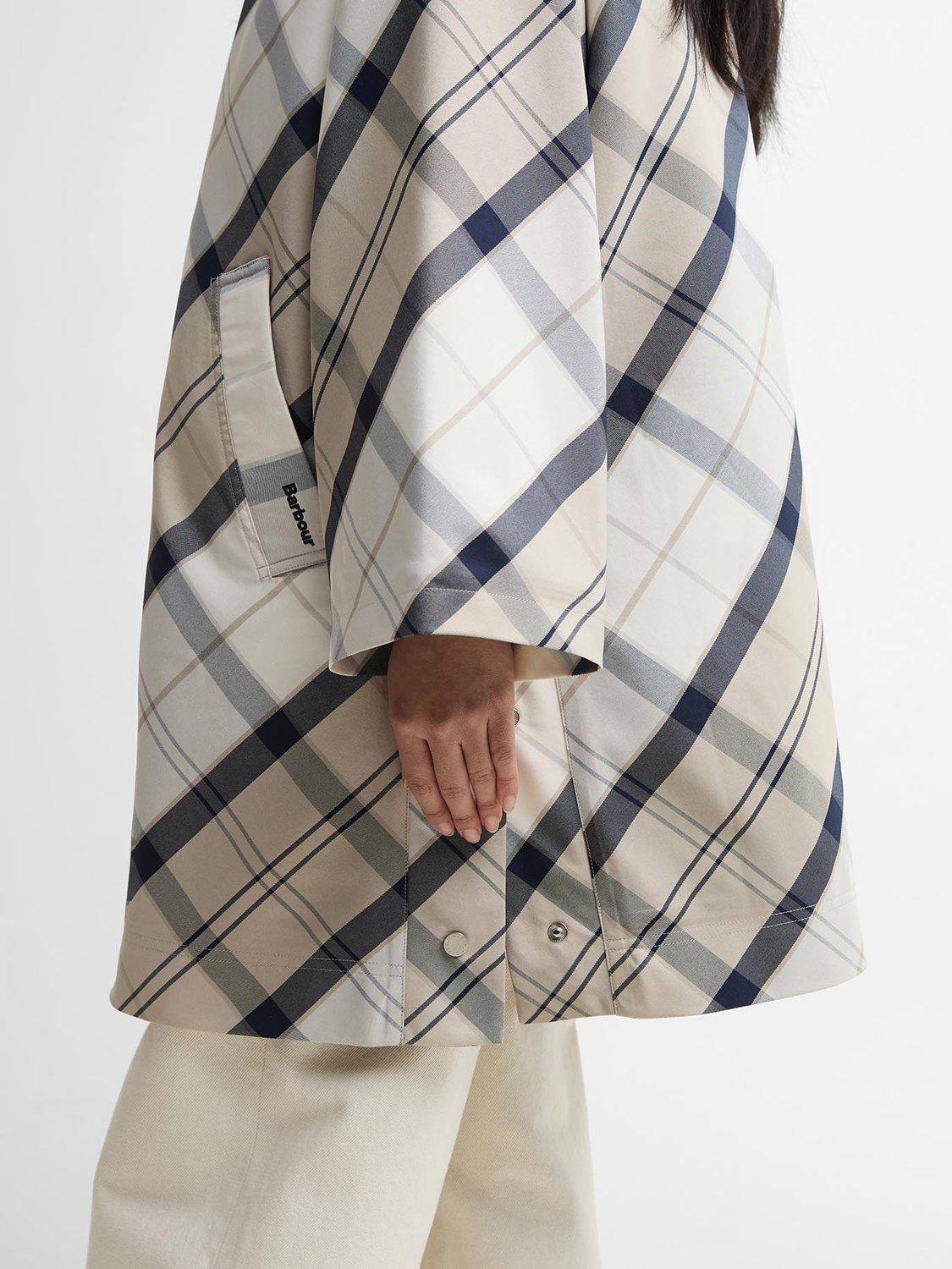The Barbour Kinsale Tartan Showerproof Cape redefines classic outerwear with a striking blend of heritage and modernity. Crafted in a refined tartan check, this effortlessly elegant layer features a grown-on hood, wide sleeves with exposed zip detailing, and studded side vents for versatile styling. Complete with welt pockets and a breathable mesh lining, it delivers sophisticated, weather-ready comfort with unmistakable Barbour character.