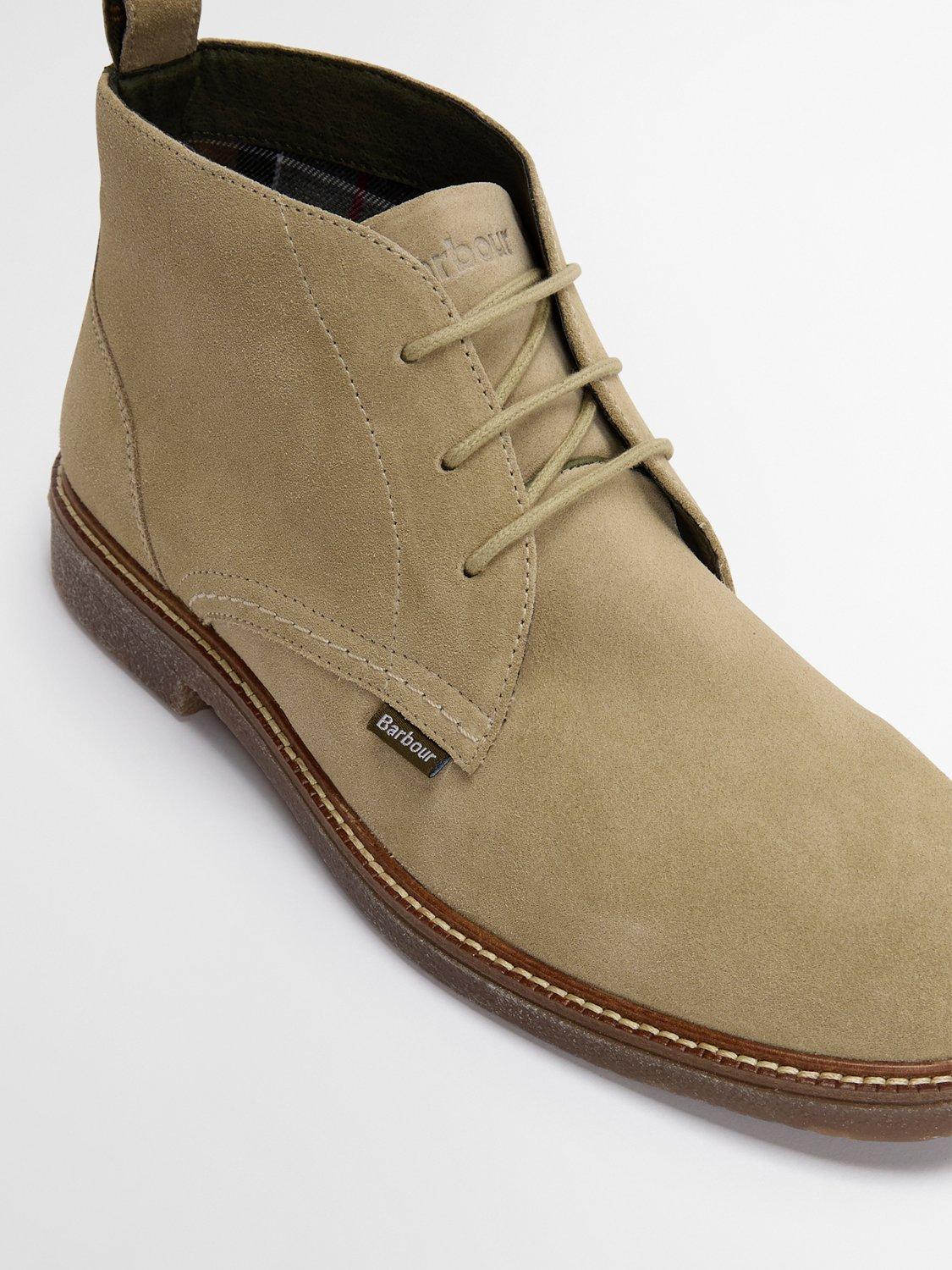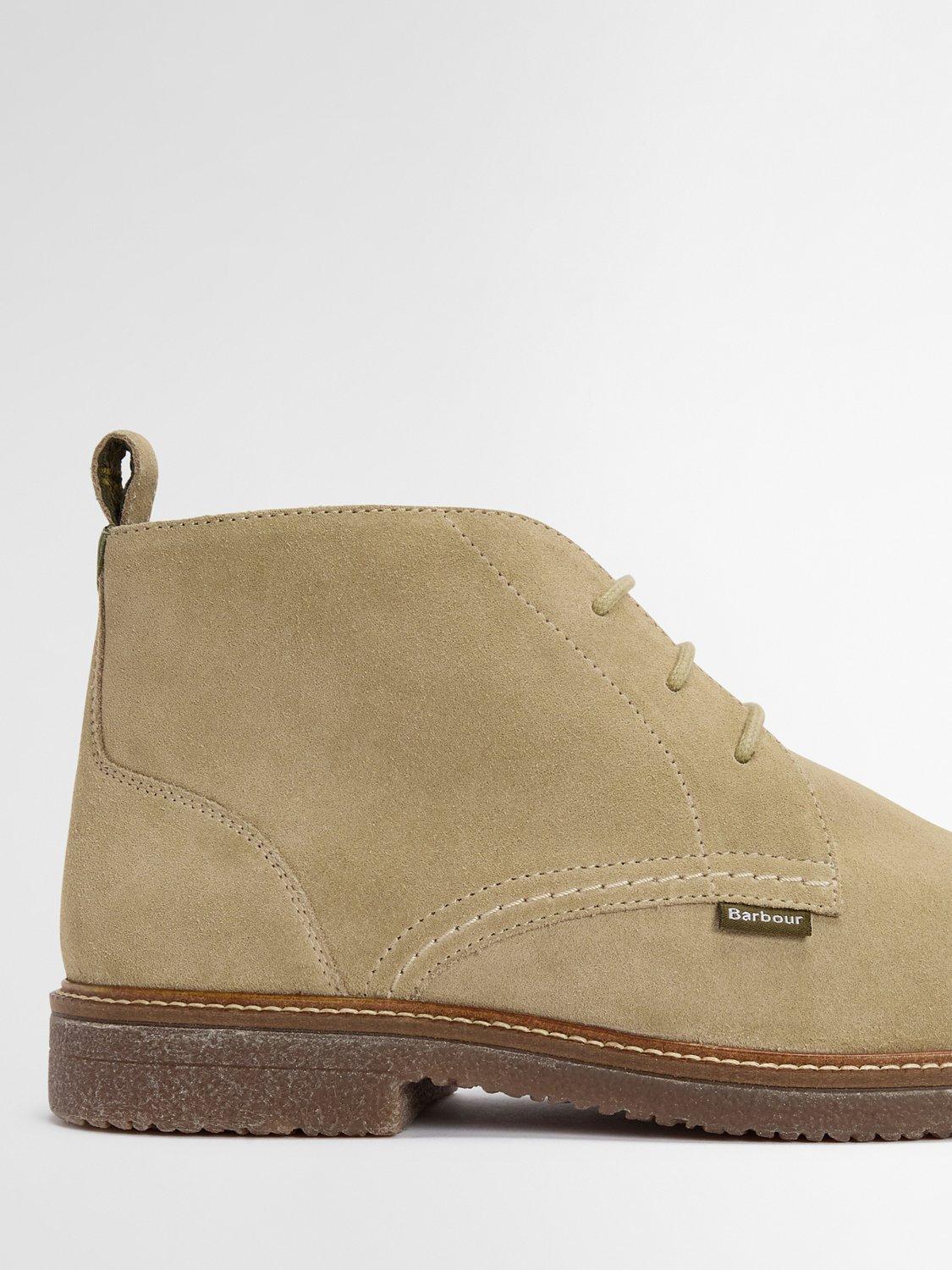 A modern classic for the discerning wardrobe, the Barbour Kirkstone Desert Boot offers timeless style and premium craftsmanship. Made from 100% rich leather, this versatile boot features a clean three-eye design for a sharp profile. A sophisticated leather heel detail and subtle Barbour flag branding provide a signature sign-off, making it the ideal choice for smart-casual wear.