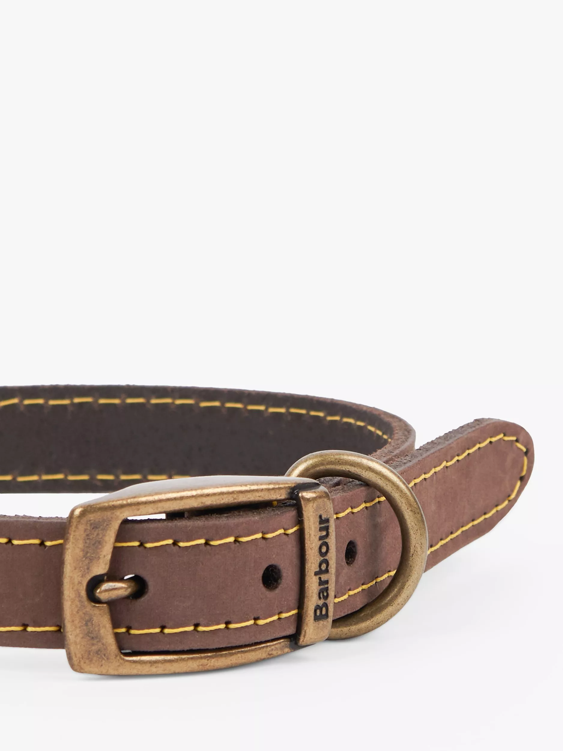 Made in the UK, this stylish dog collar is crafted in luxurious leather with aged brass-effect fittings and subtly embossed Barbour branding.