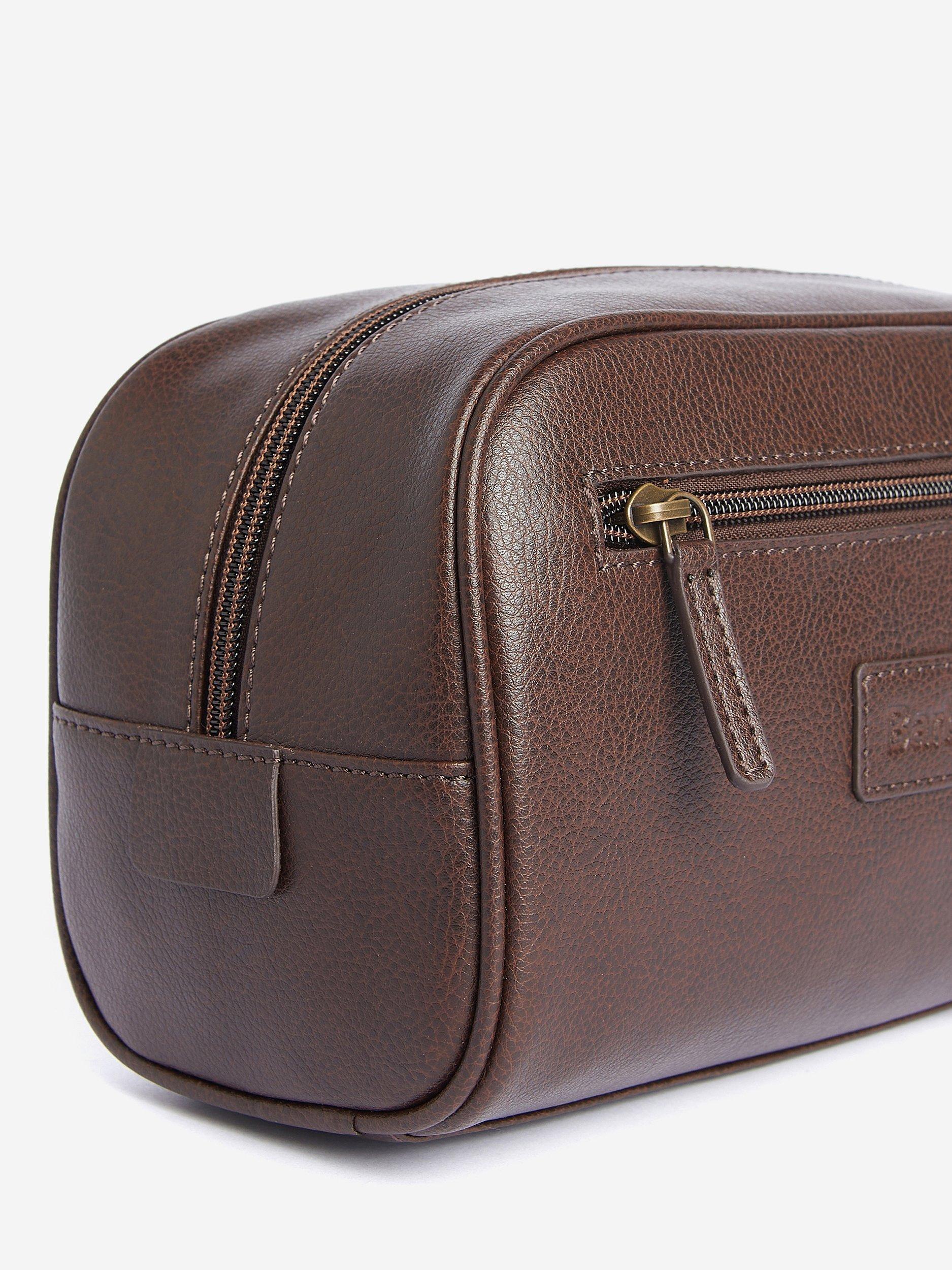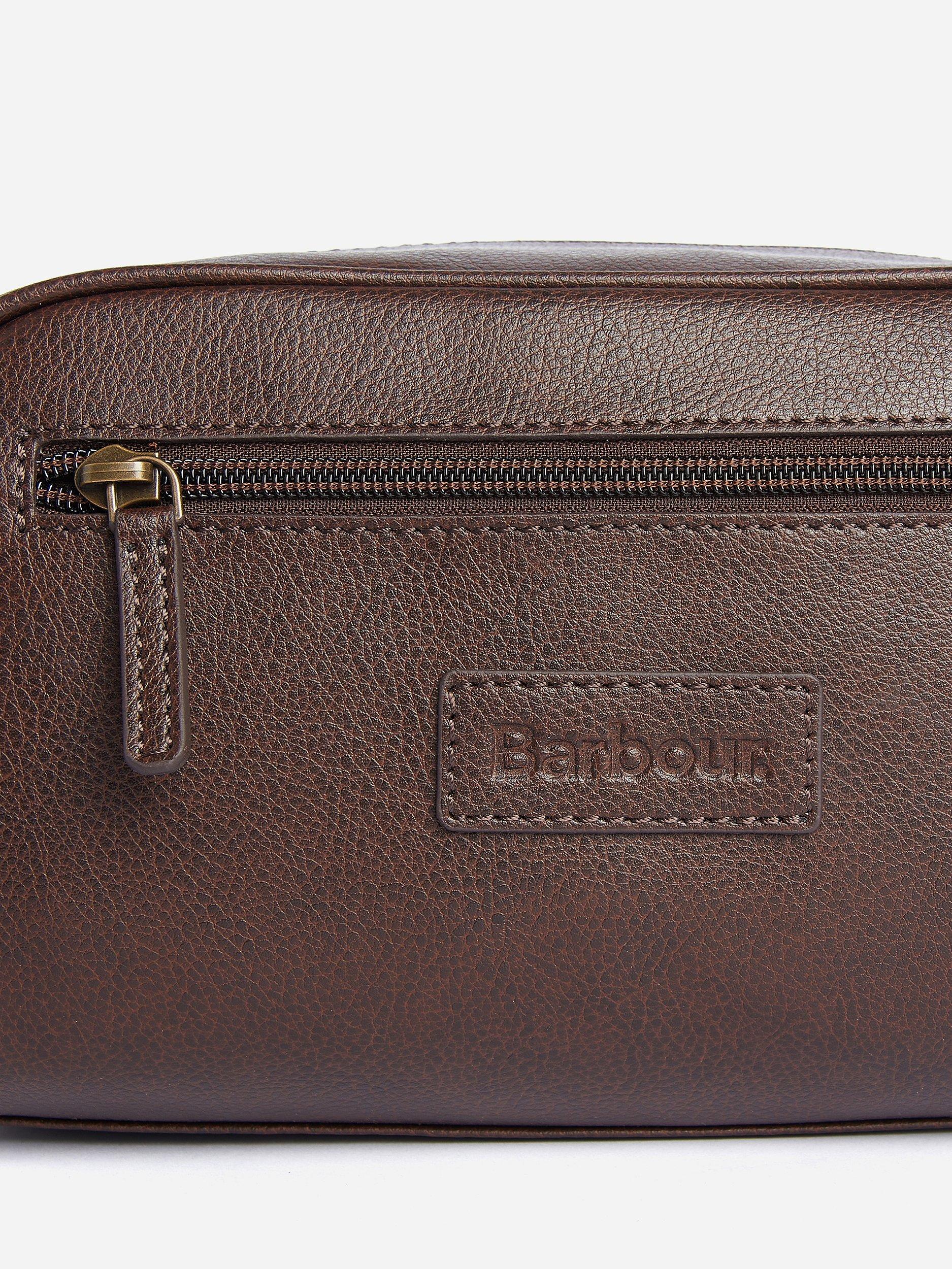 With an embossed logo, this leather wash bag from Barbour boasts rugged texture and charm thanks to a natural grained finish and rounded edges. With a grab handle, and an external zipped pocket, this travel essential keeps all your toiletries practically protected and to hand when you're on-the-go.